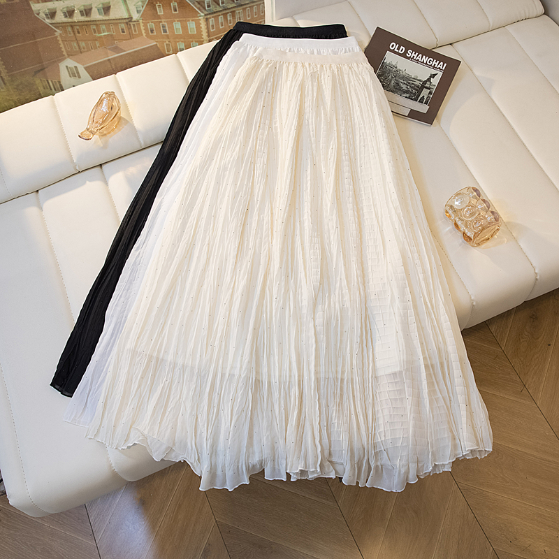 실사 여름 새로운 플리츠 쉬폰 반신 스커트 캐주얼 빅 사이즈 반신 스커트
