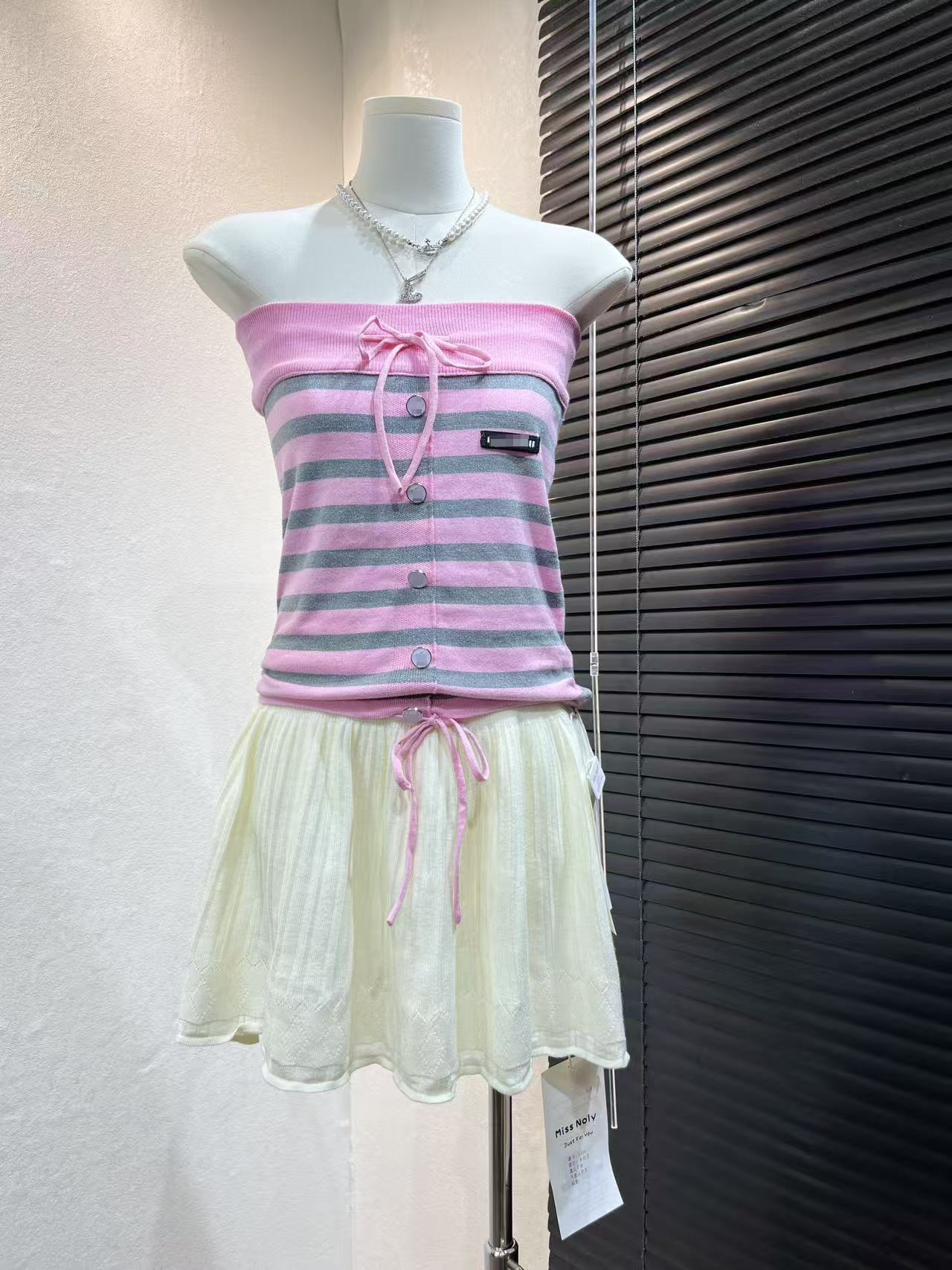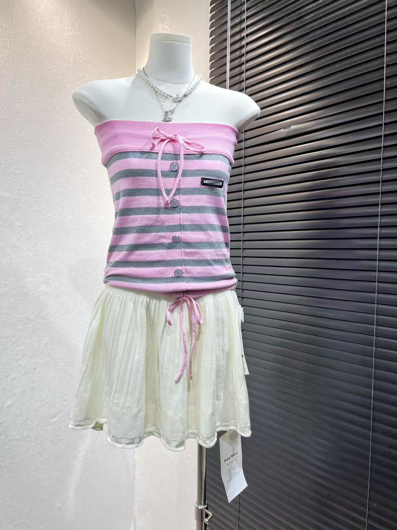 luna 루 Na 410 신제품 스트라이프 튜브탑 맨위 장 원 영어 스타일 디자인 센스 니트 맨위