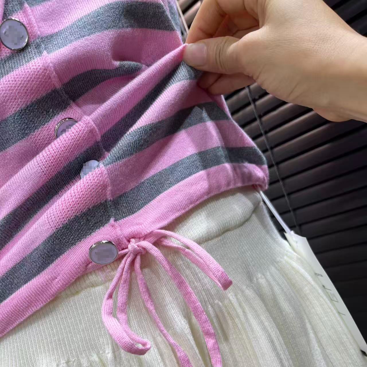 자동차 늦게 En 캐러멜 일몰 스택 토끼 울 패키지 실 코어 miu 센스 레트로 학원 스타일 니트 스트라이프 조끼