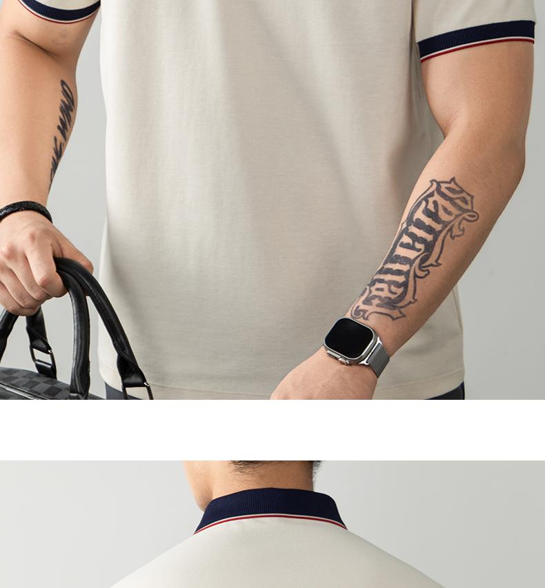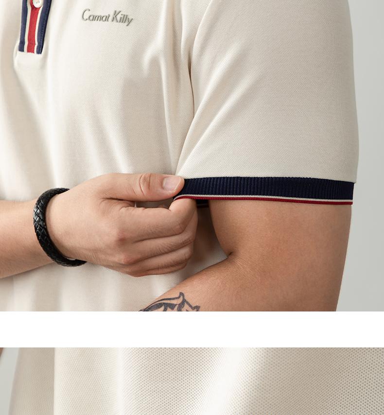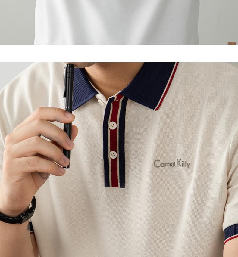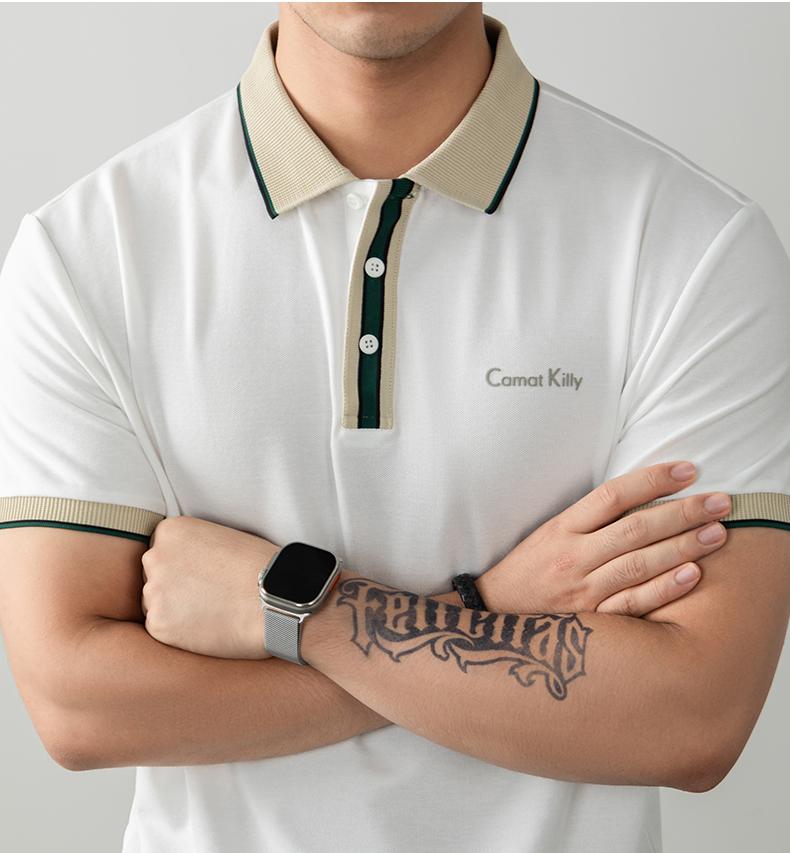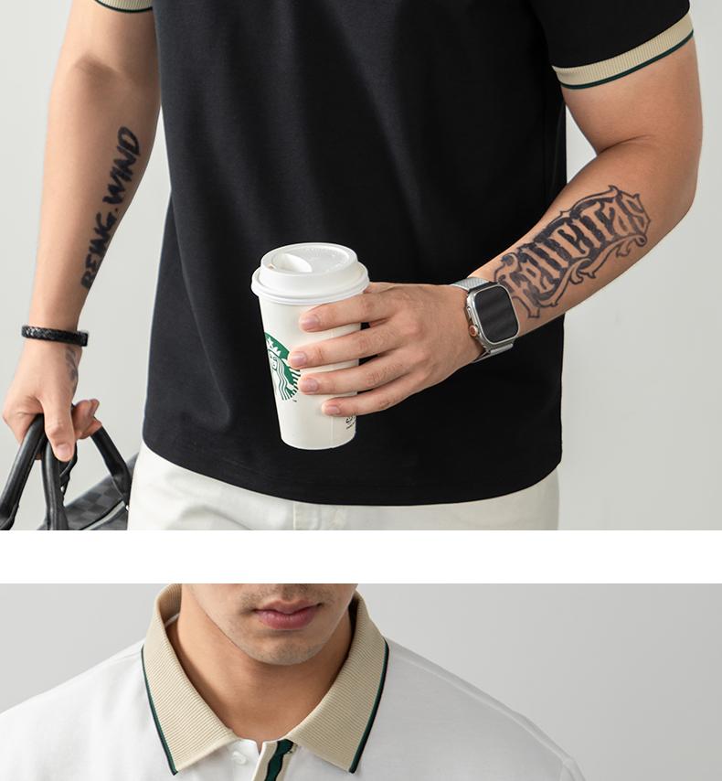 오래된 돈 추세 럭셔리 빛 럭셔리 배색 차가운 센스 구슬 그라운드 면 POLO 셔츠 반팔 남자 여름 고급 비즈니스 폴로 칼라 T