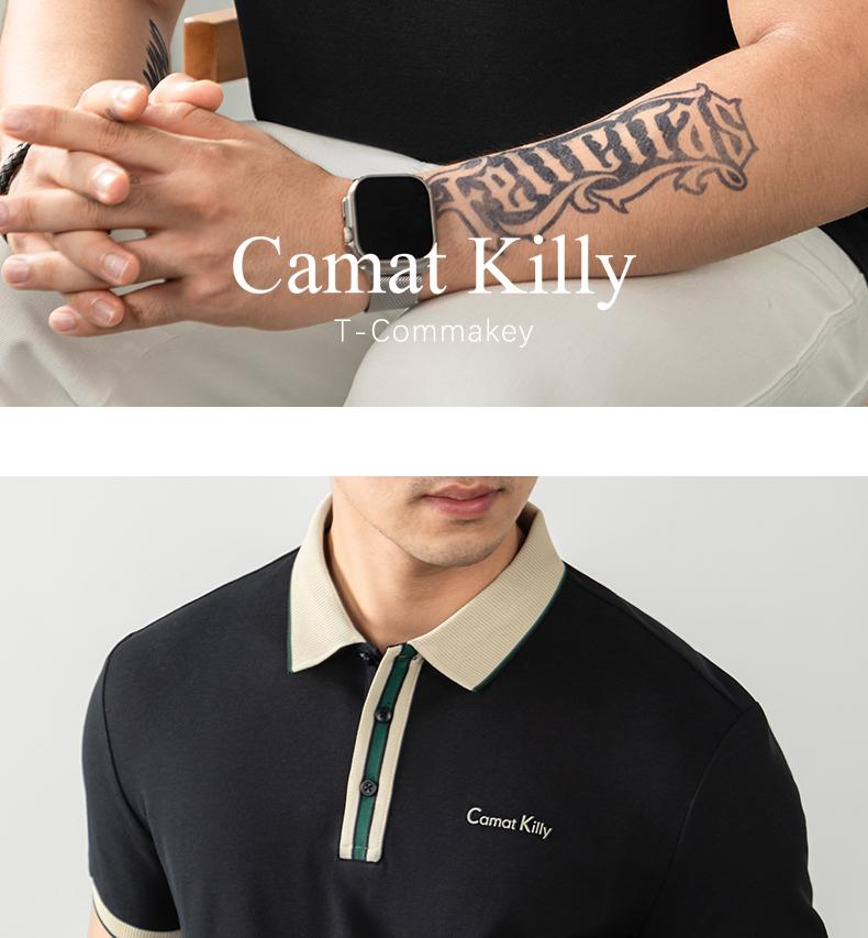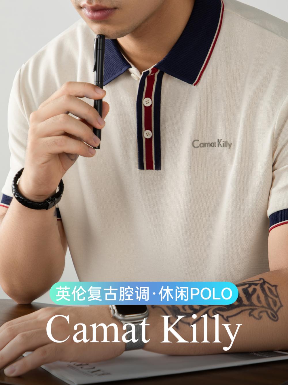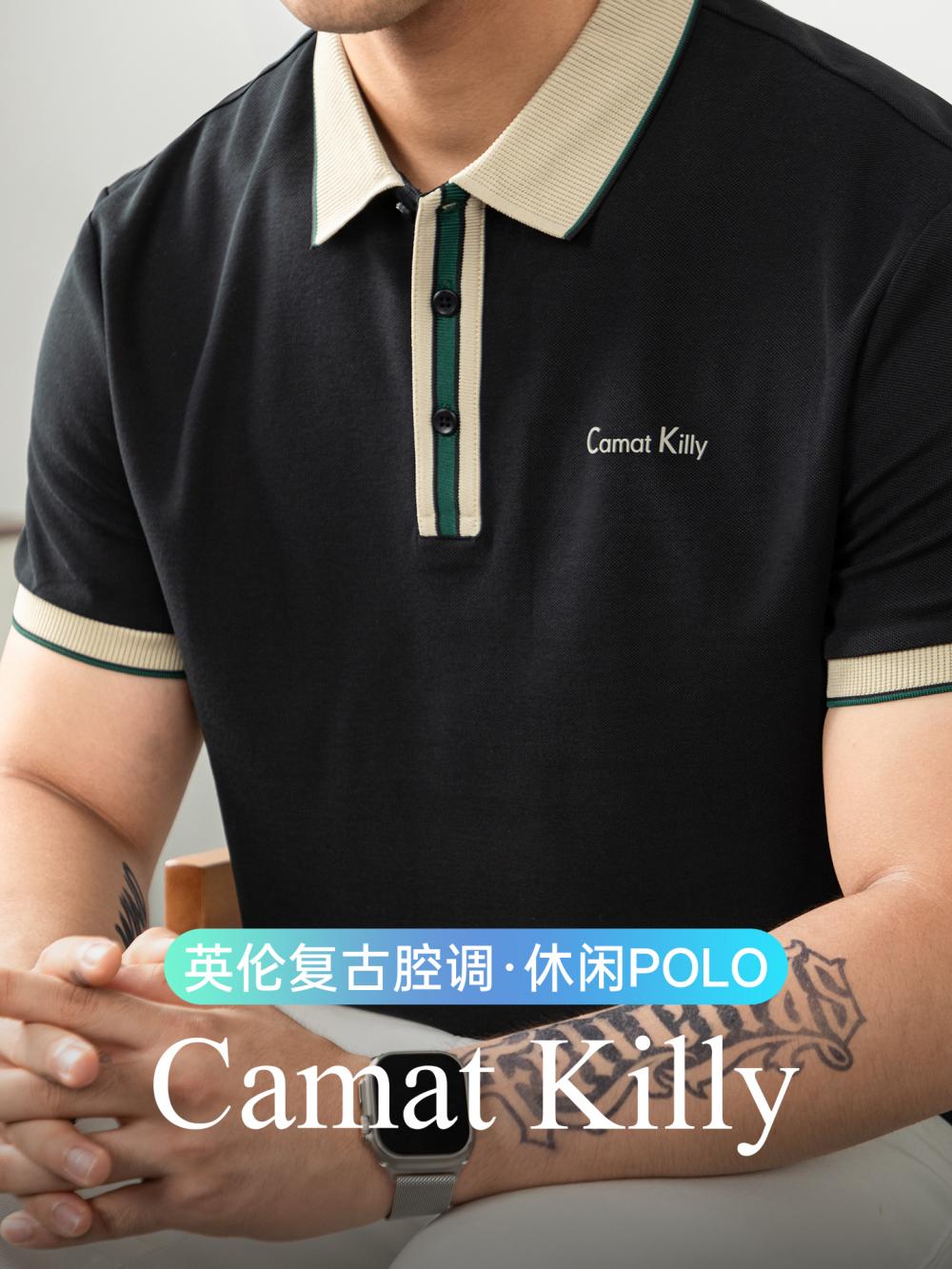 오래된 돈 추세 럭셔리 빛 럭셔리 배색 차가운 센스 구슬 그라운드 면 POLO 셔츠 반팔 남자 여름 고급 비즈니스 폴로 칼라 T