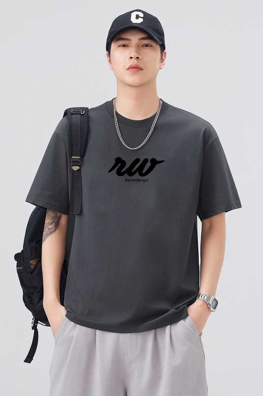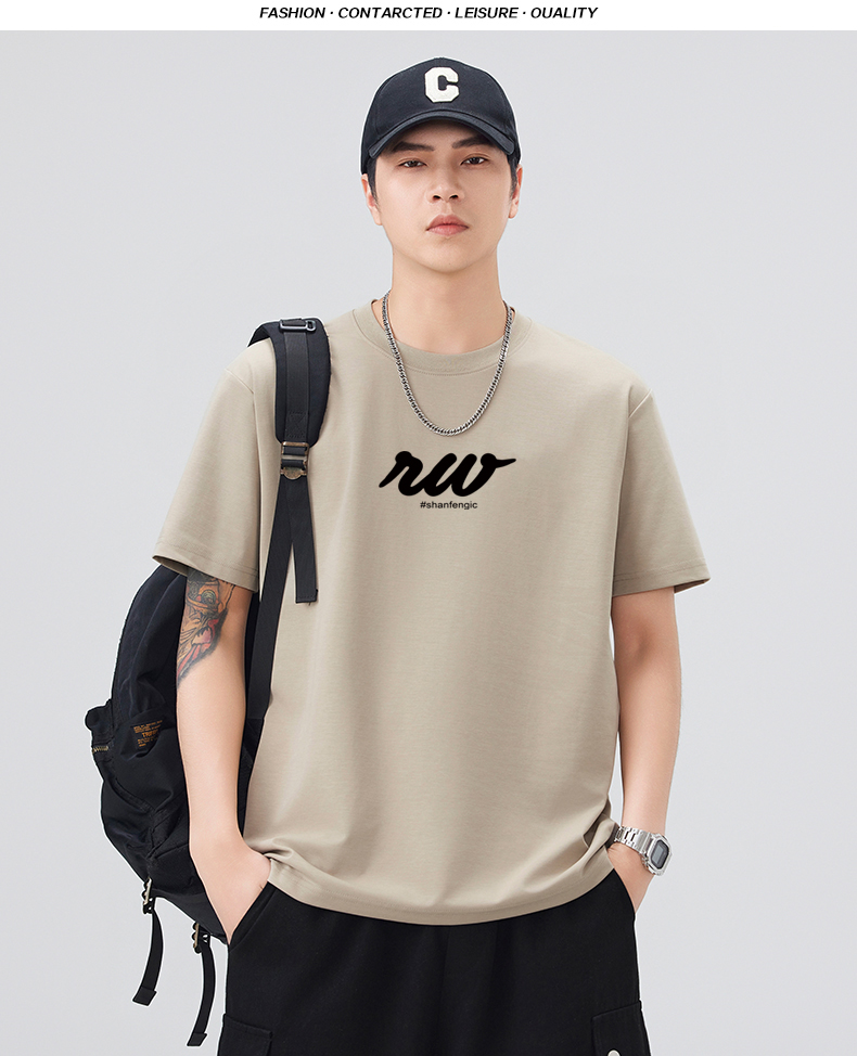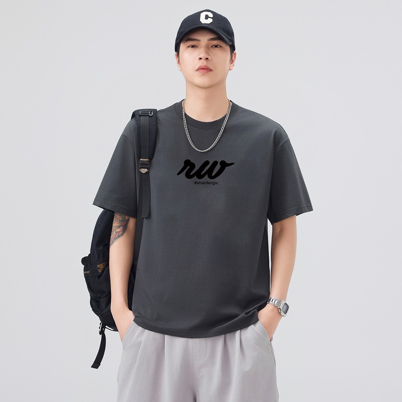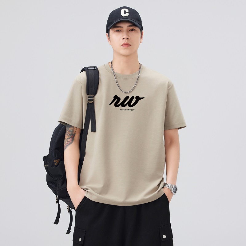 실사 2026 여름 새로운 티셔츠 남성 고급 라운드 넥 프린트 미니멀리즘 캐주얼 다용도 티셔츠