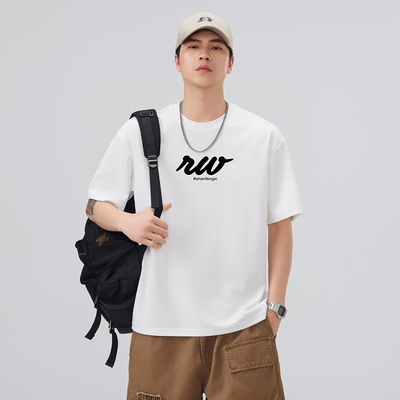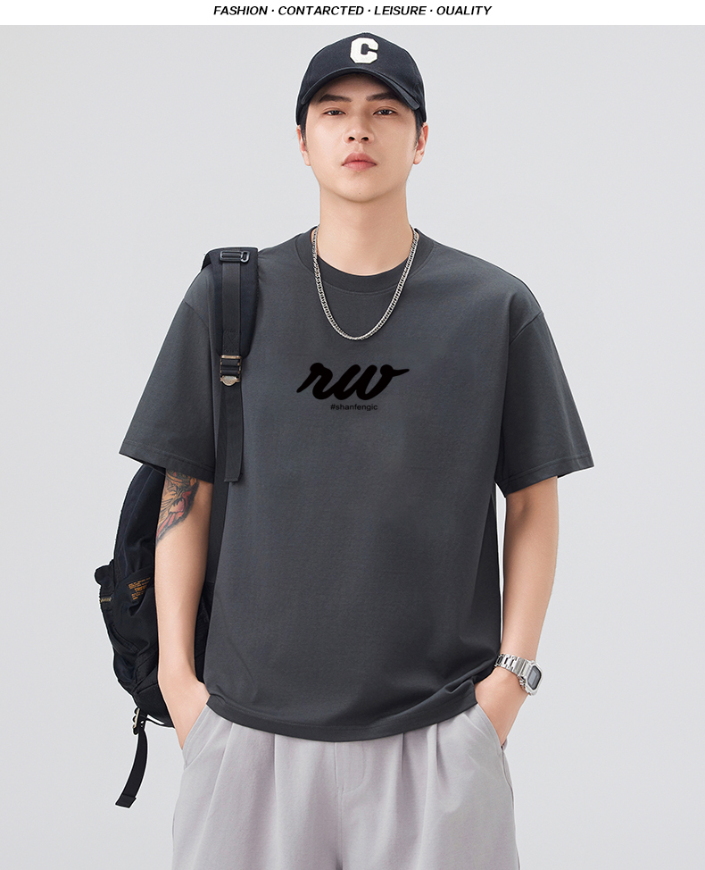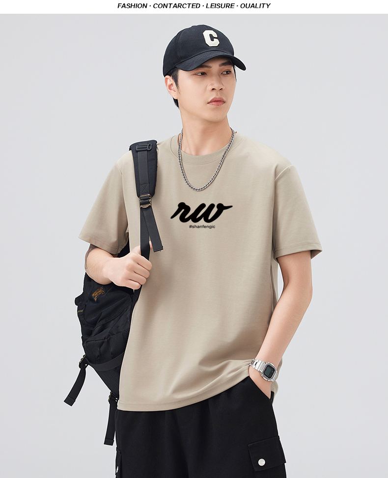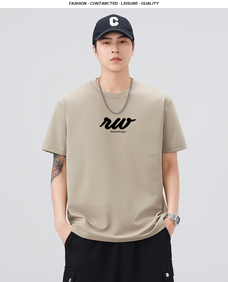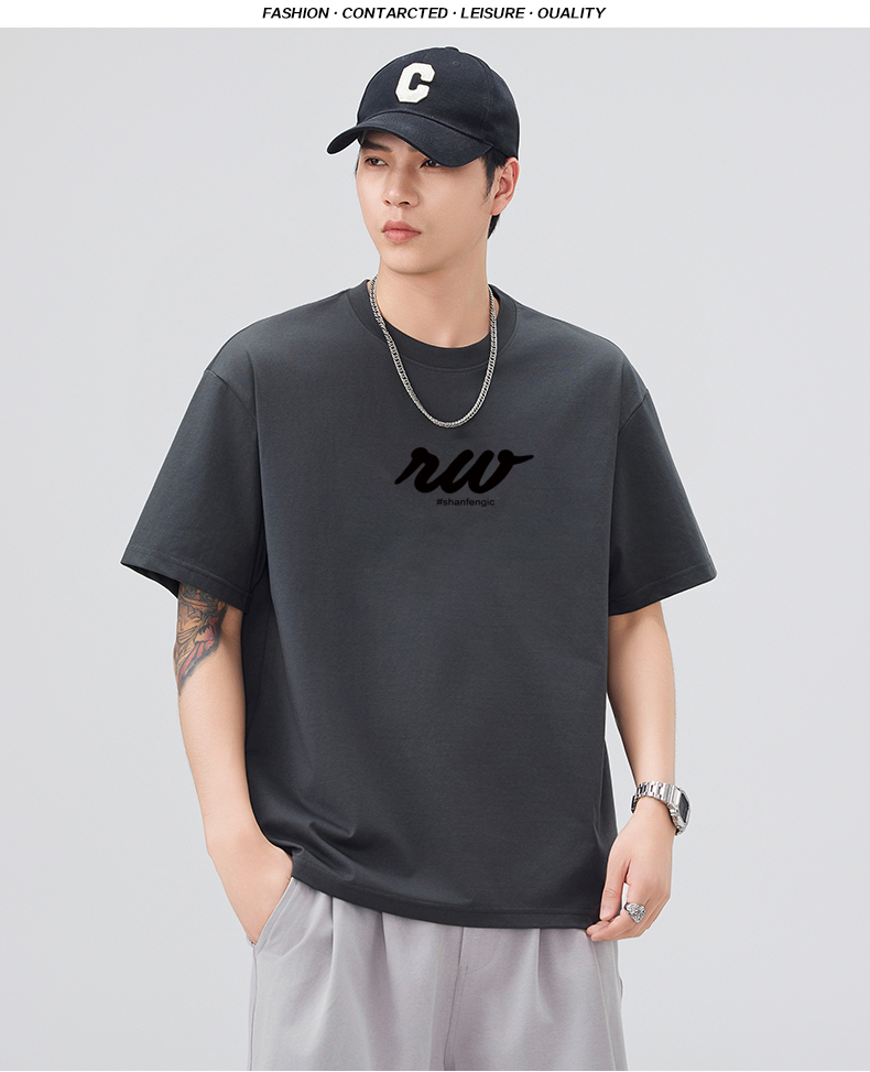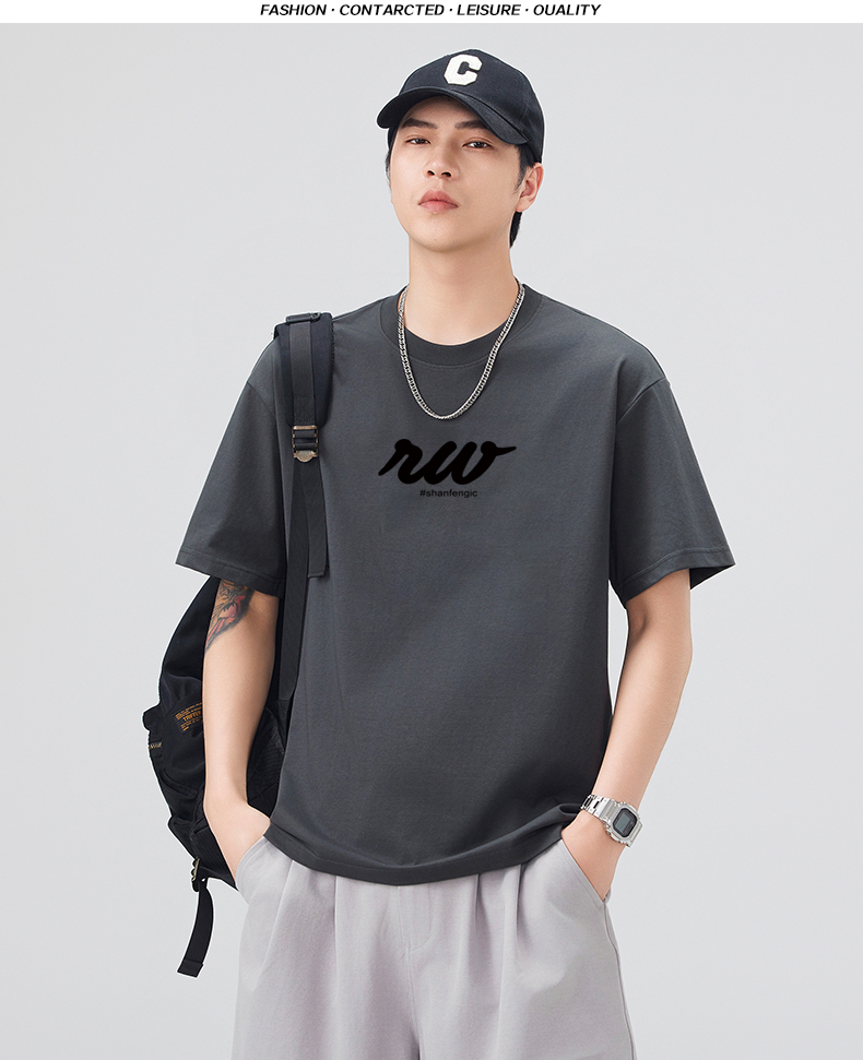 실사 2026 여름 새로운 미니멀리즘 알파벳 자수 반팔 티셔츠 남자 무거운 일본식 트렌드 5 점 소매 동정