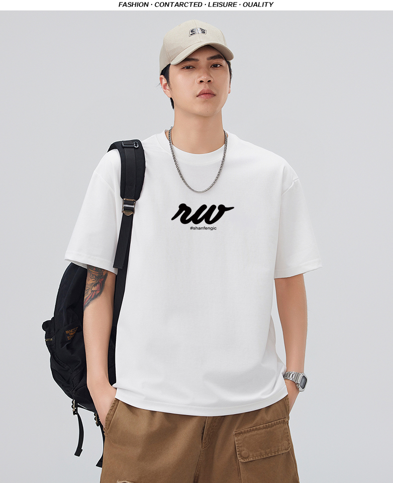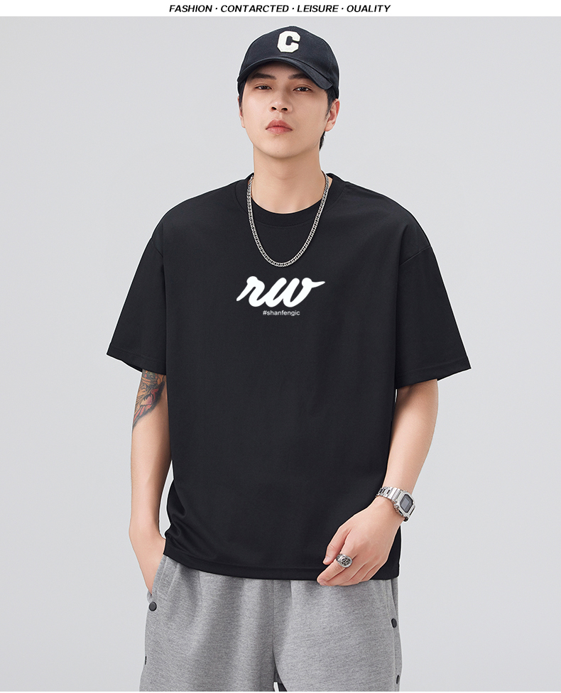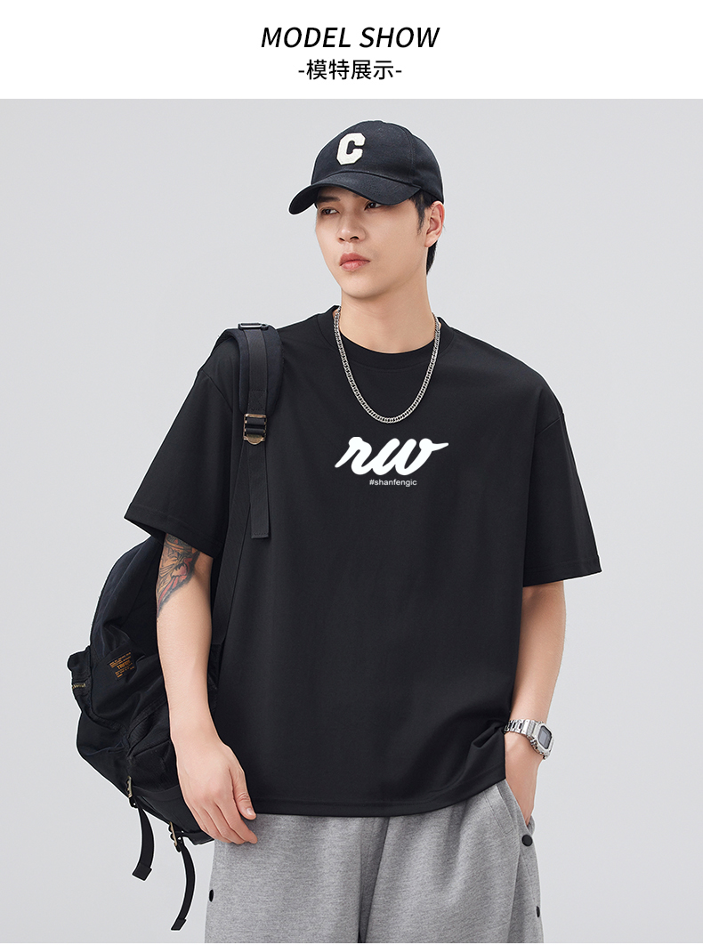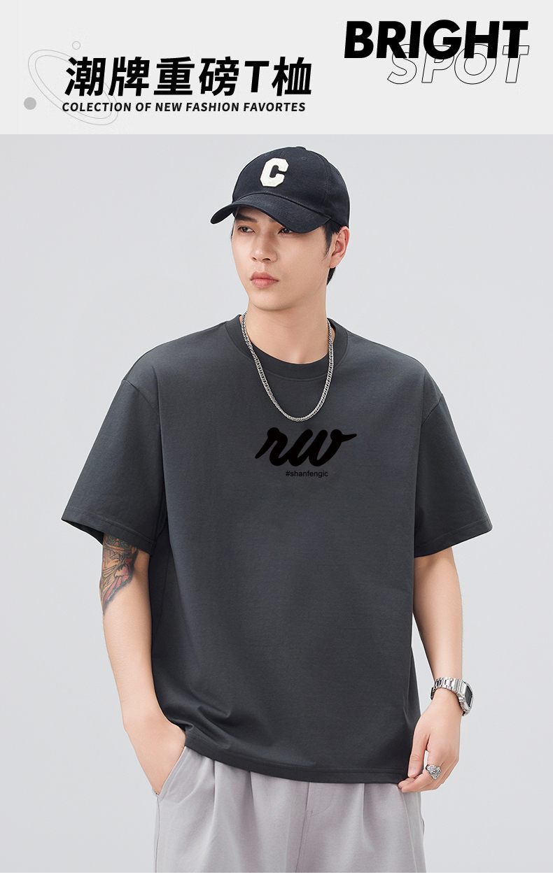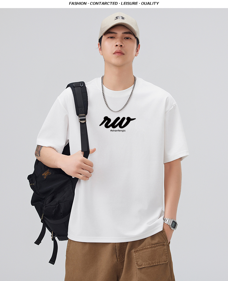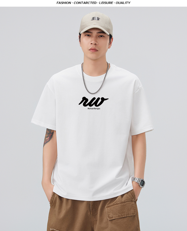 실사 2026 여름 새로운 미니멀리즘 알파벳 자수 반팔 티셔츠 남자 무거운 일본식 트렌드 5 점 소매 동정