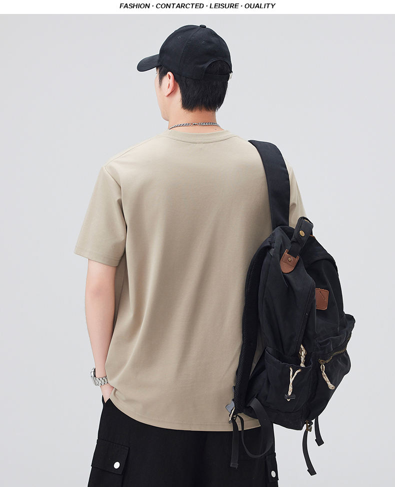 실사 2026 여름 새로운 라운드 넥 반팔 티셔츠 남자 일본식 레트로 단색 주머니 루즈핏 5 점 소매 동정