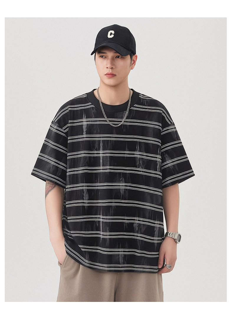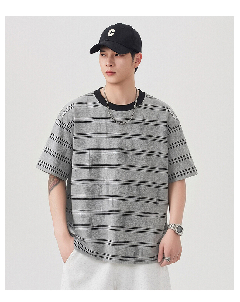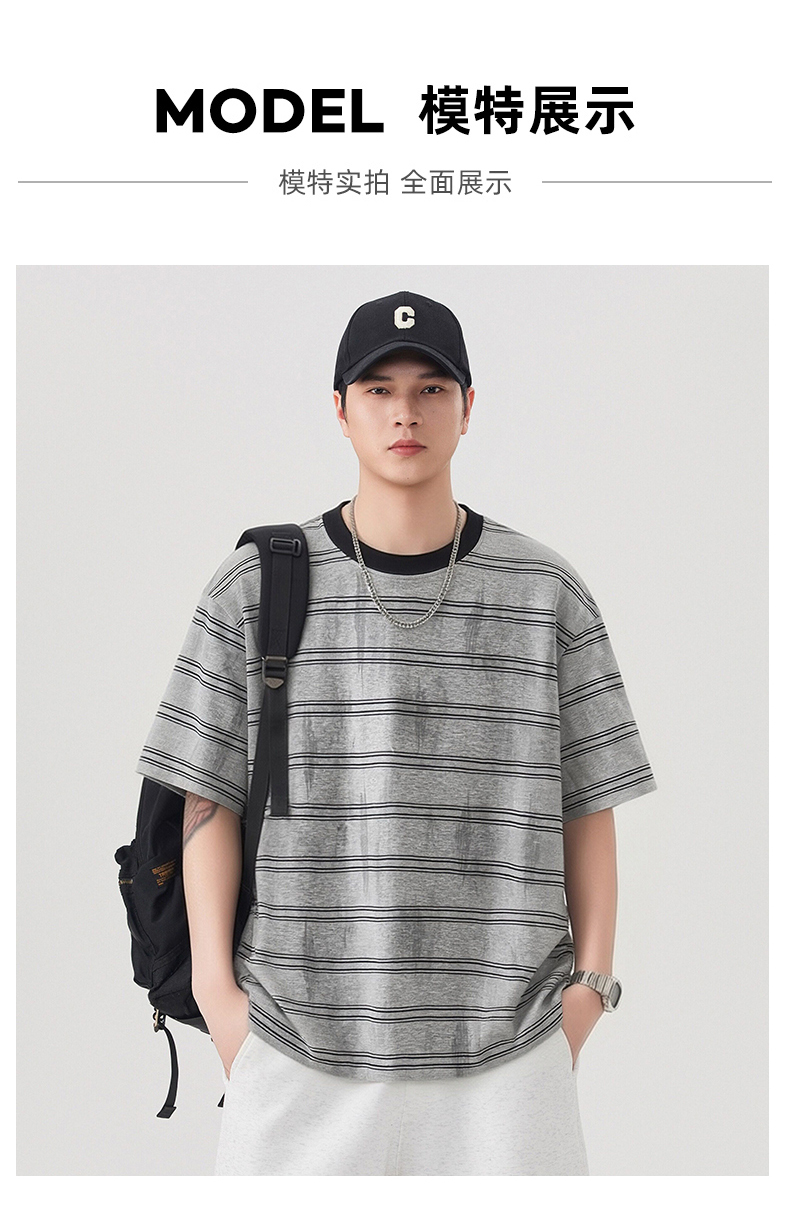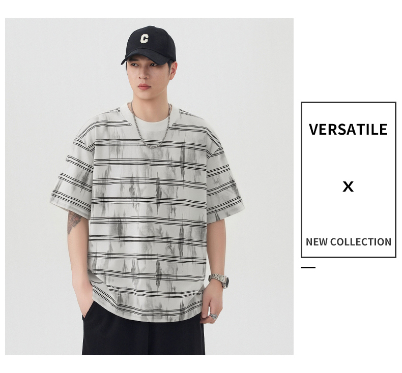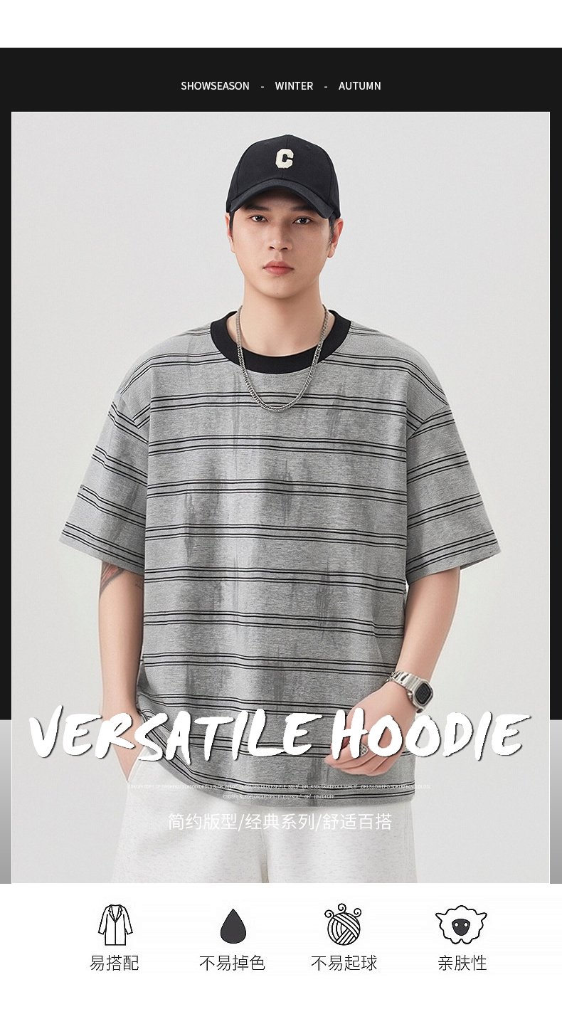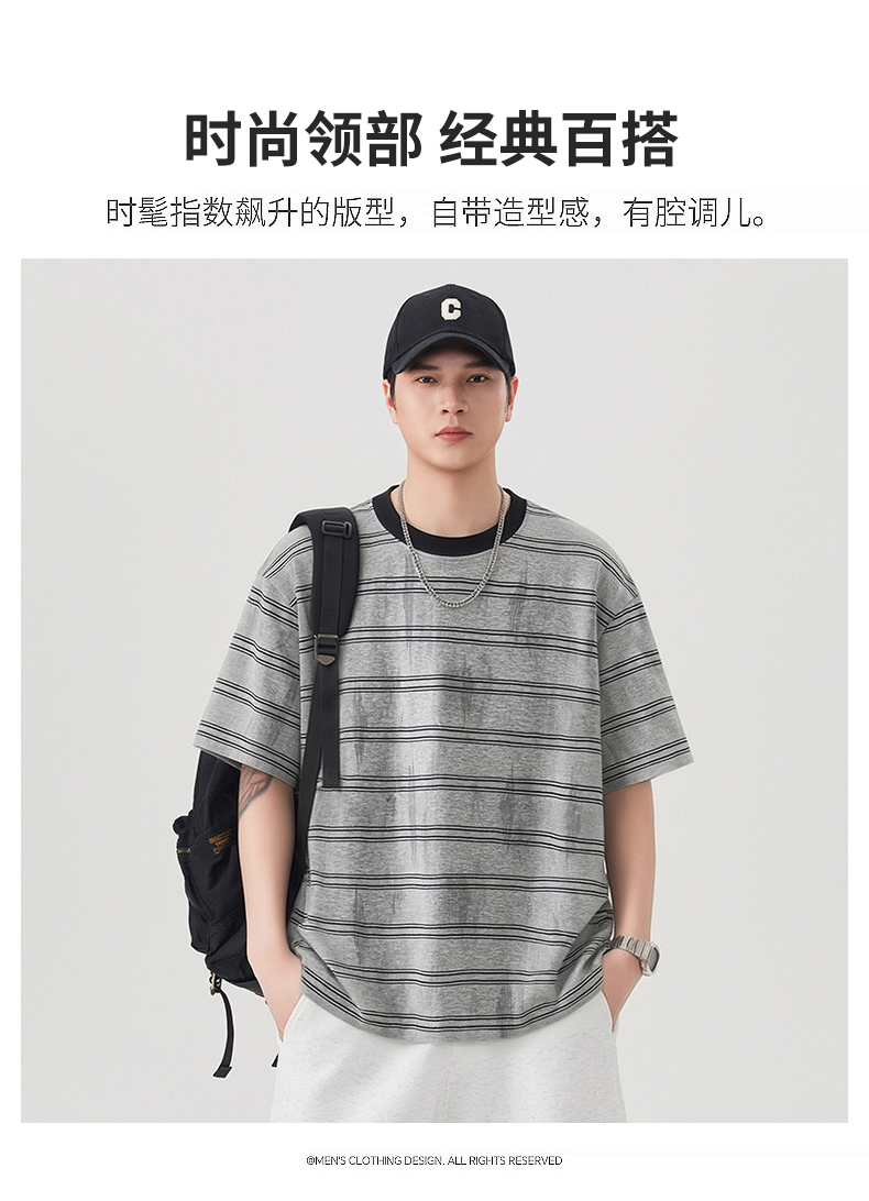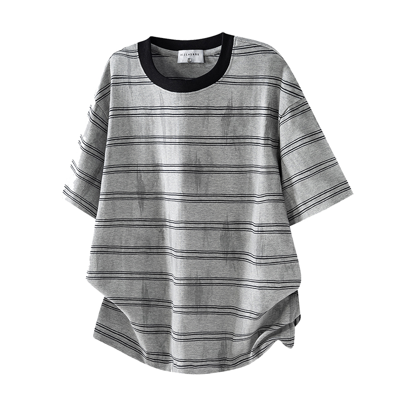 실사 2026 여름 새로운 조수 브랜드 아메리칸 반팔 티셔츠 남자 스트라이프 다용도 라운드 넥 반소매 동정