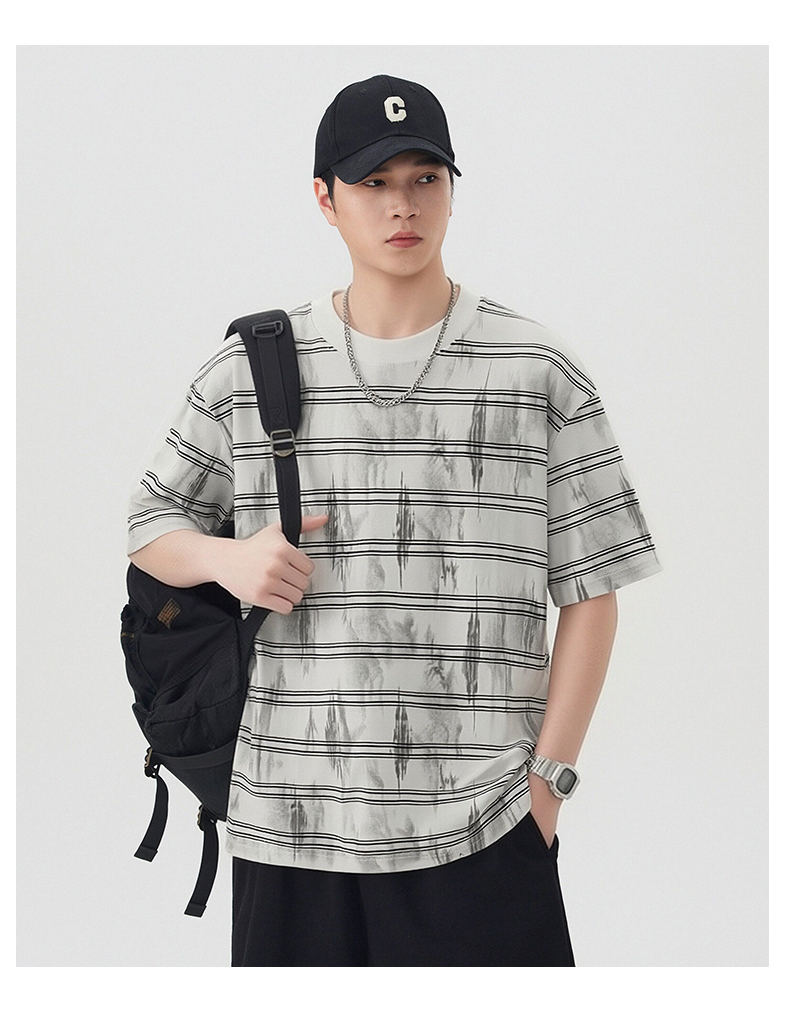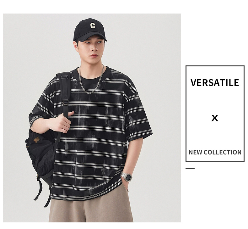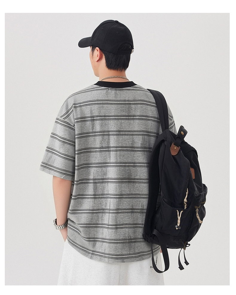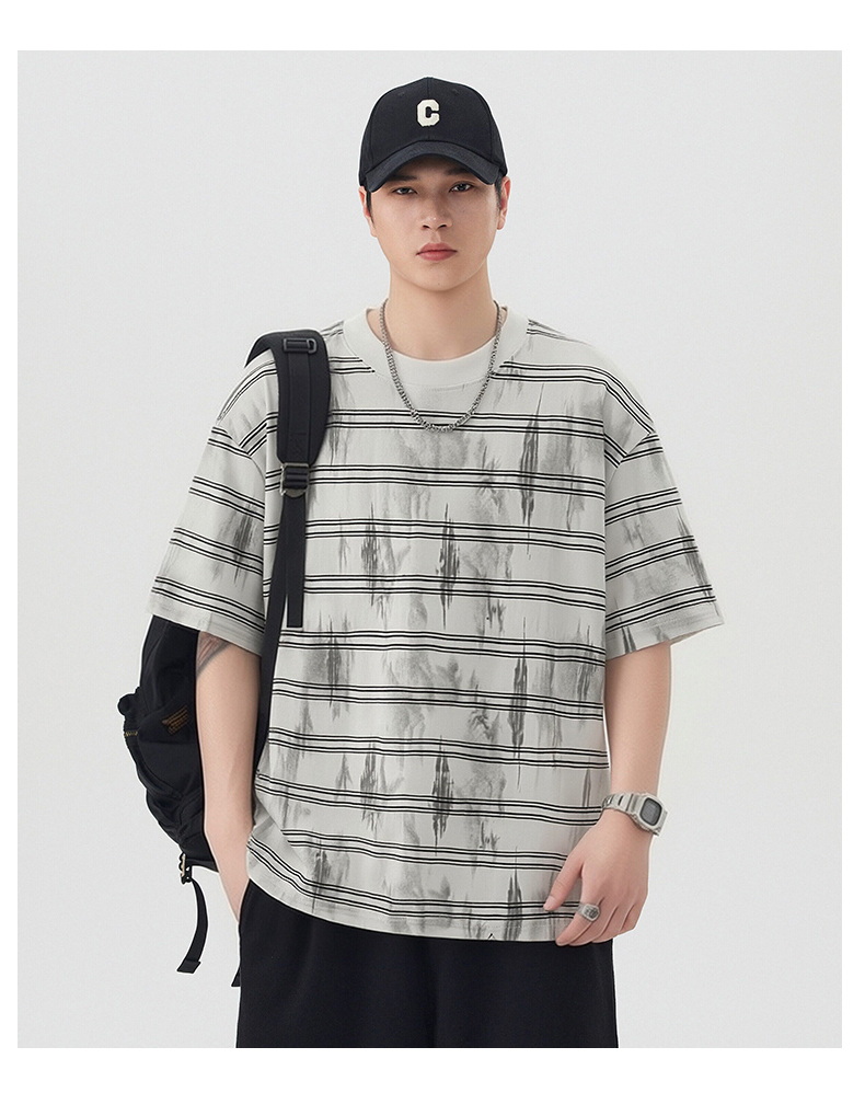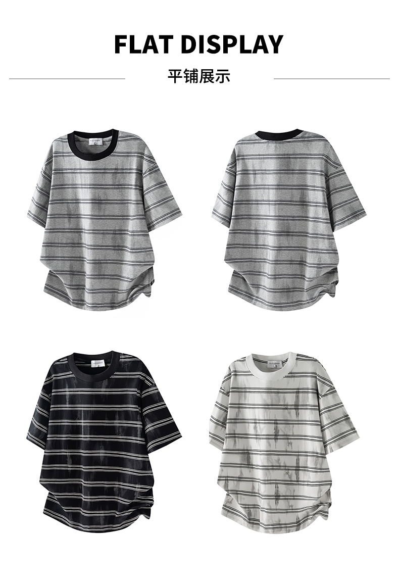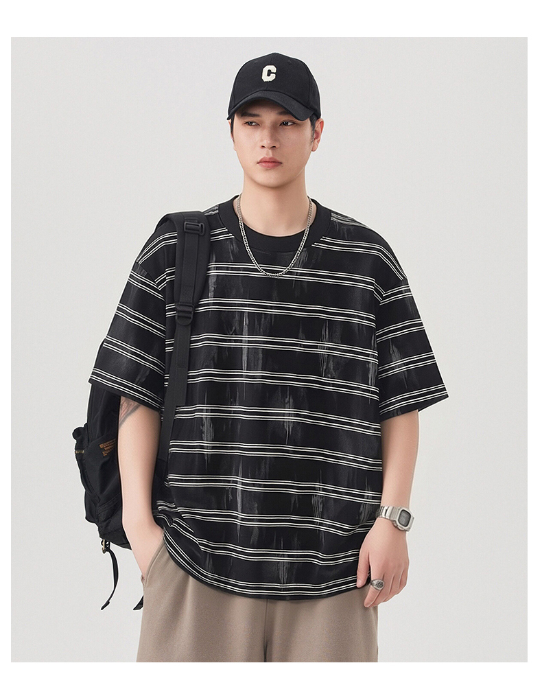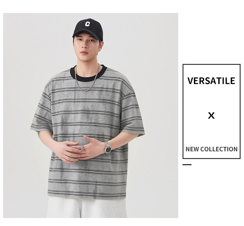 실사 2026 여름 새로운 조수 브랜드 아메리칸 반팔 티셔츠 남자 스트라이프 다용도 라운드 넥 반소매 동정