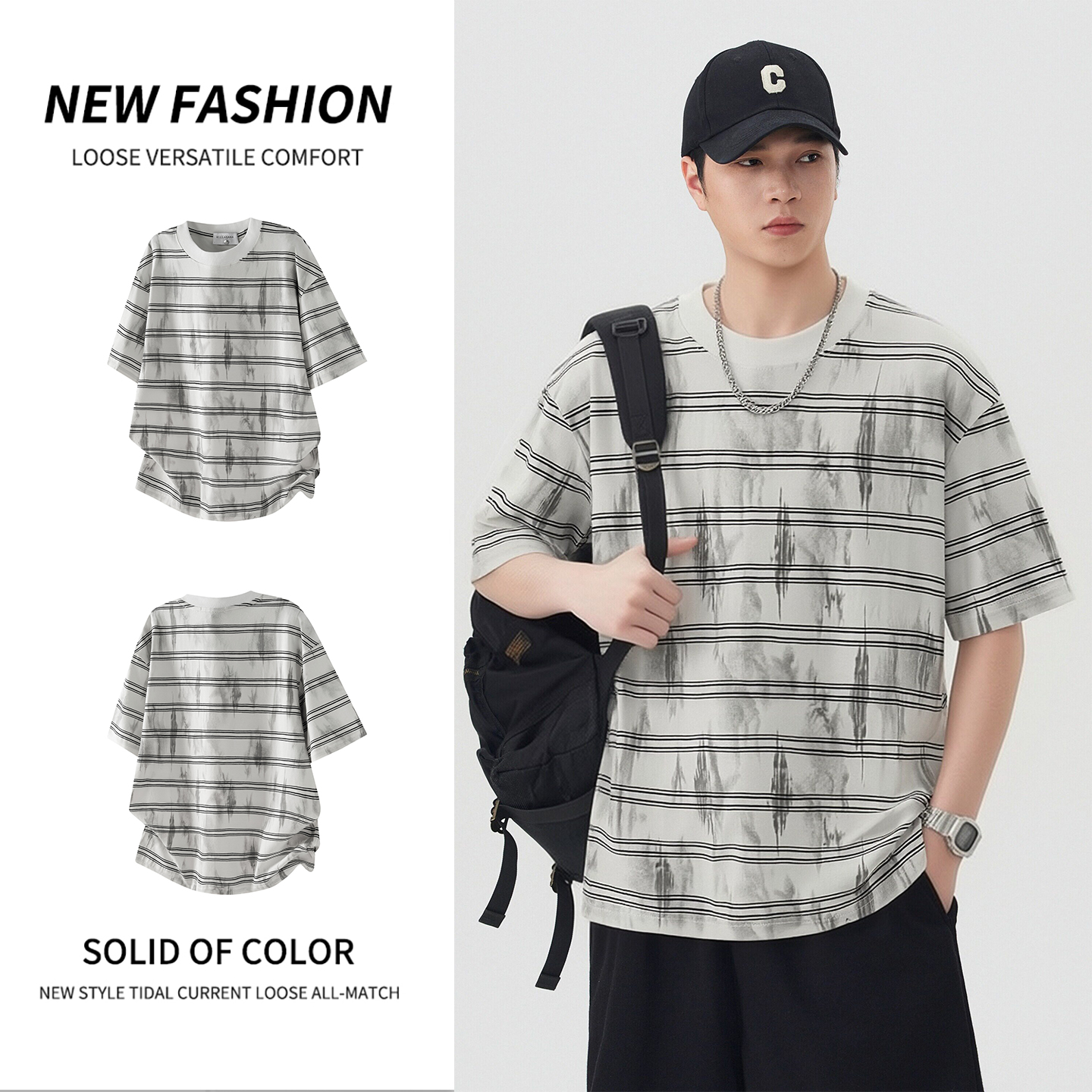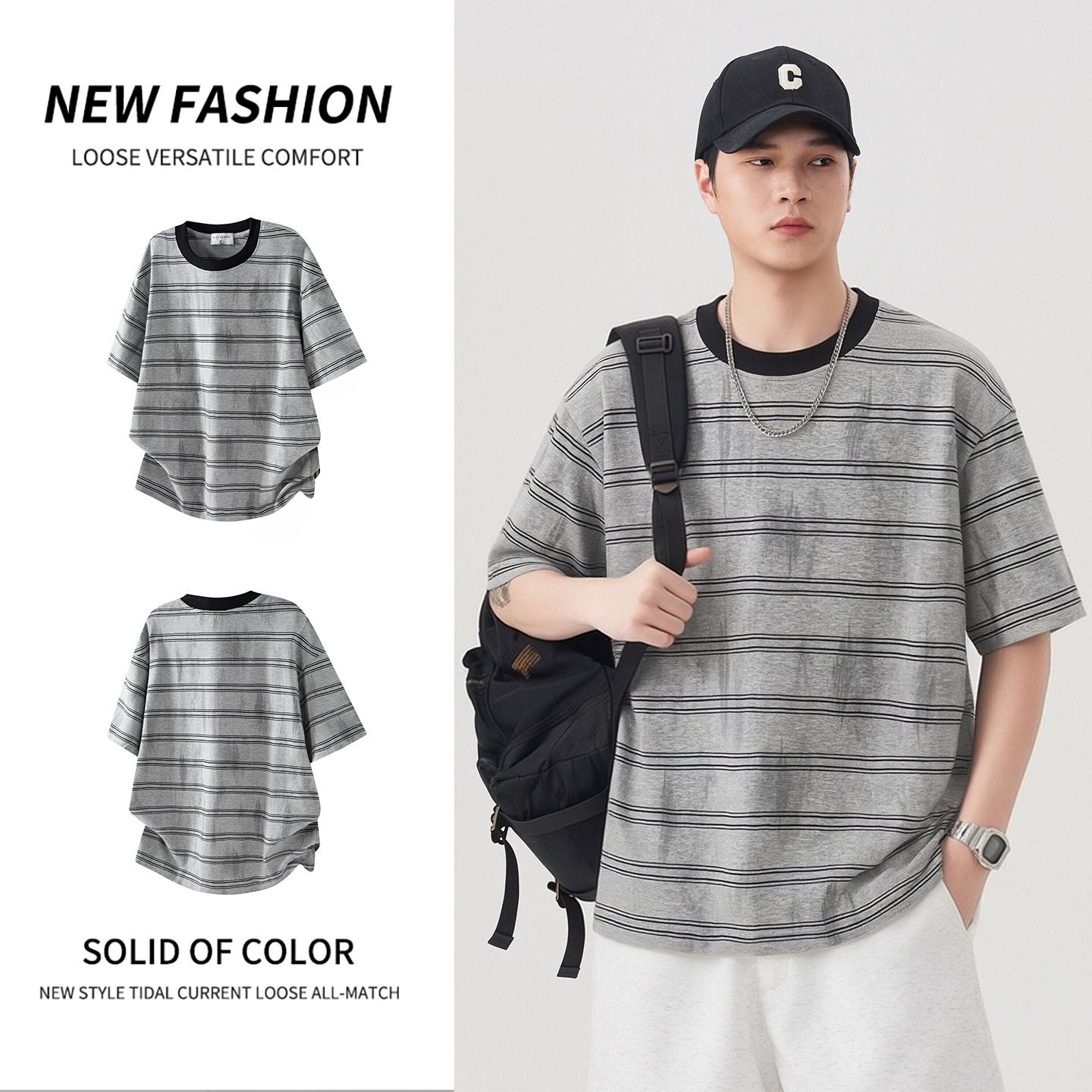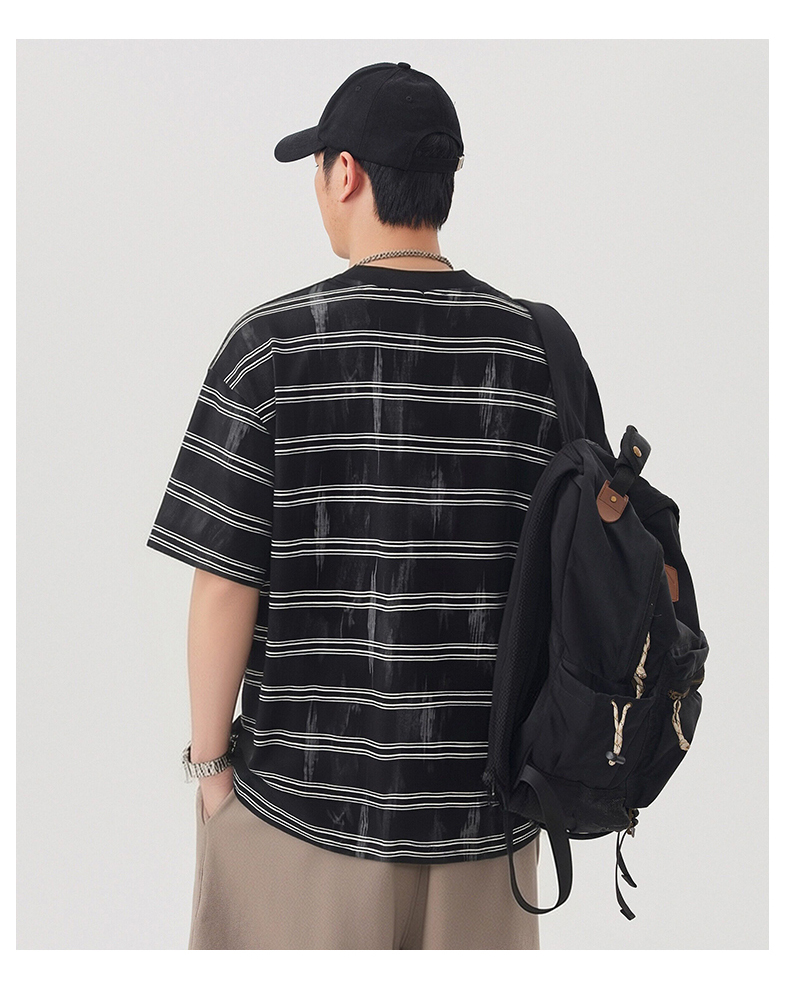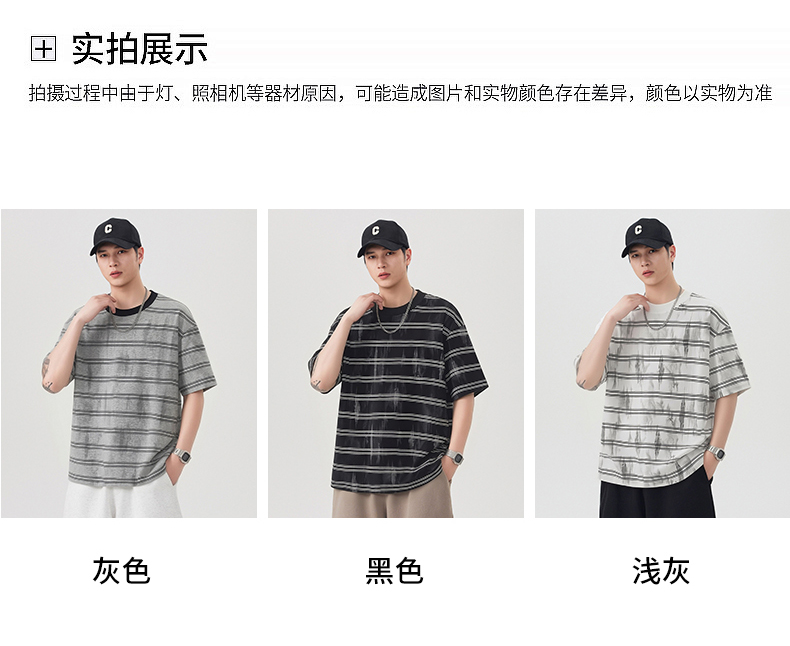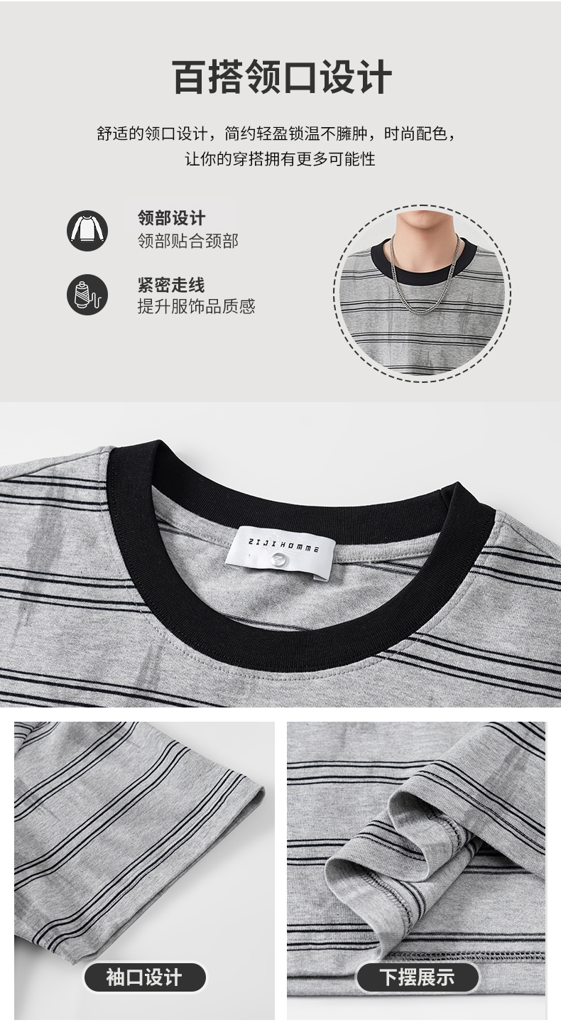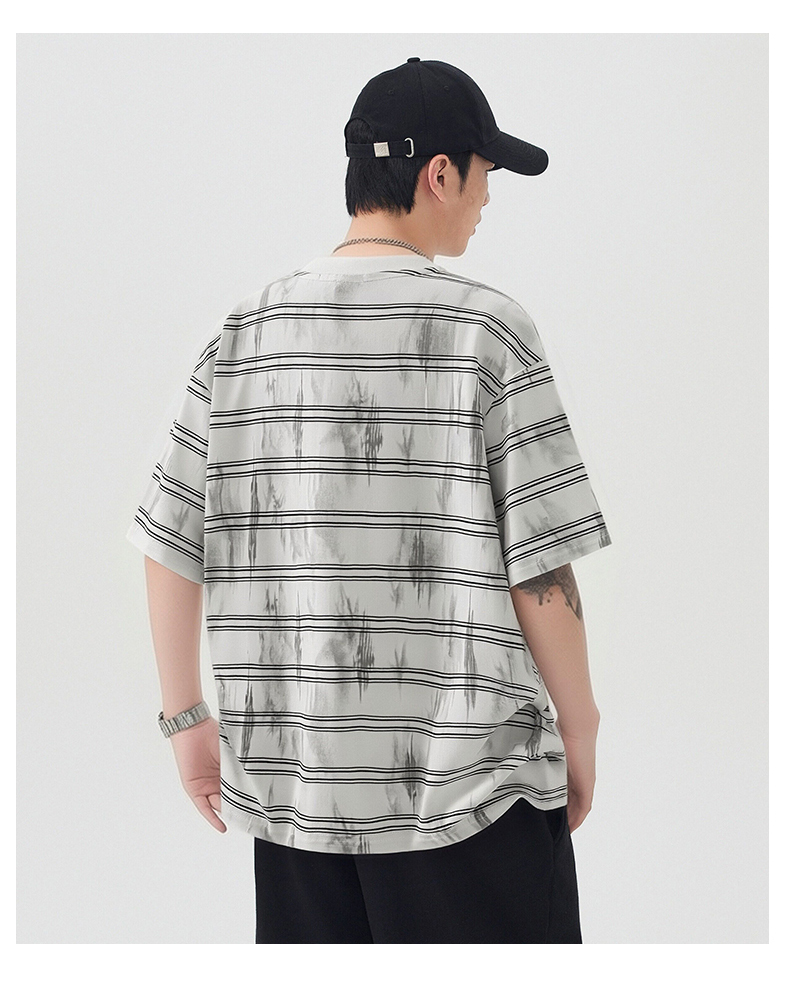 실사 2026 여름 새로운 조수 브랜드 아메리칸 반팔 티셔츠 남자 스트라이프 다용도 라운드 넥 반소매 동정