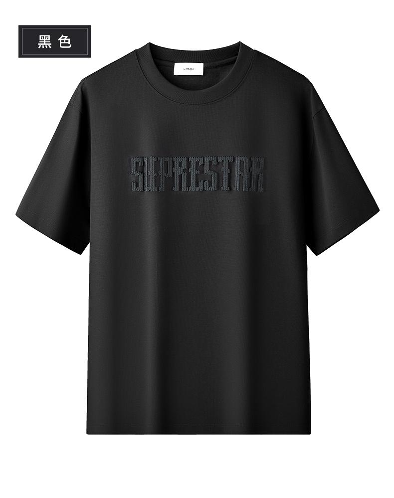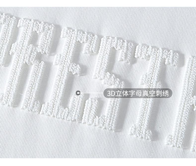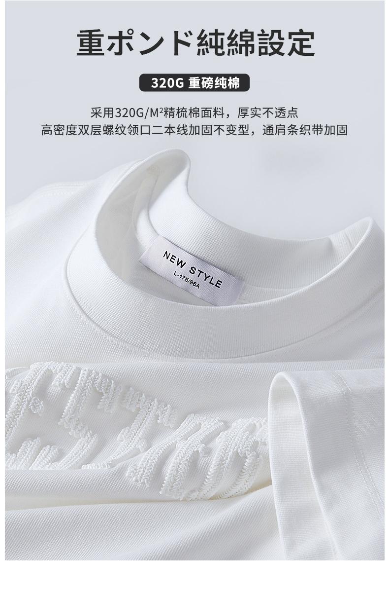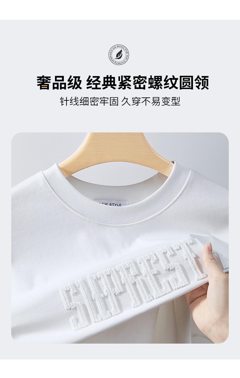 320g 무거운 신강 길다 플러시 면 라운드 넥 반팔 3d 3 차원 알파벳 진공 자수 섹션