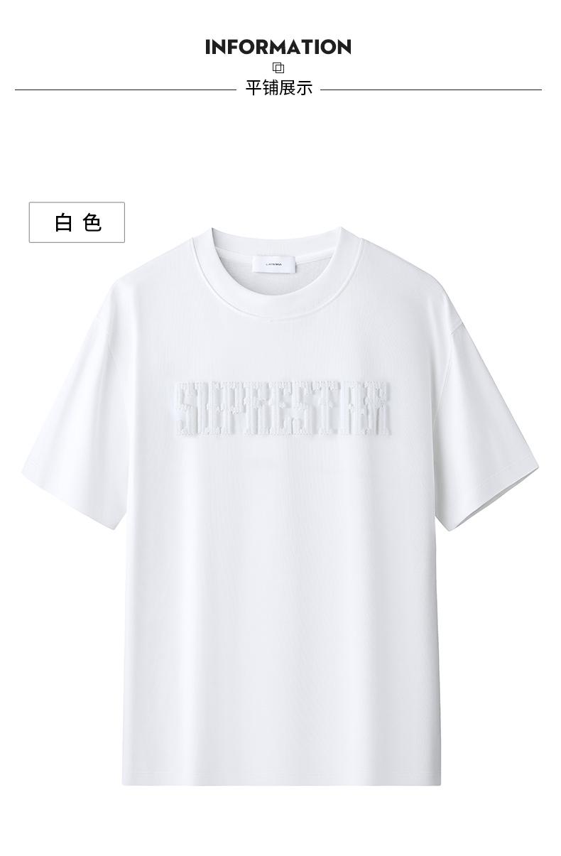 차가운 센스 240g 액 모 늄 실광택 코튼 반팔 티셔츠 남자 여름 고급 센스 3d 엠보싱 단색 통기성 동정