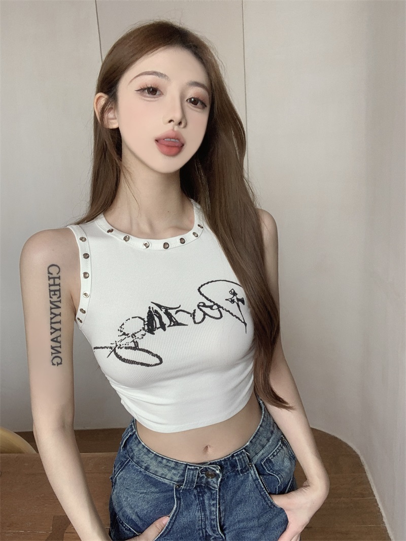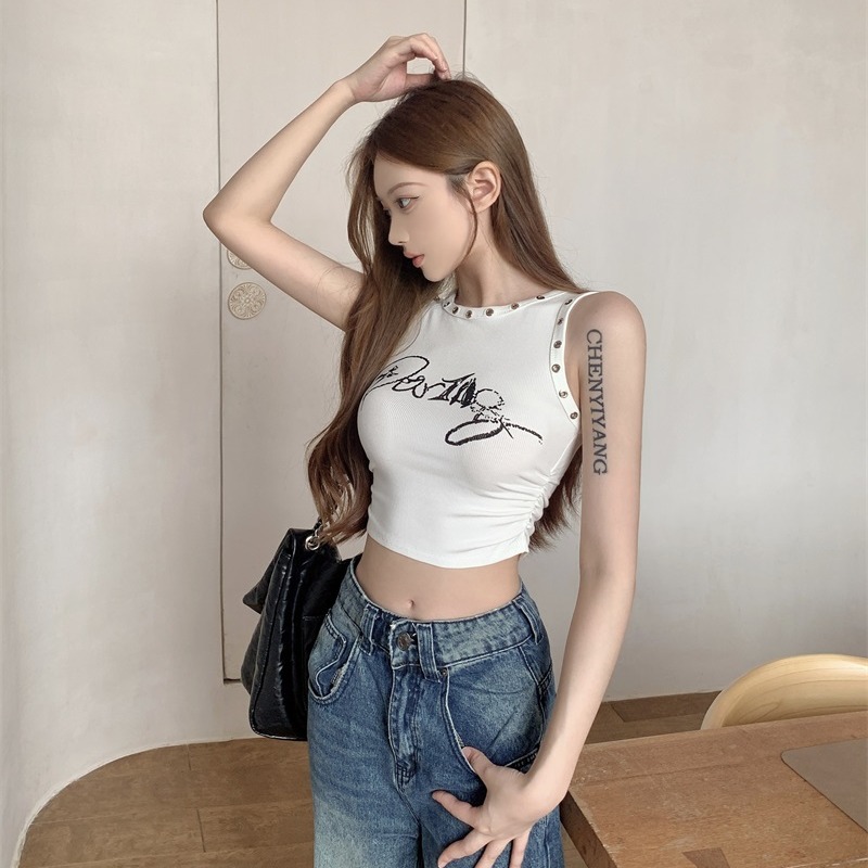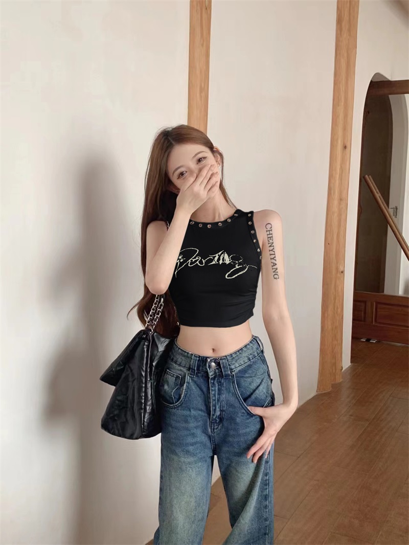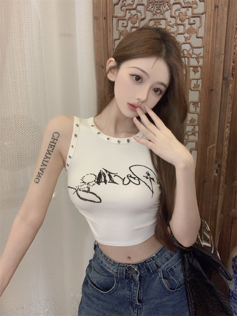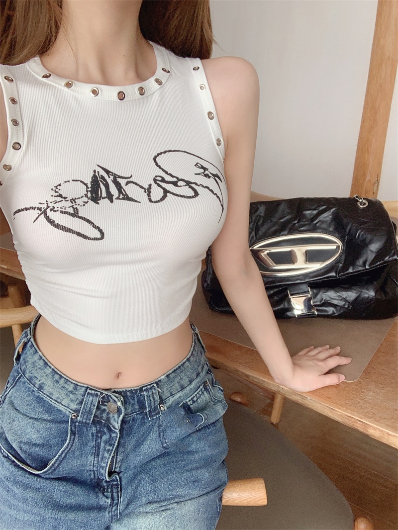 실사 정가 감소되지 않음 알파벳 프린트 홀로우 아웃 조끼 작은 슬링 여성 새로운 핫걸 외출용 민소매 맨위