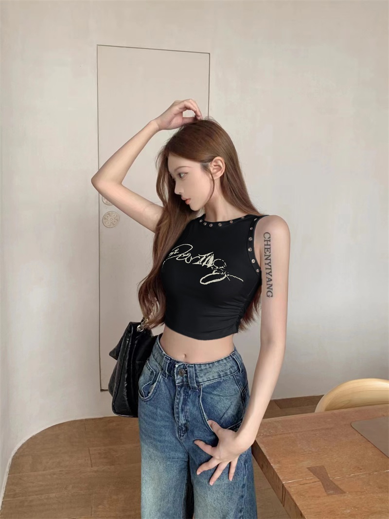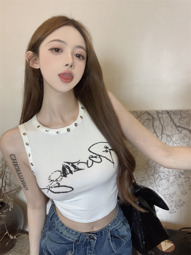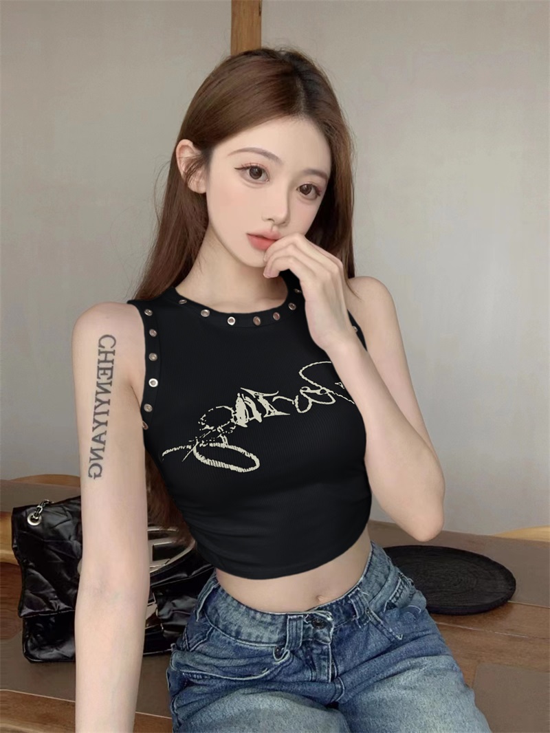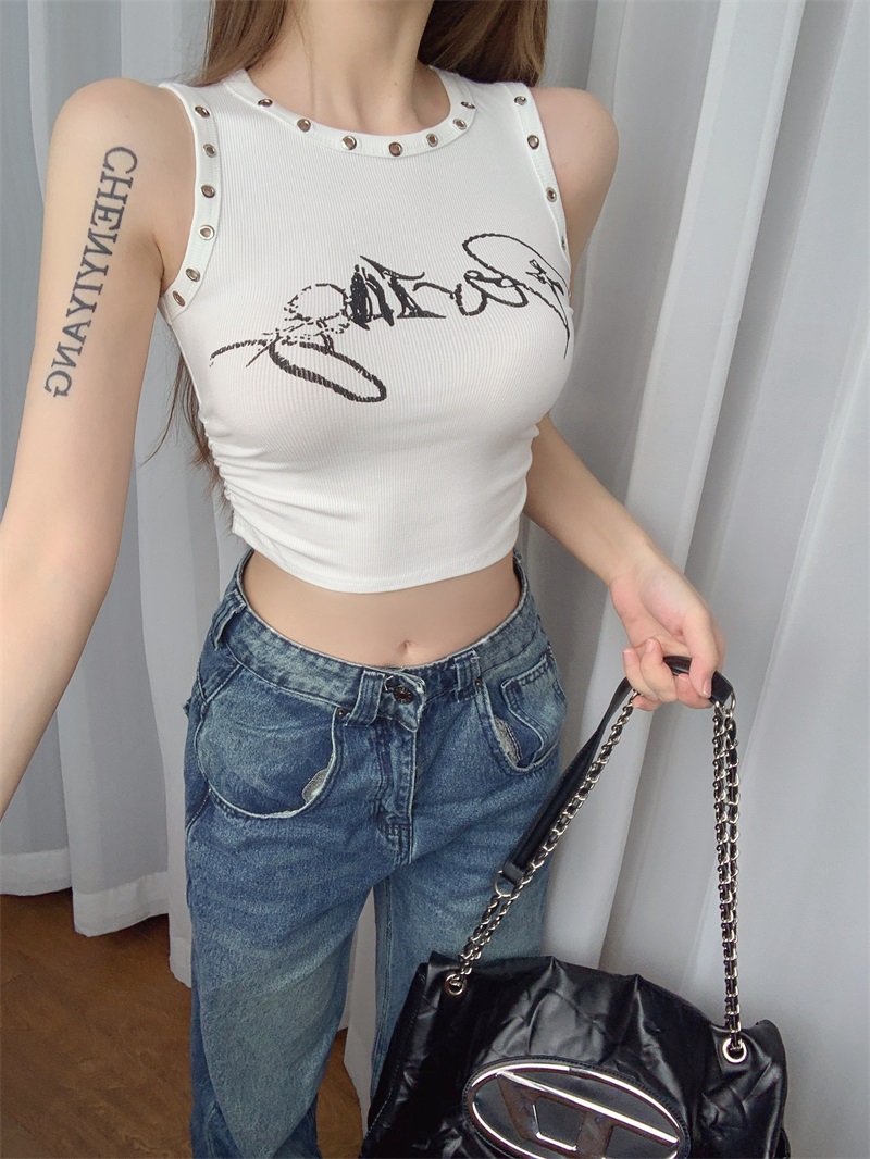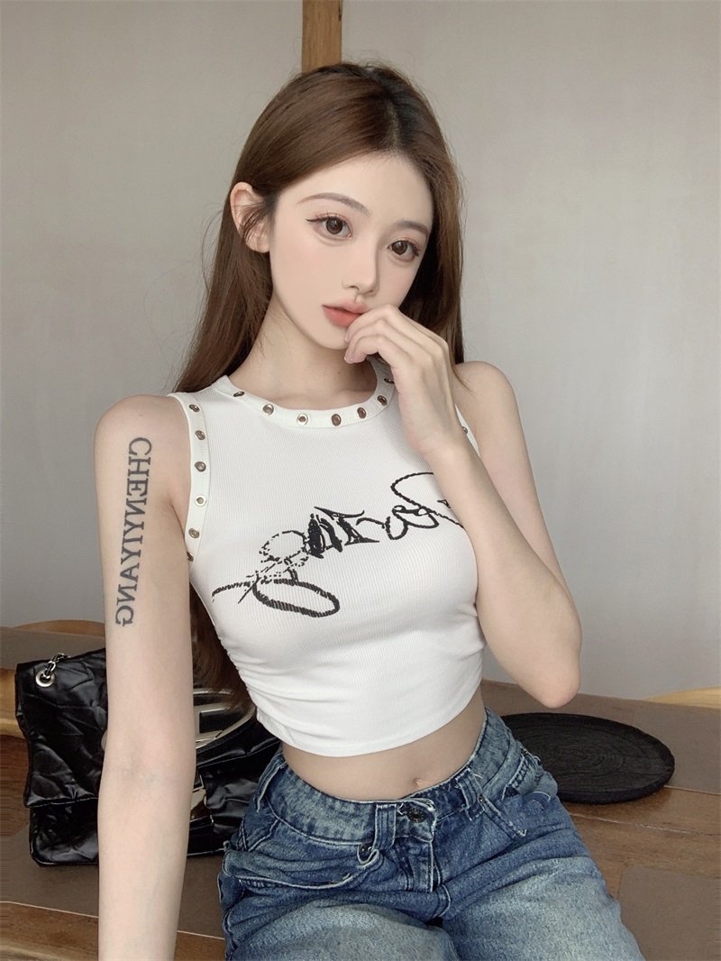 실사 정가 감소되지 않음 알파벳 프린트 홀로우 아웃 조끼 작은 슬링 여성 새로운 핫걸 외출용 민소매 맨위