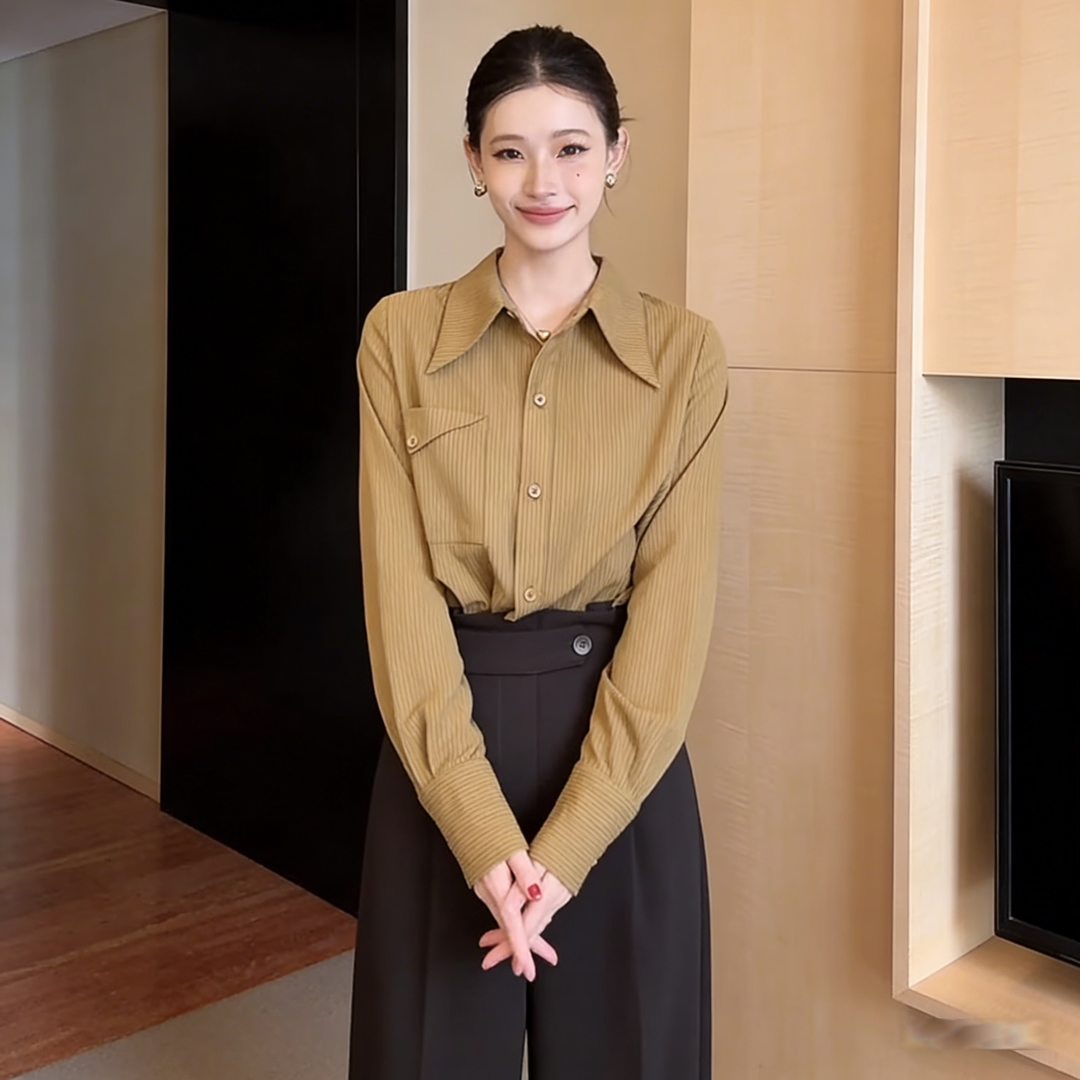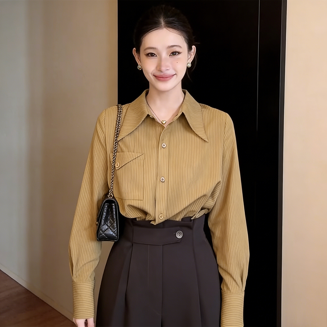 실사 프랑스식 스트라이프 긴팔 셔츠 맨위 여성 2026 년 새로운 봄 품격 출퇴근 루즈핏 셔츠