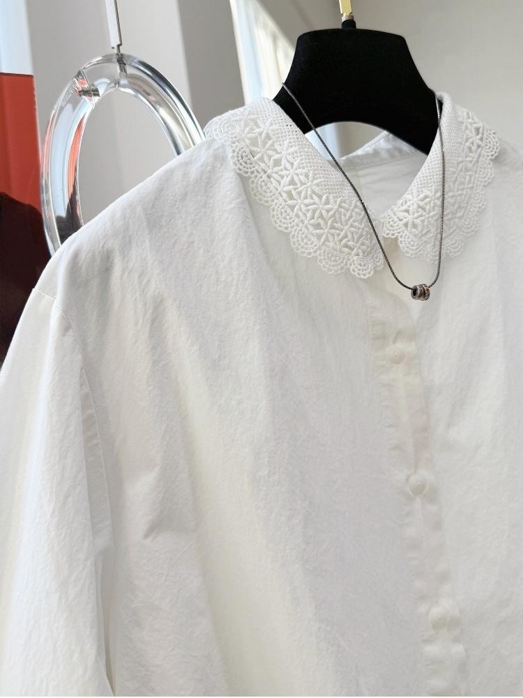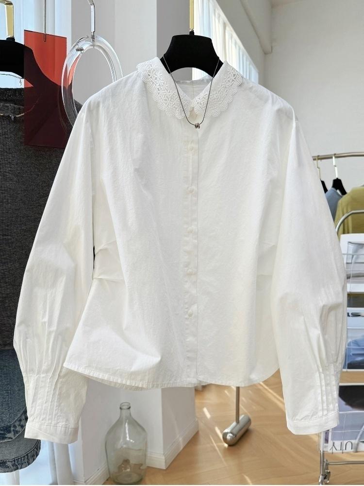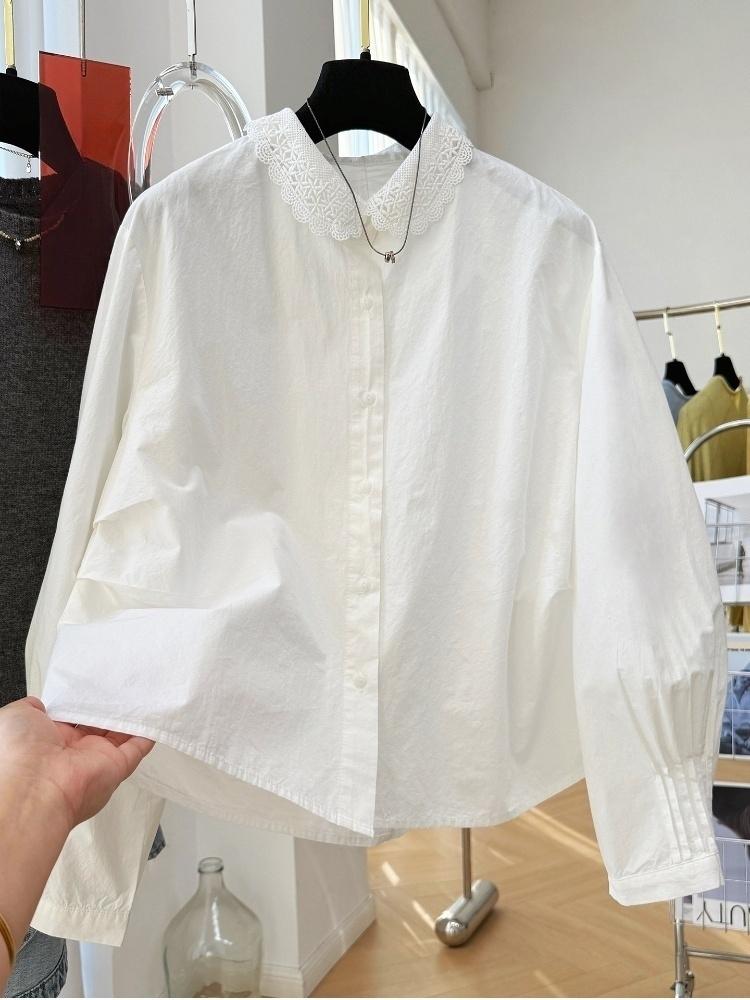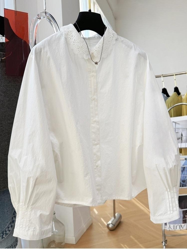 프랑스식 패션 품격 자수 프릴 칼라 레이스 화이트 긴팔 셔츠 루즈핏 맨위 여성 면 2026 봄 새로운