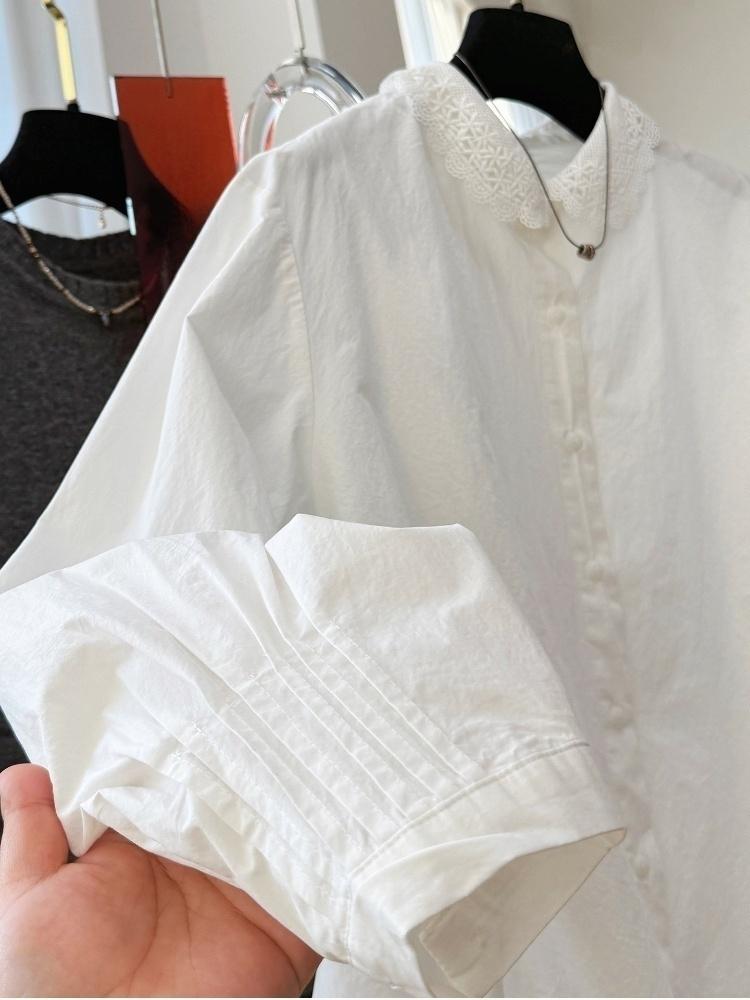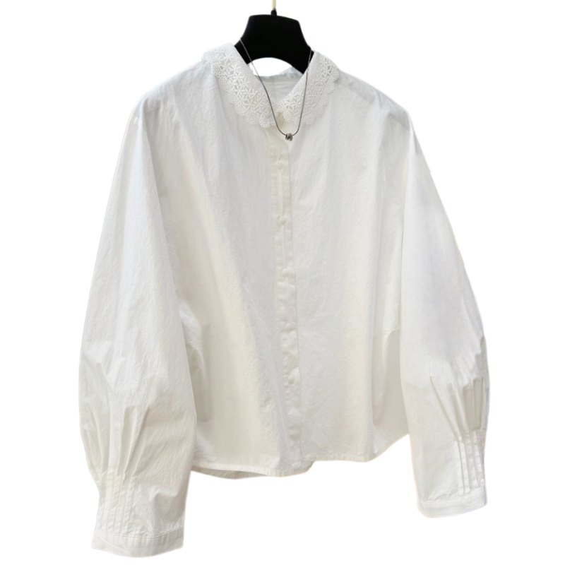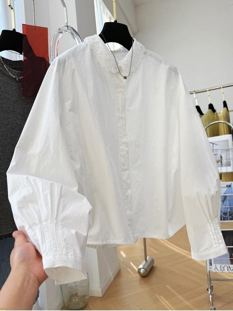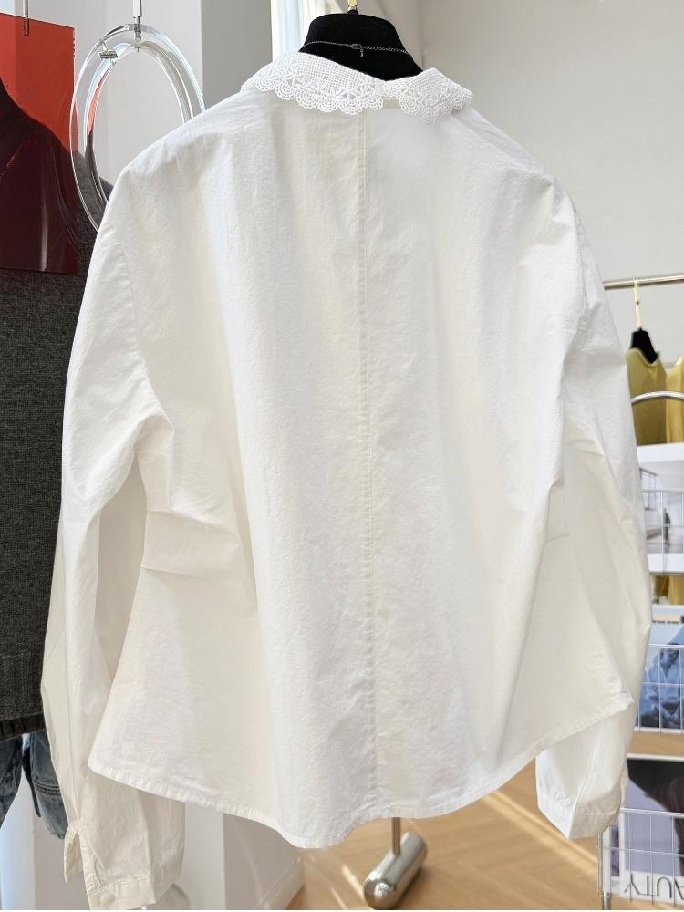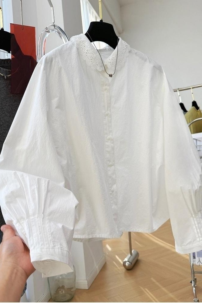 프랑스식 패션 품격 자수 프릴 칼라 레이스 화이트 긴팔 셔츠 루즈핏 맨위 여성 면 2026 봄 새로운
