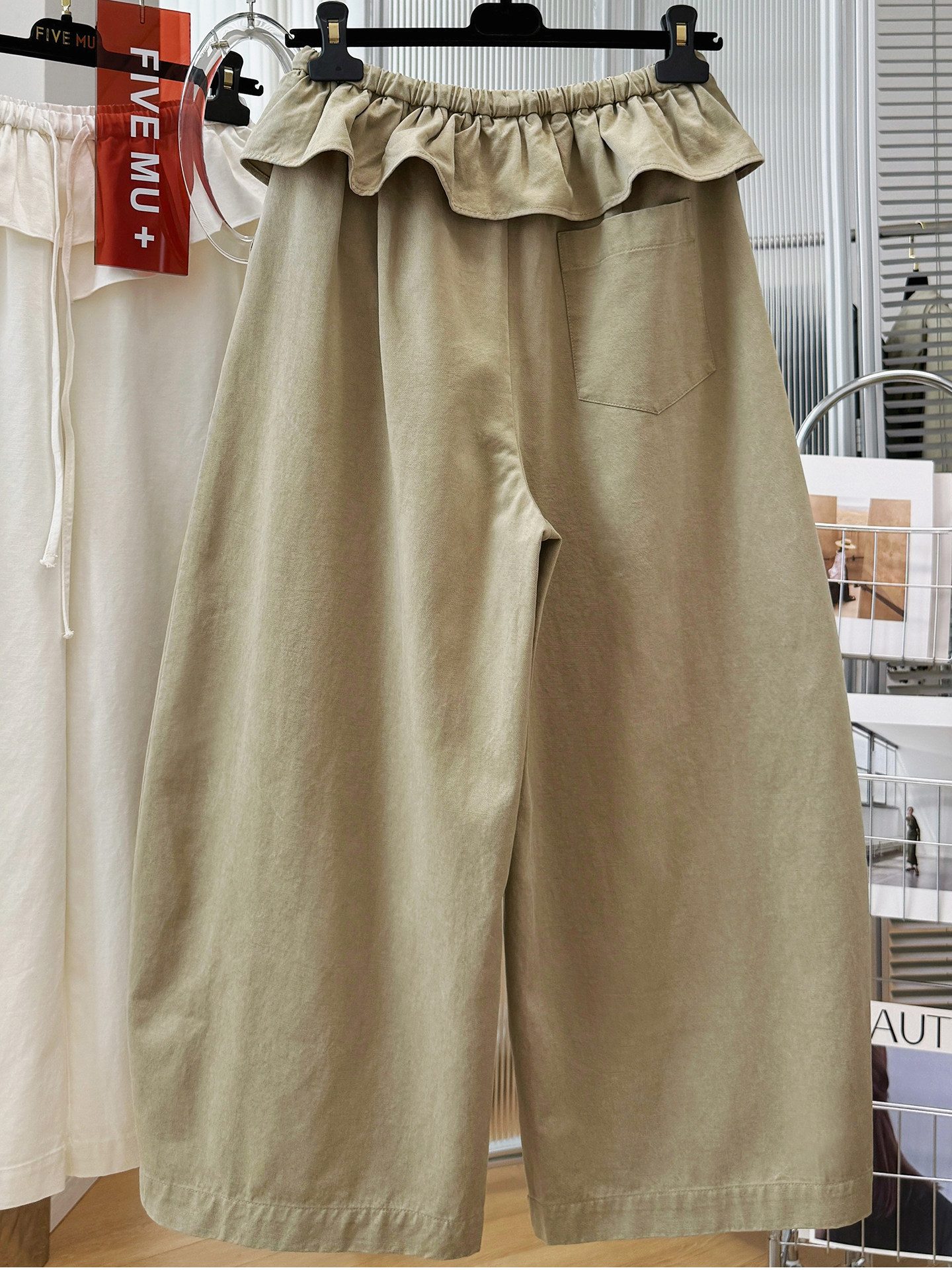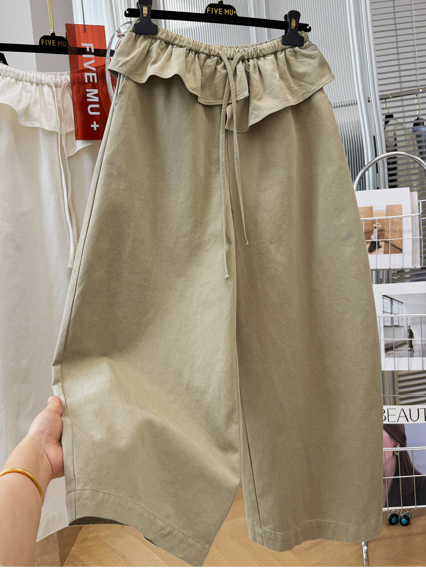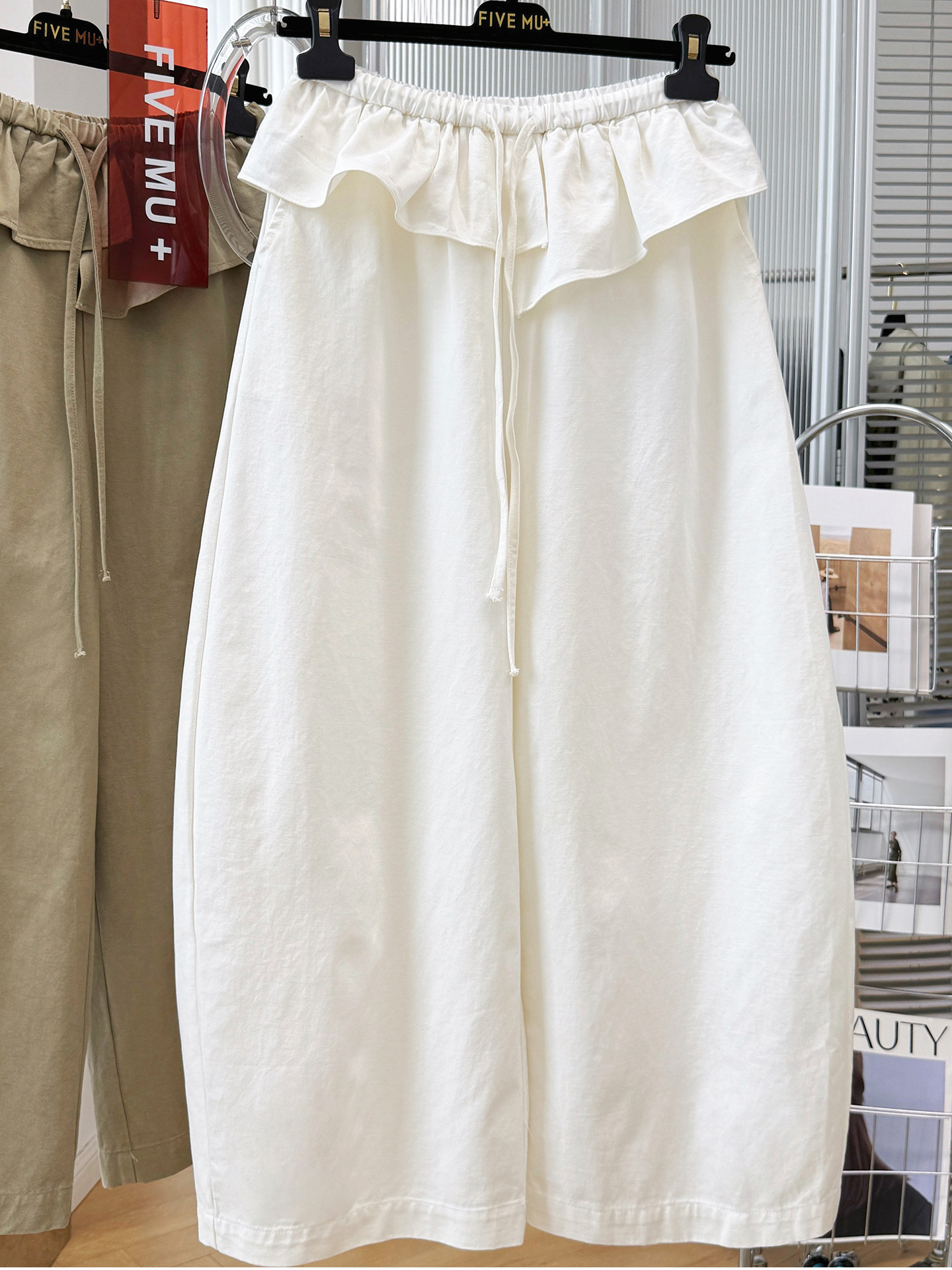 실사 빅 사이즈 바지 프릴 허리밴드 모통이 칼 와이드 레깅스 바지 봄 드레스 자이언트 잘 생긴 워크웨어 캐주얼 바지