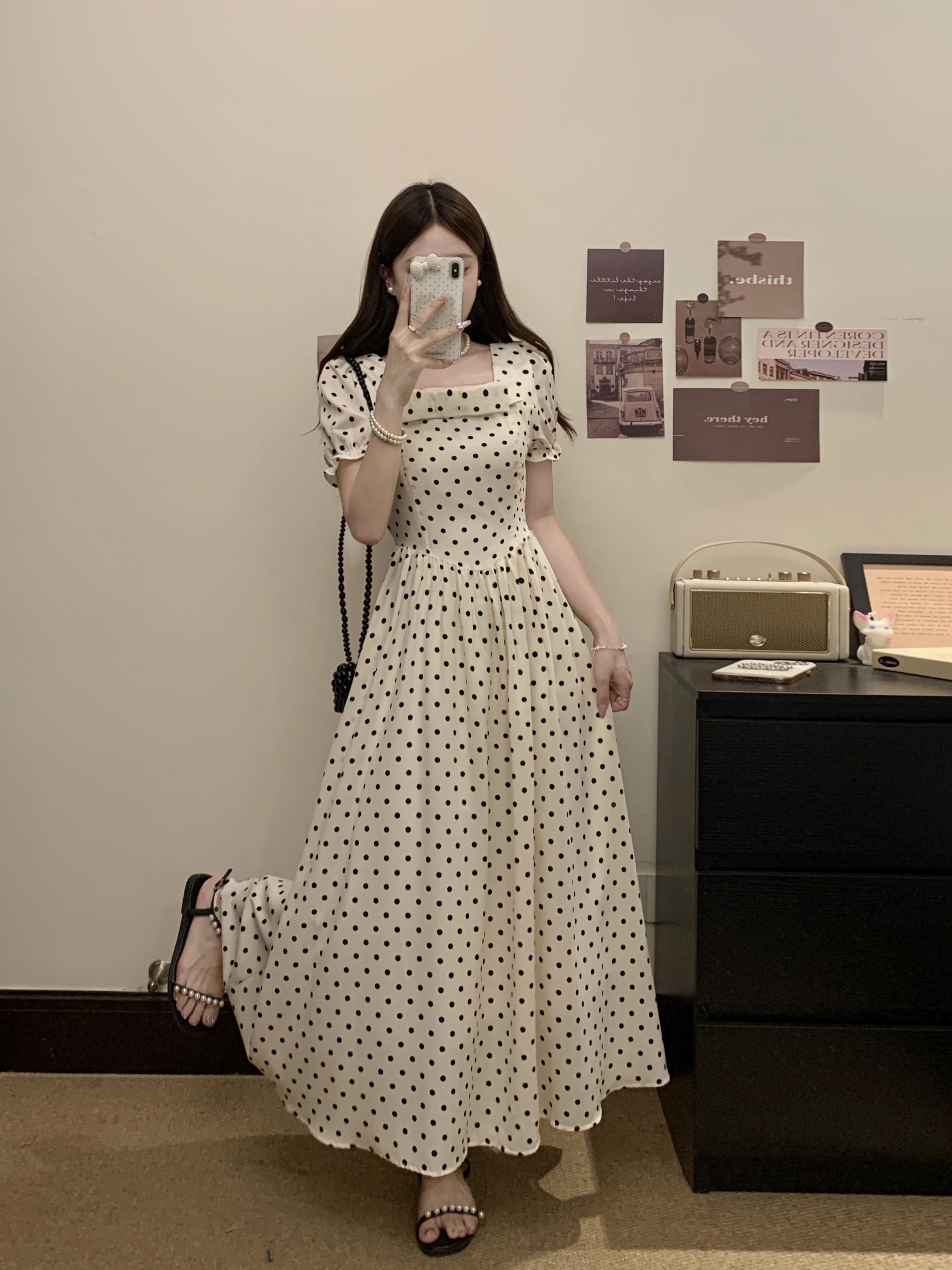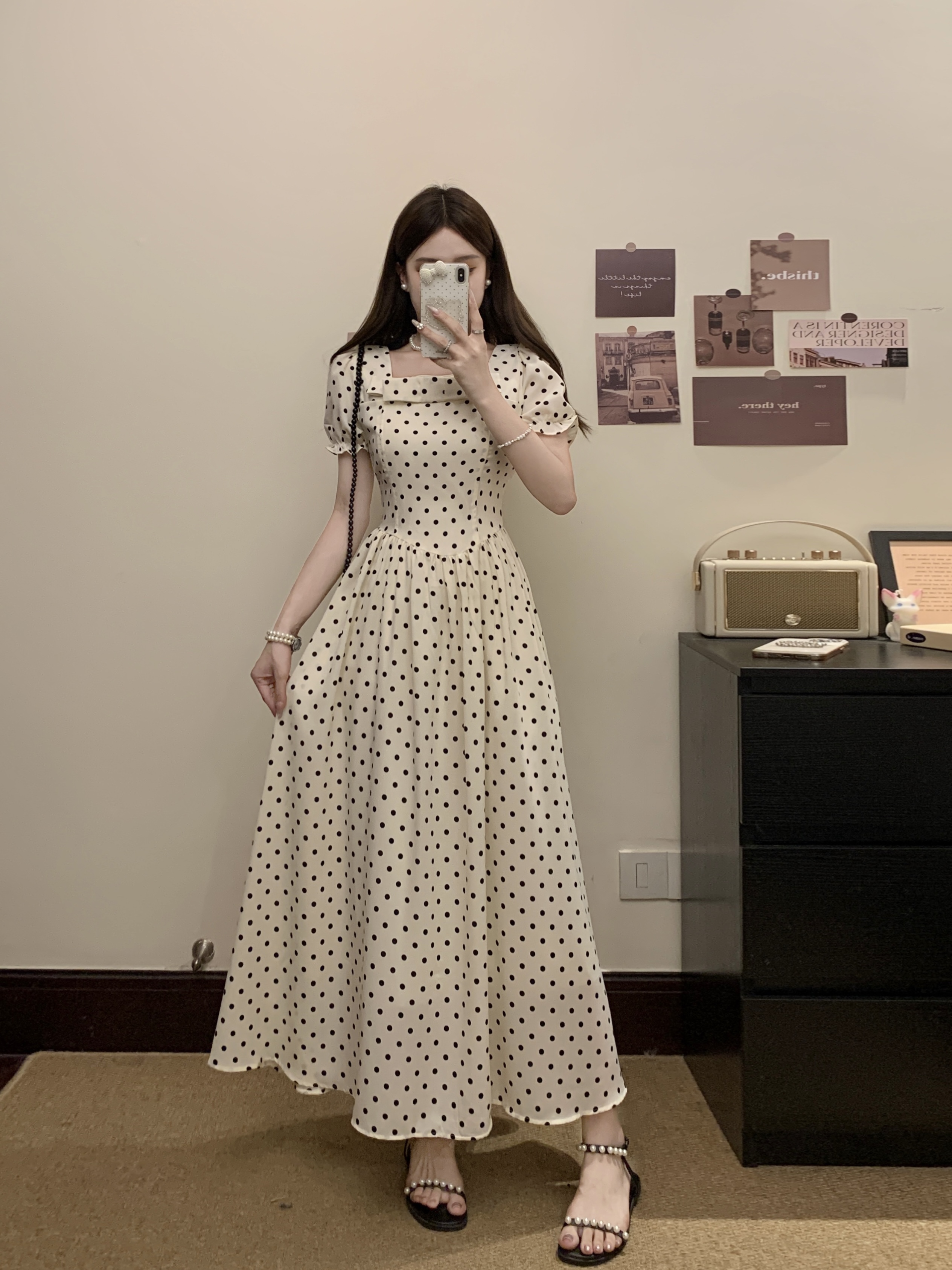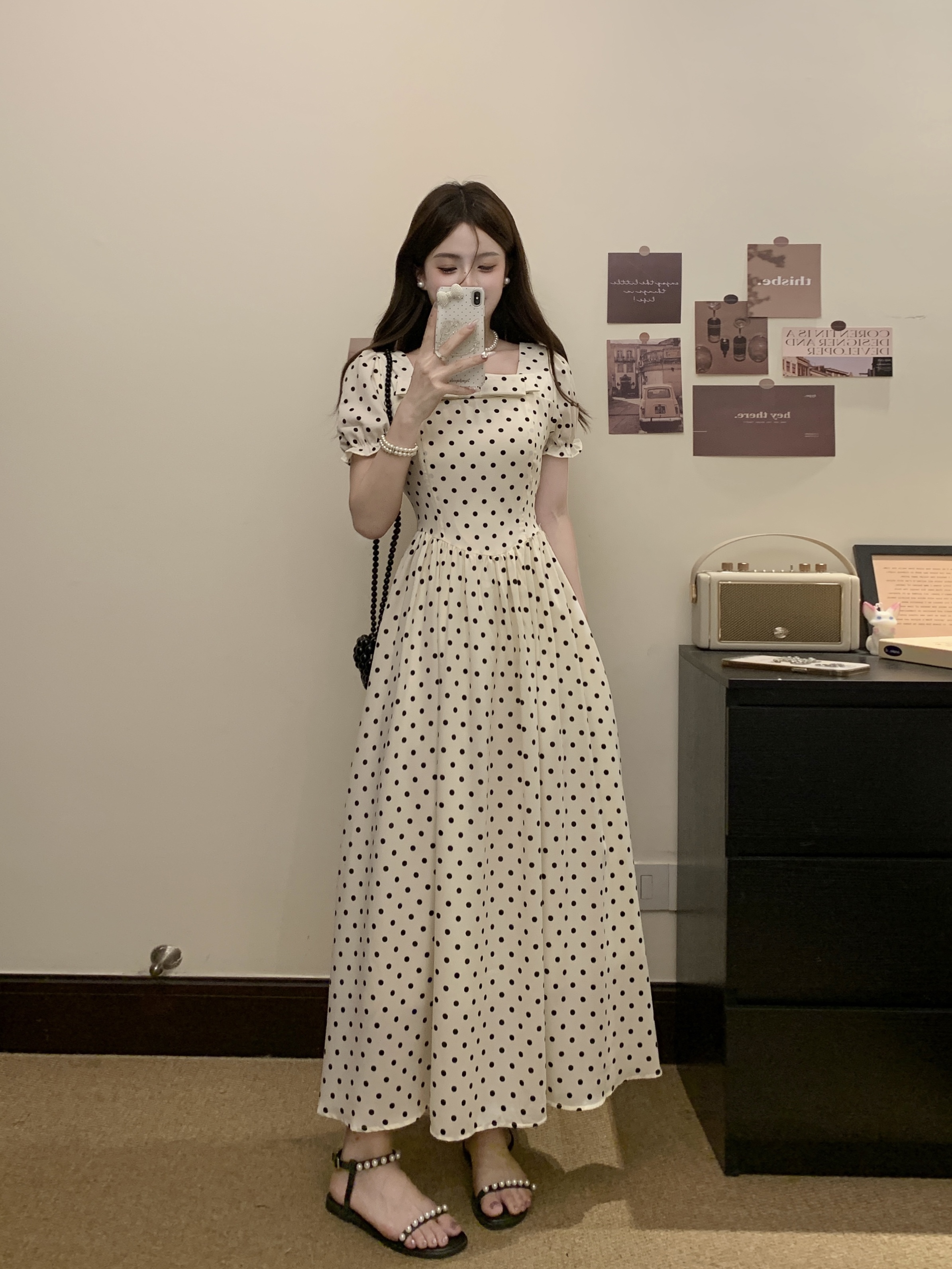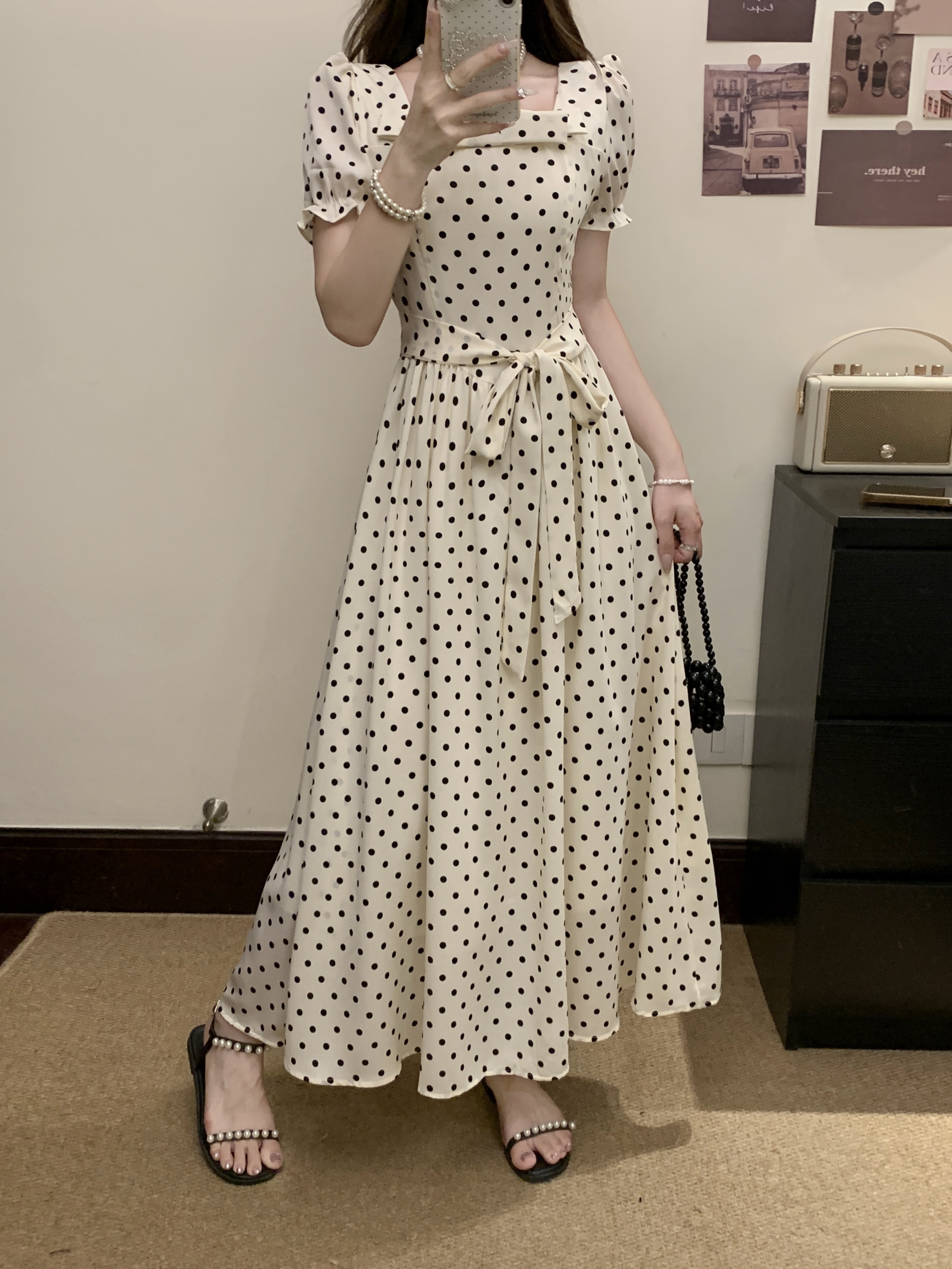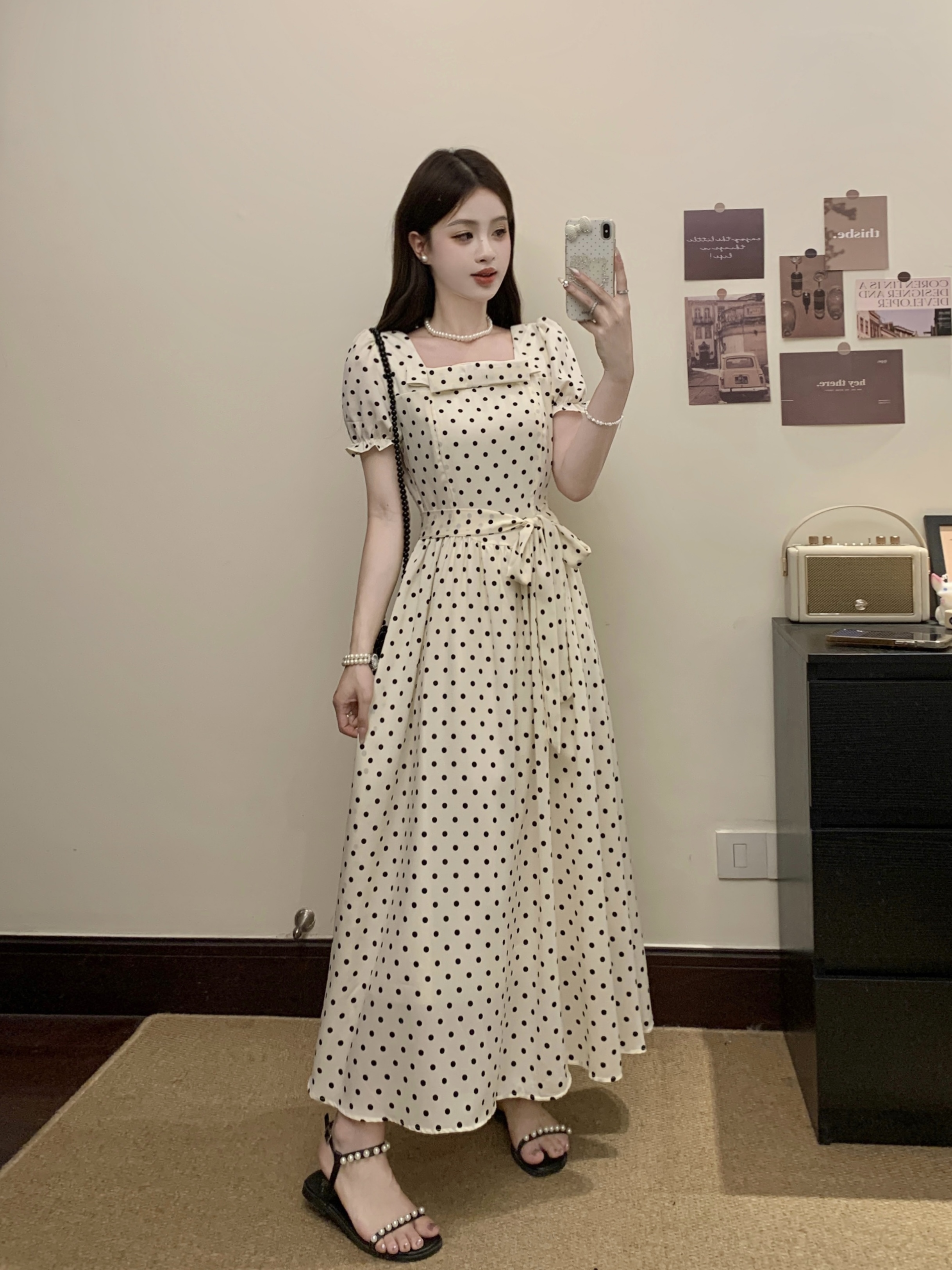 프랑스식 레트로 도트 무늬 거품 소매 여성 드레스 2026 새로운 부드러운 품격 서리가 내린 부서 고유 한 Chic 치마