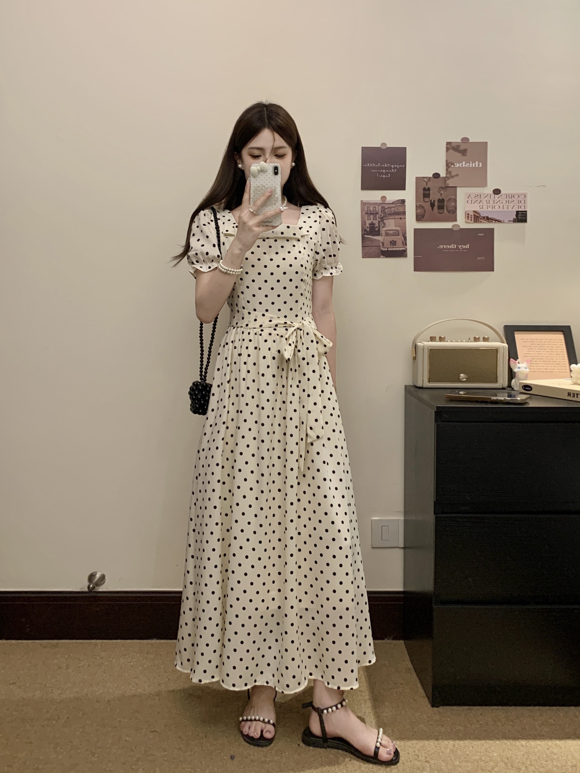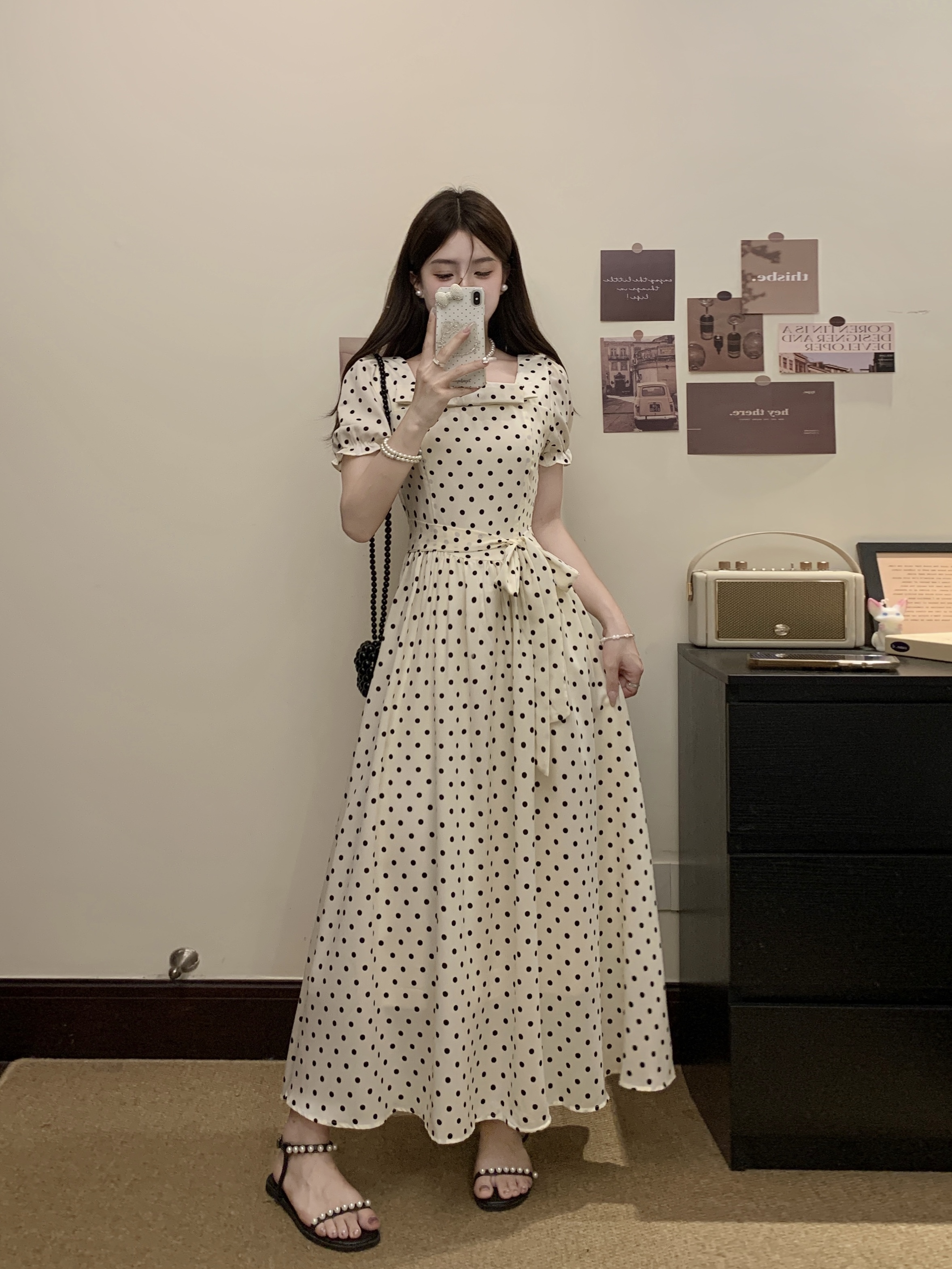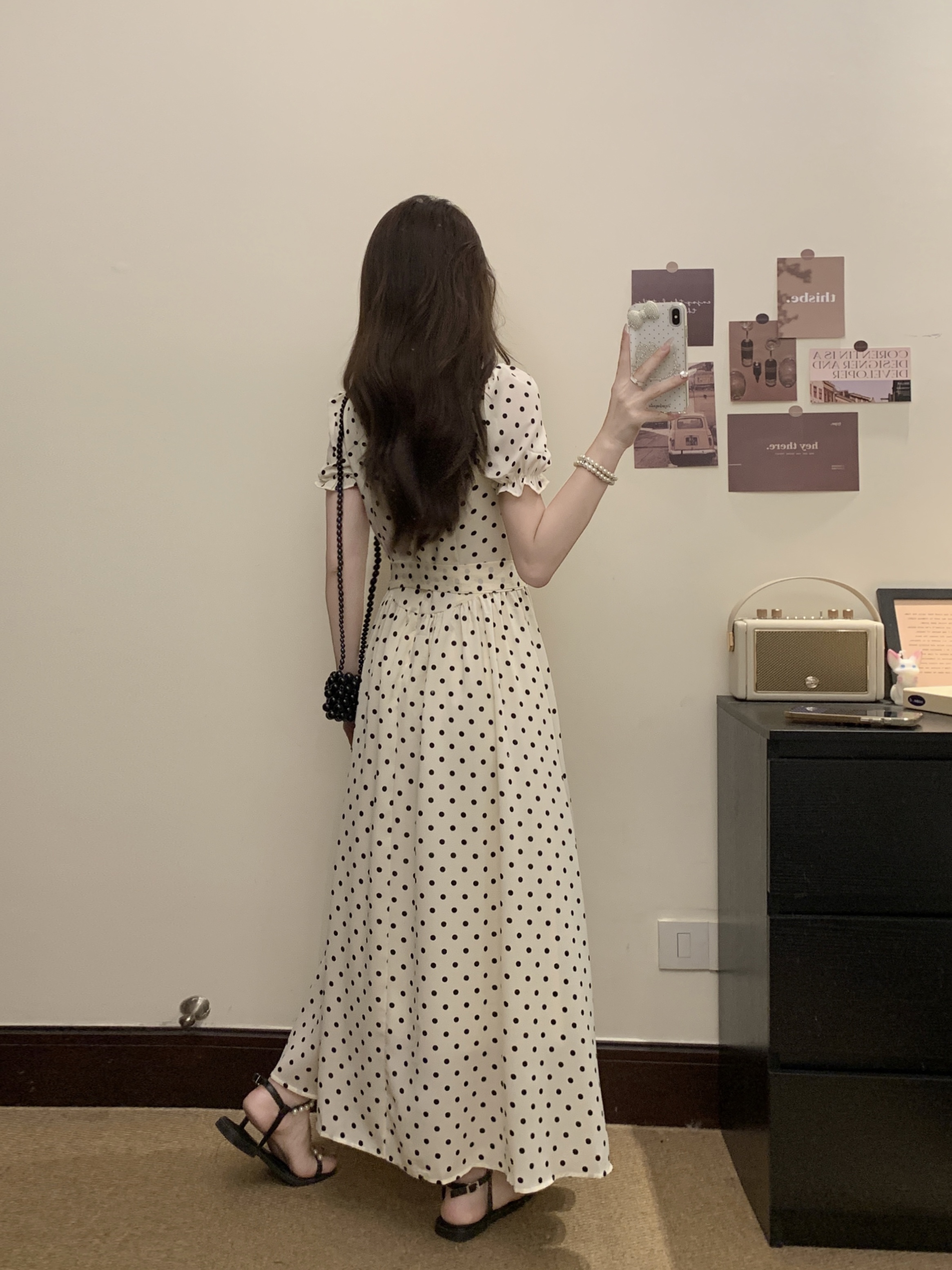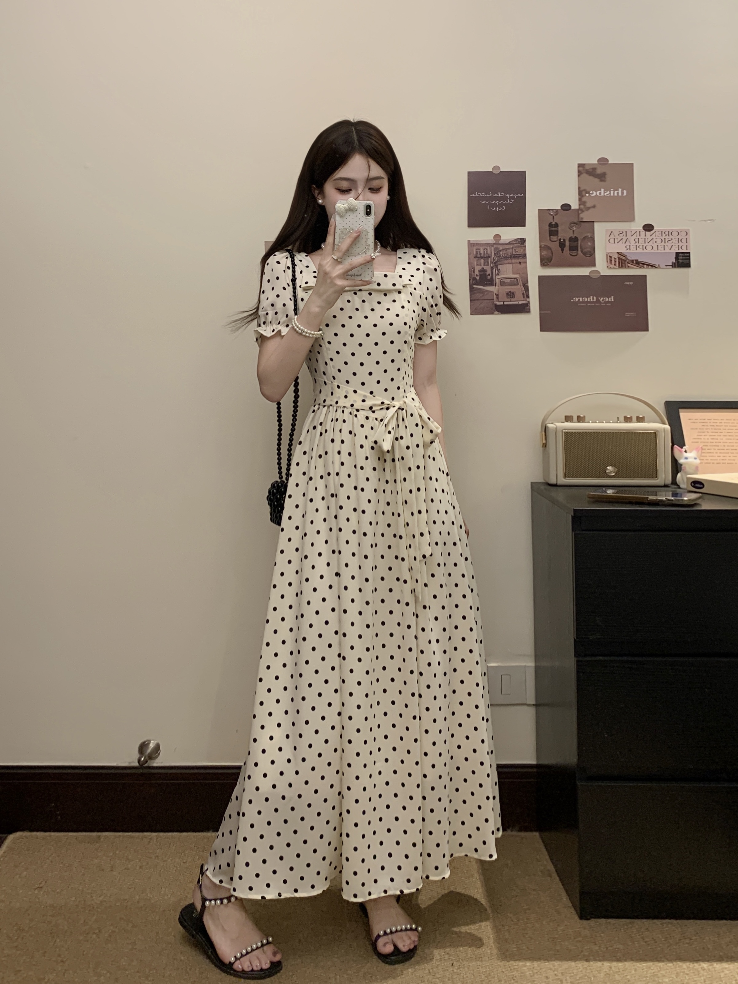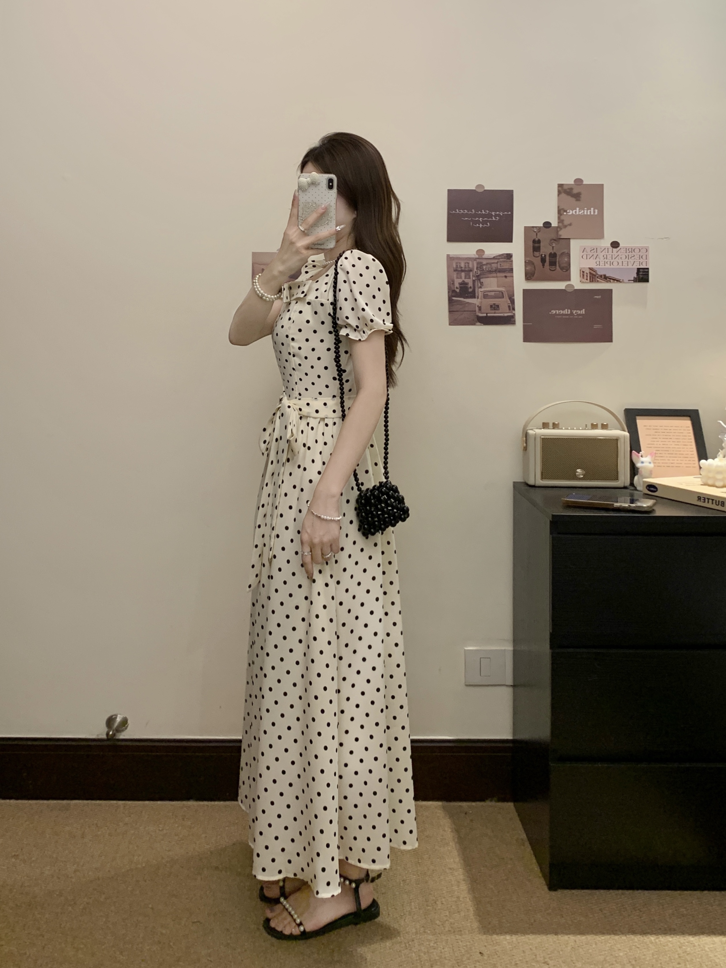 프랑스식 레트로 도트 무늬 거품 소매 여성 드레스 2026 새로운 부드러운 품격 서리가 내린 부서 고유 한 Chic 치마