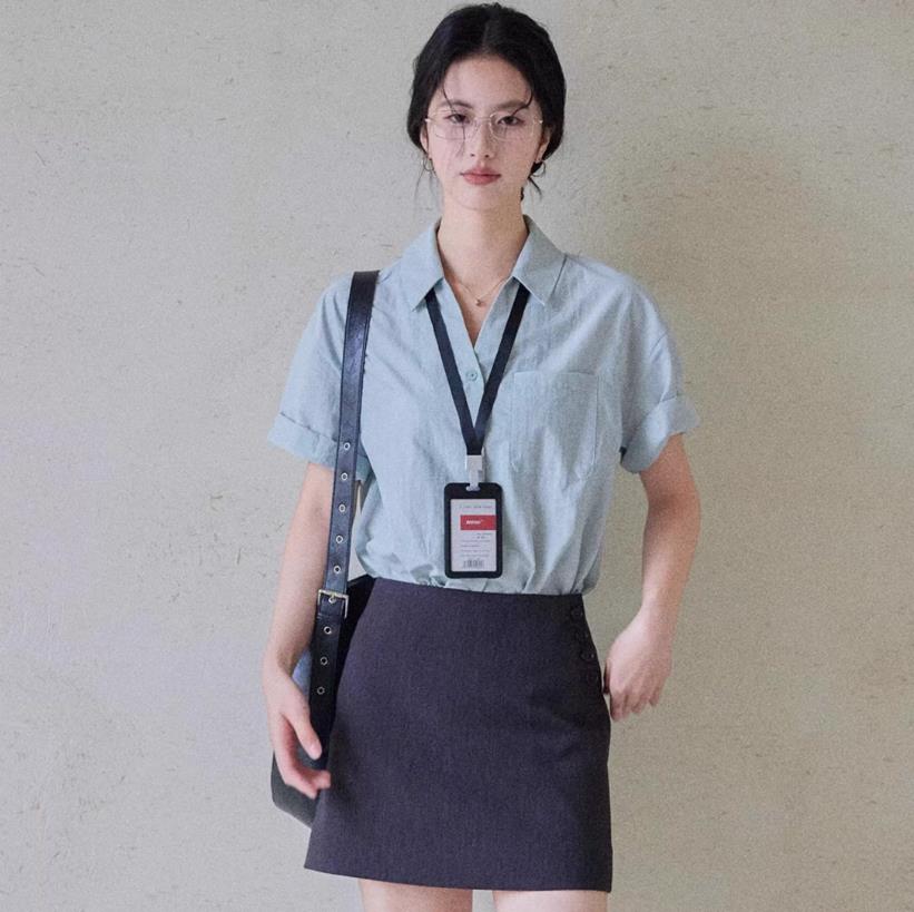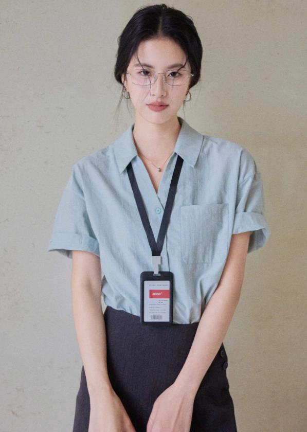 실사 톰 글 래 원인 블루 반팔 여성 셔츠 여름 고급 센스 품격 다용도 맨위 외국 가스 안감 경기 넥타이