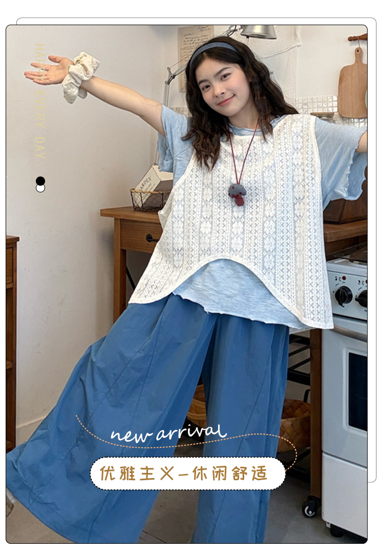 실사 2026 여름 섹션 임산부 루즈핏 민소매 조끼 인사이드 가져 가라. 와이드 레그 팬츠 3종 세트