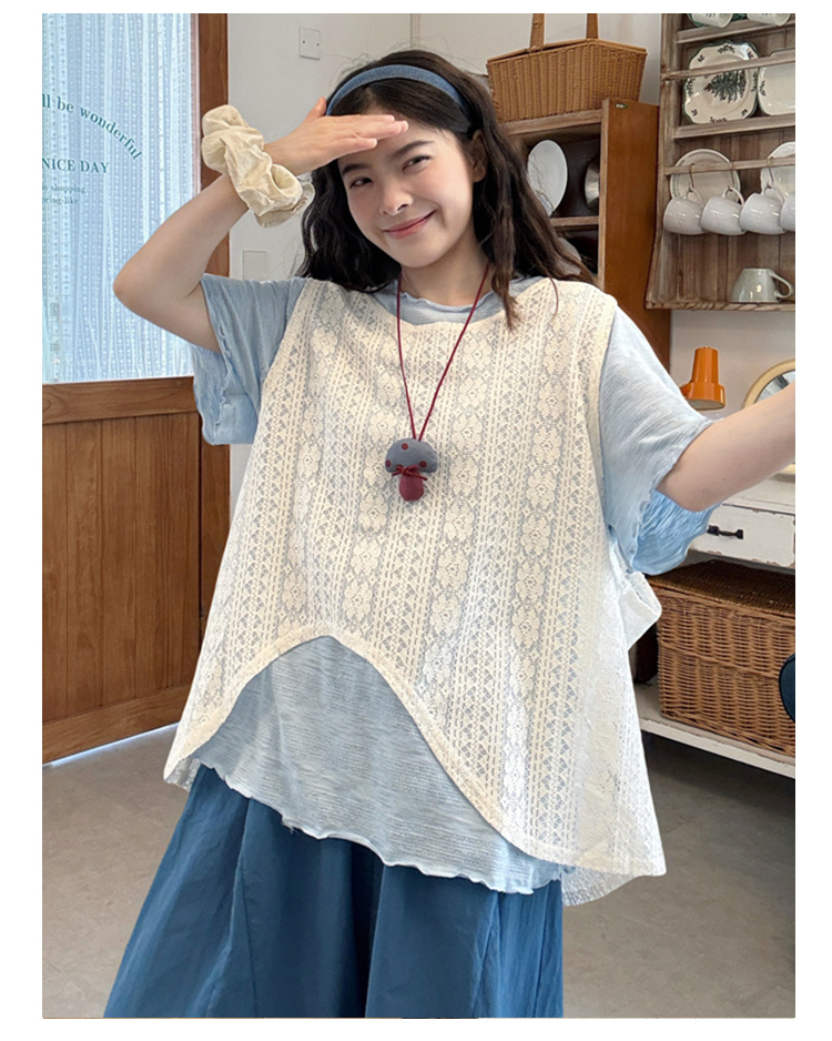 한 부서 오래된 돈 마 색상 레트로 홀로우 아웃 민소매 조끼 여성 2026 새로운 여름 레이스 몸매 가꾸기 슬림해 보이는 통기성 맨위