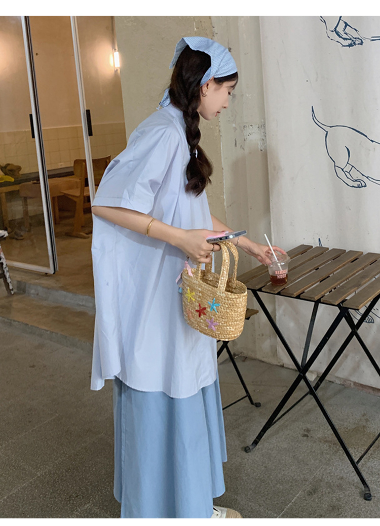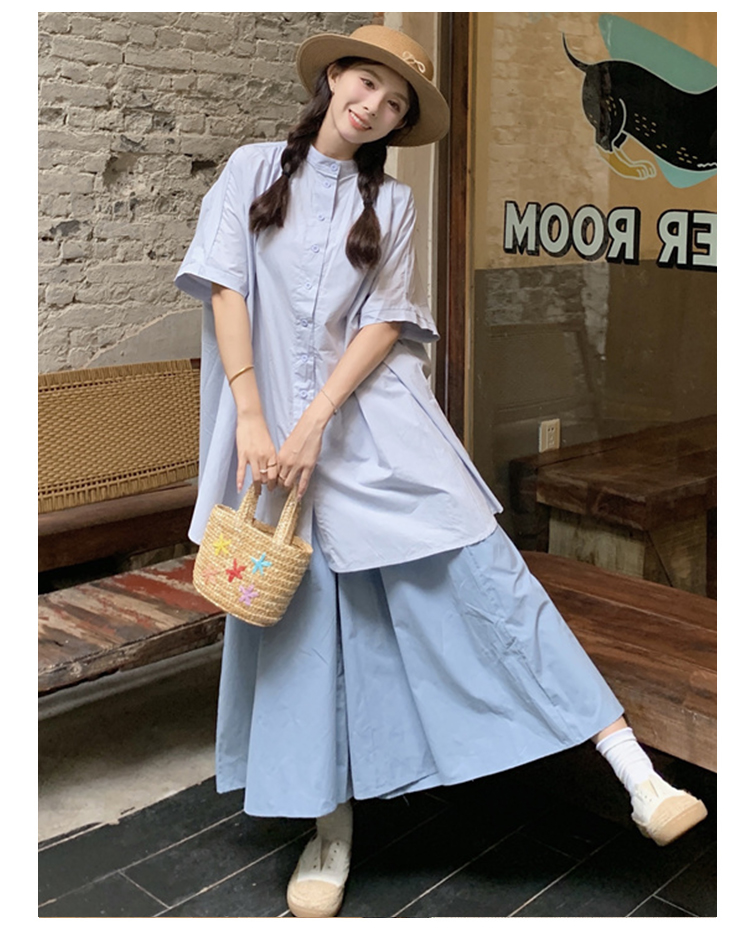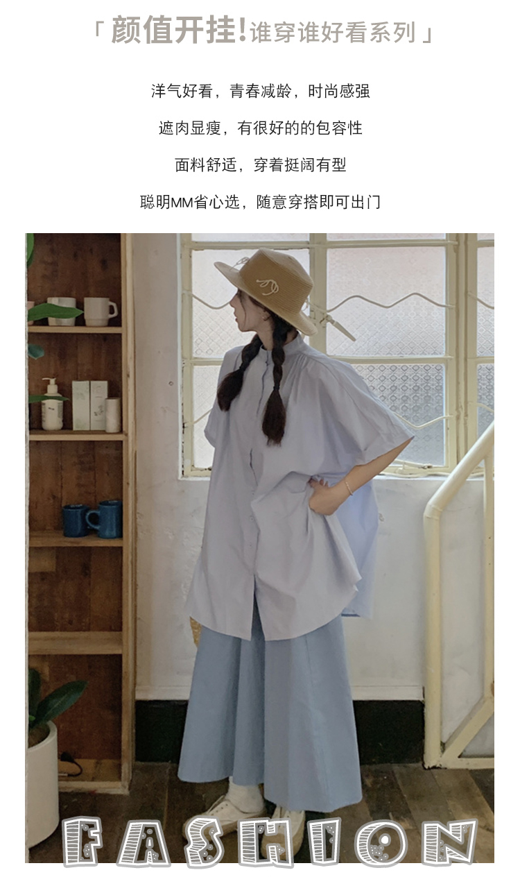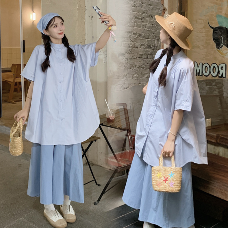 실사 2026 여름 섹션 임산부 미니멀리즘 중간 길이 스탠드 칼라 반팔 셔츠