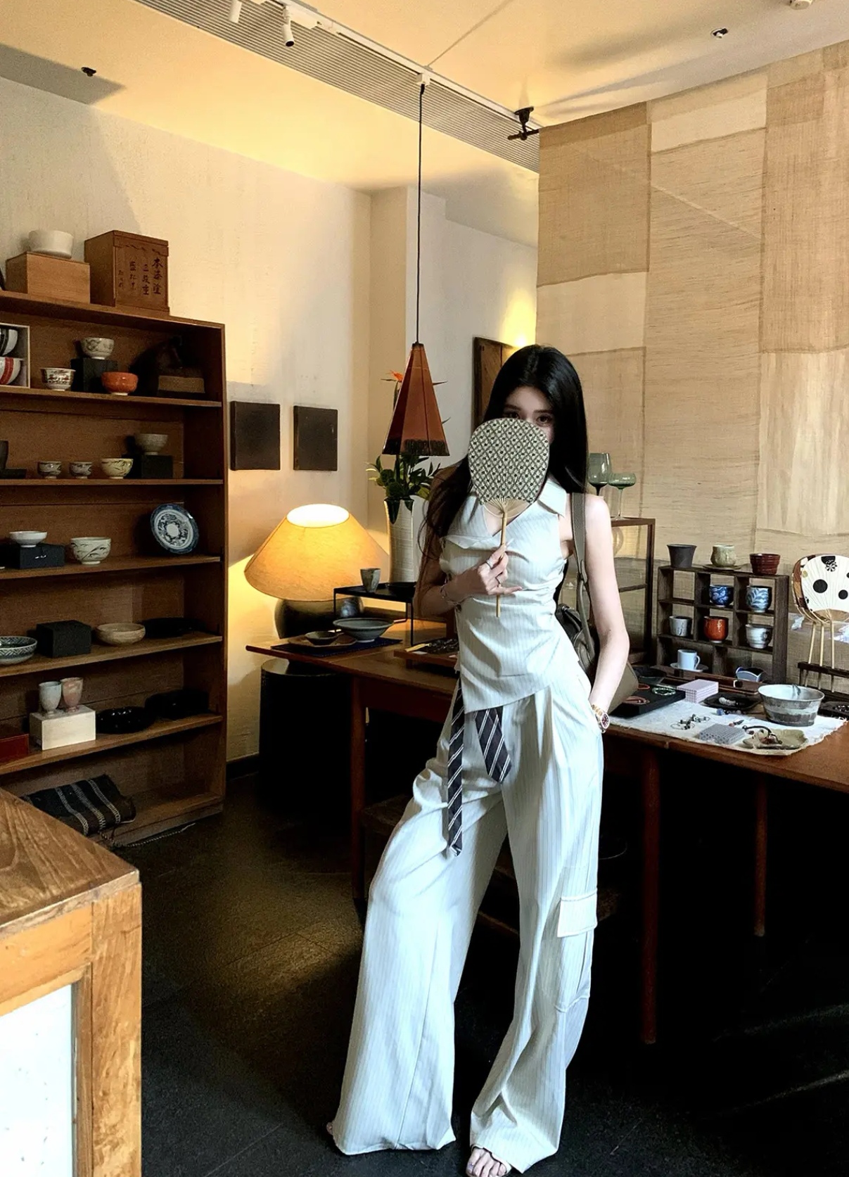 고유 한 아름다운 자이언트 잘 생긴 한 부서 착용 가져 가라. 전체 집합 ootd 슈퍼 화재 와이드 팬츠 세트 여성 여름 2026 새로운