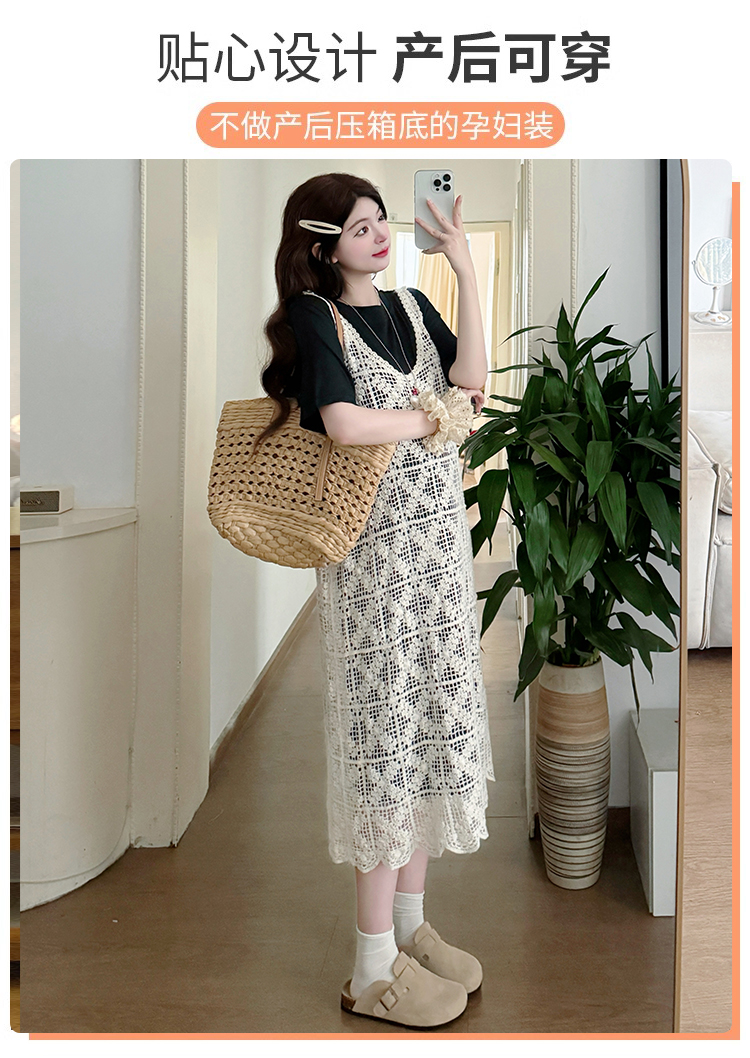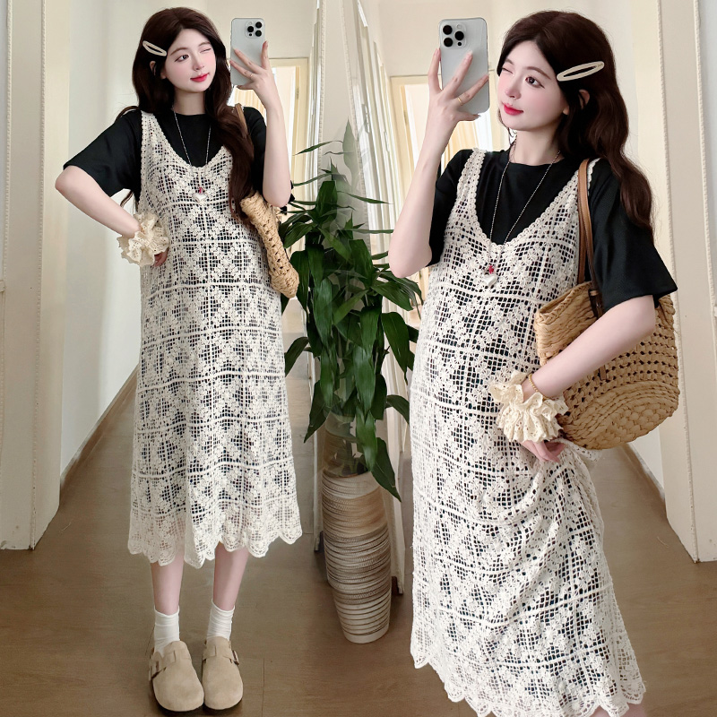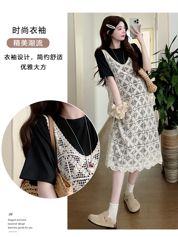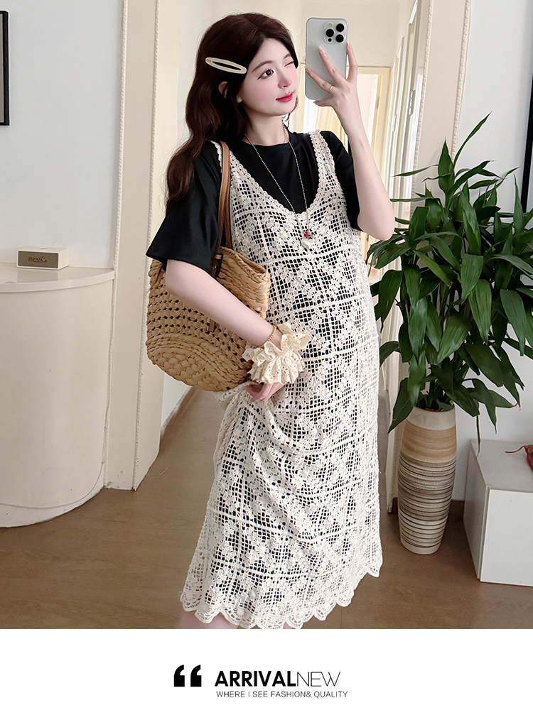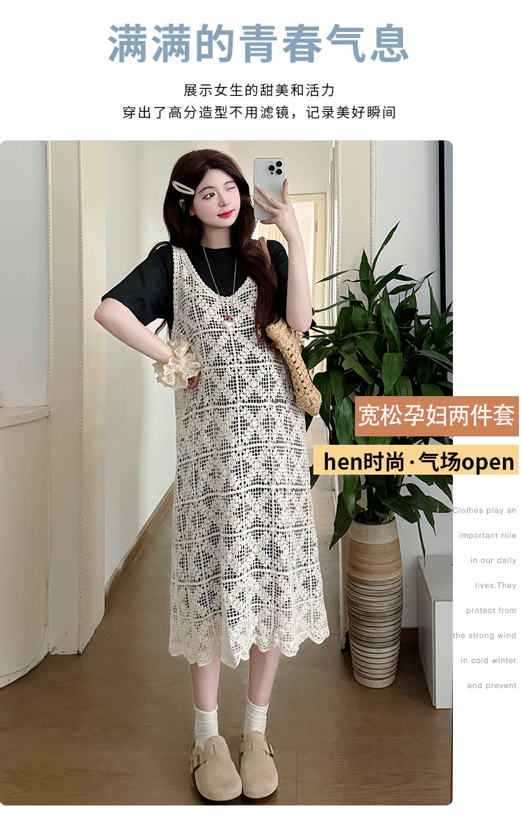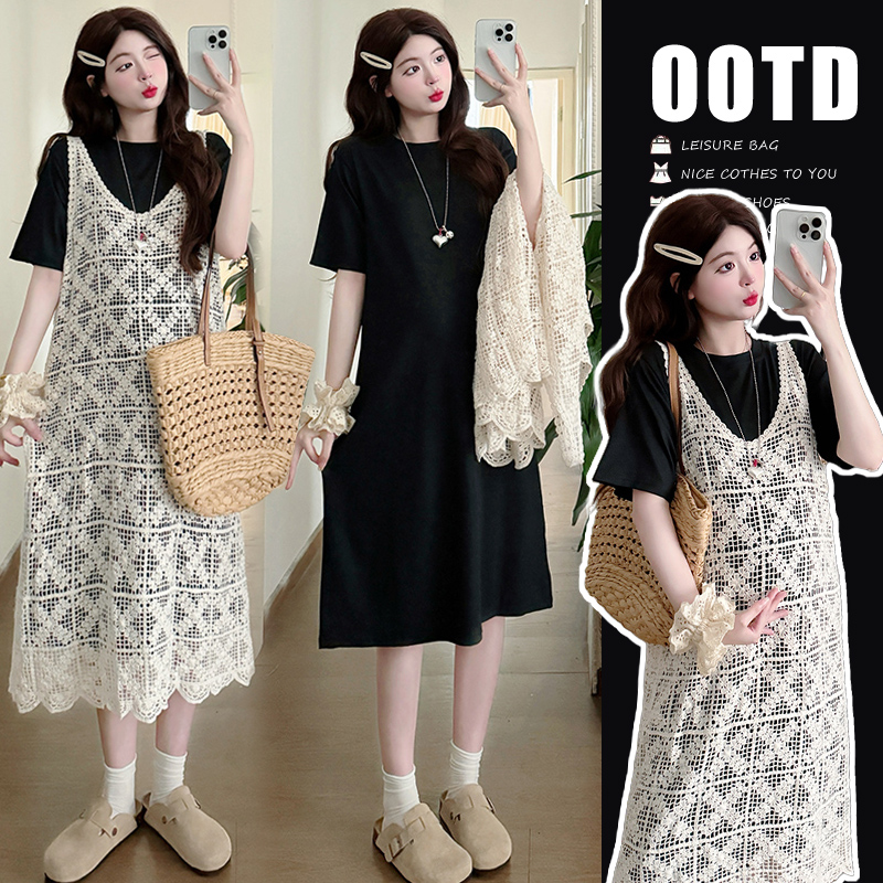2026 새로운 여름 루즈핏 빅 사이즈 임산부 세트 자수 루즈핏 조끼 스커트 외부 가져 가라. 롱 코트 반팔 티셔츠 치마