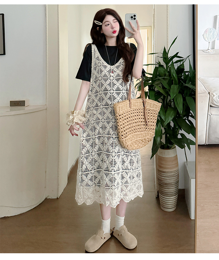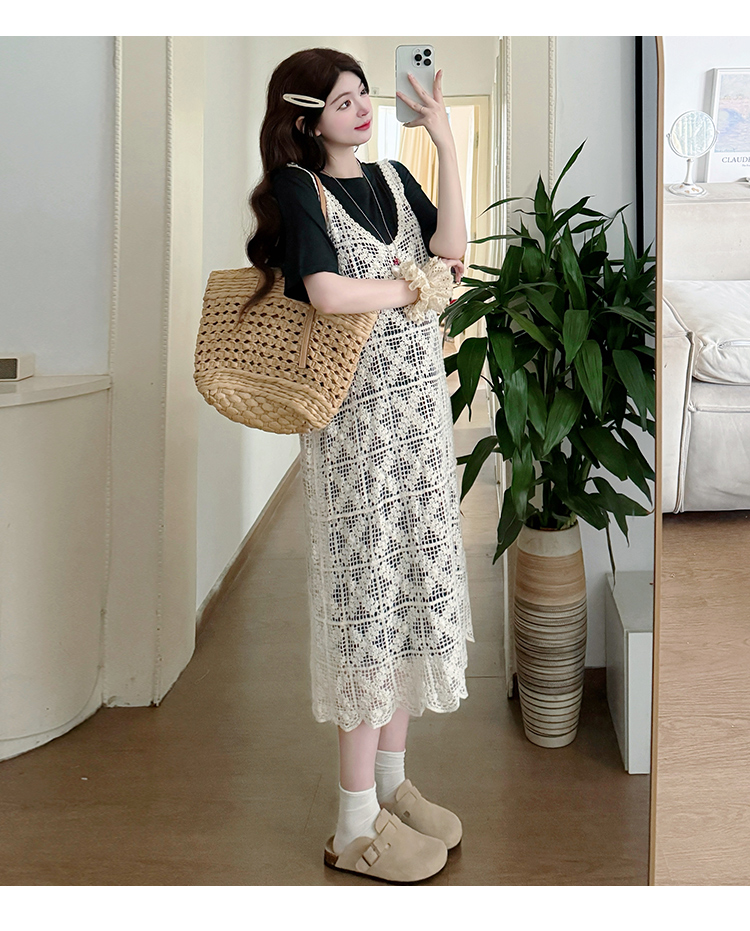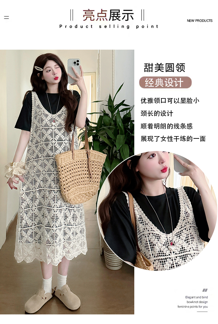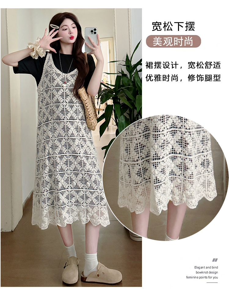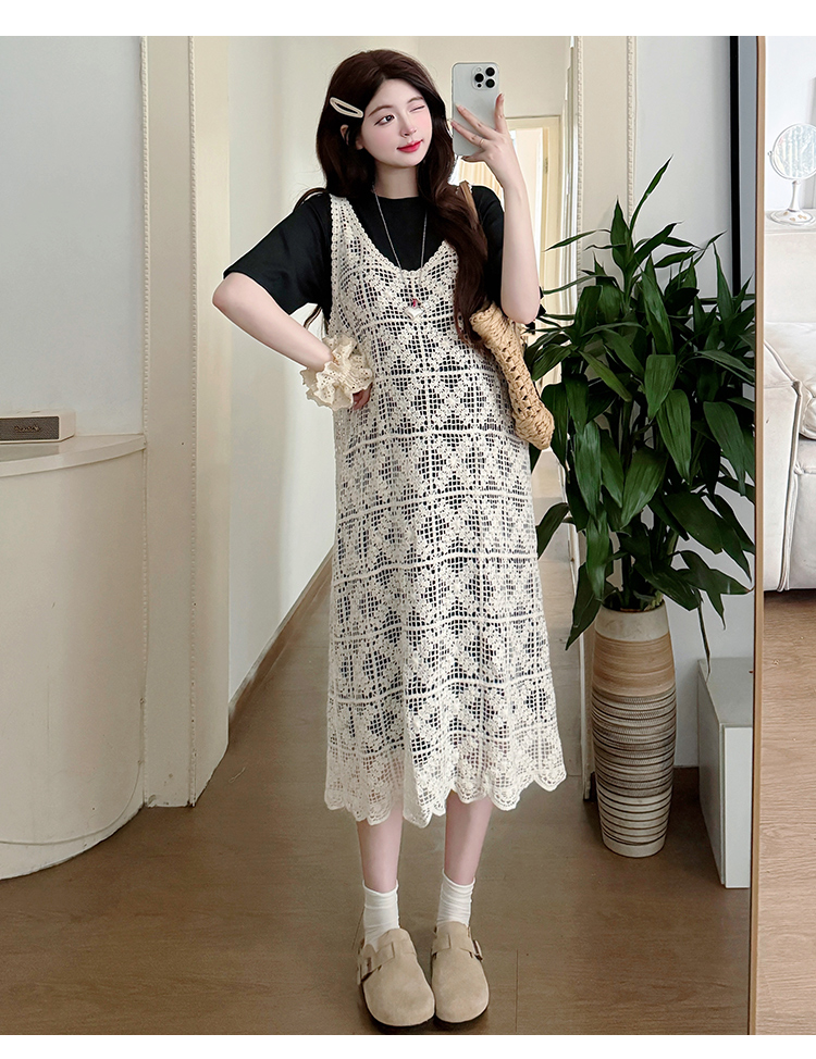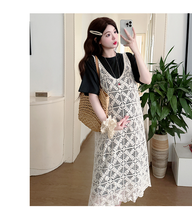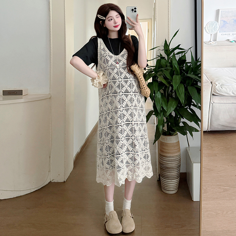 2026 새로운 여름 루즈핏 빅 사이즈 임산부 세트 자수 루즈핏 조끼 스커트 외부 가져 가라. 롱 코트 반팔 티셔츠 치마