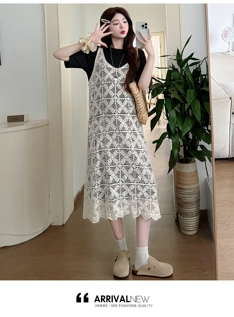 2026 여름 패션 루즈핏 출산 착용 연령 감소 캐주얼 멜빵 스커트 티셔츠 패션 드레스 투피스 세트