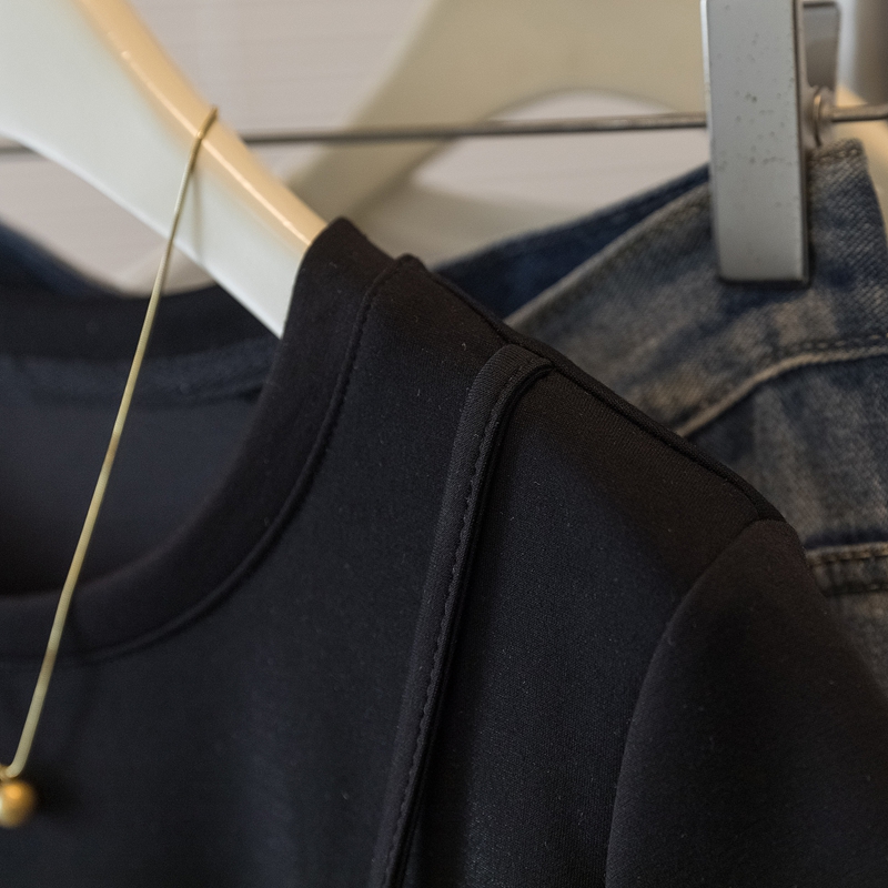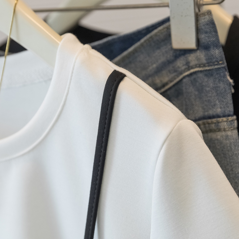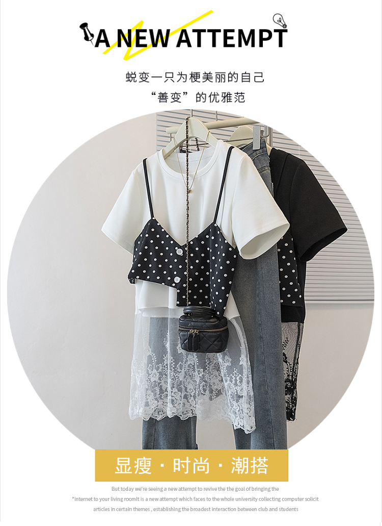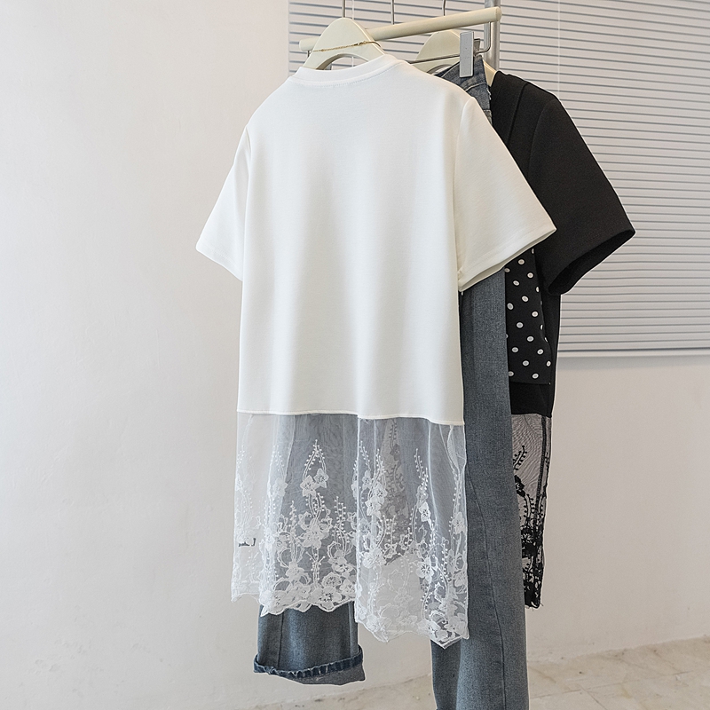 실사 빅 사이즈 여성 의류 한국 스타일 새로운 디자인 작은 대중 레이스 조각 슬림해 보이는 캐주얼 루즈핏 다용도 맨위