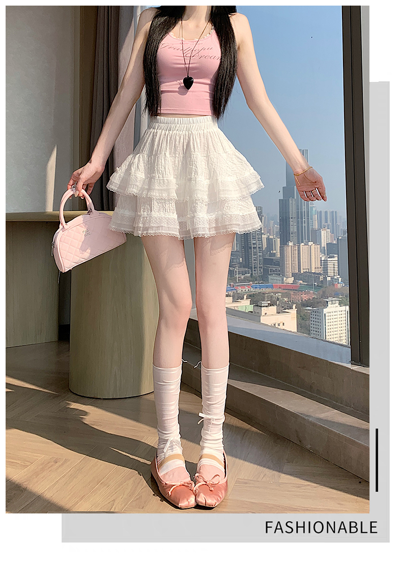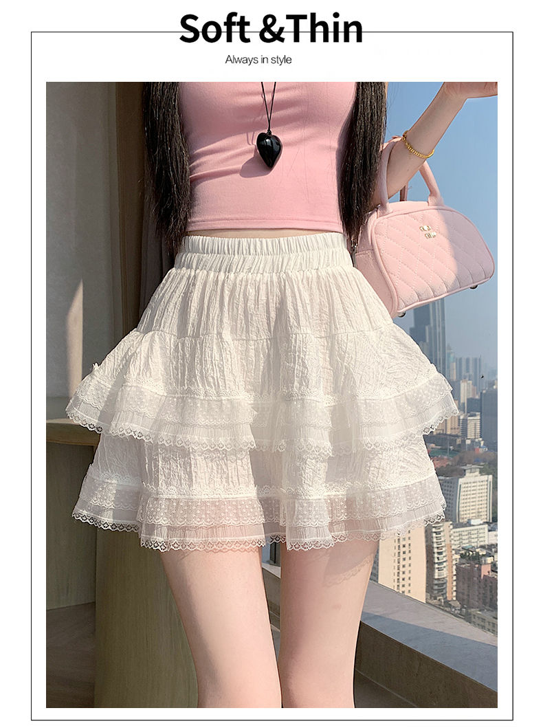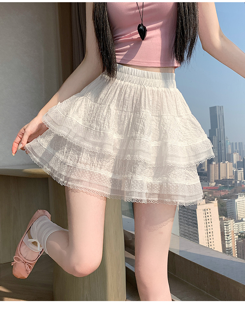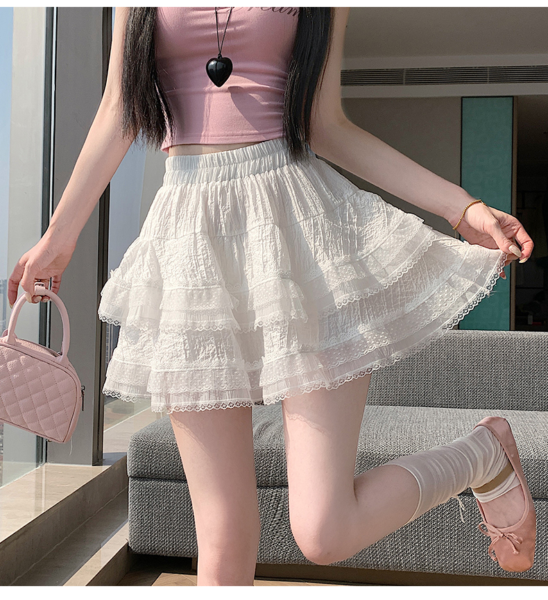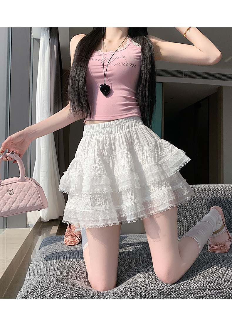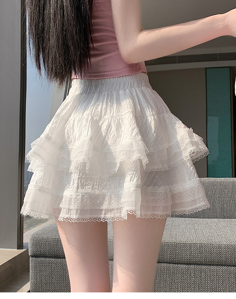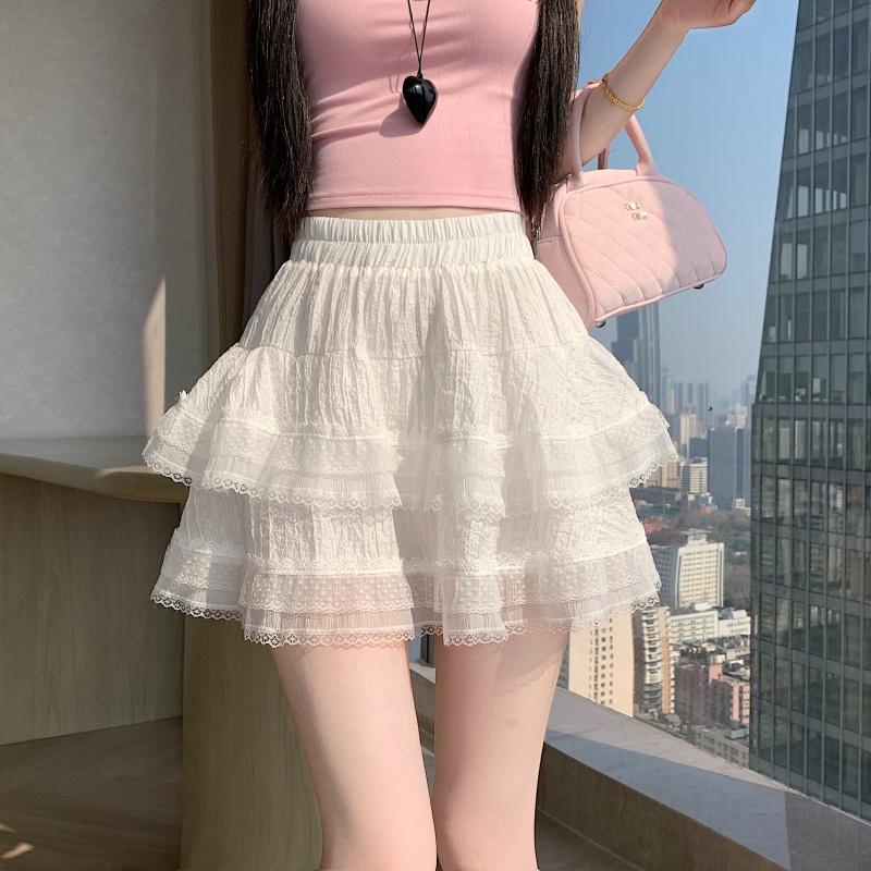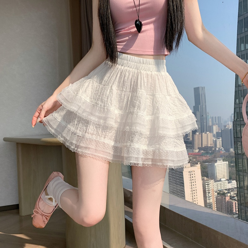 실사 봄 여름 화이트 프랑스식 발레 바람 레이스 레이스 퍼프 케이크 반신 스커트 하이웨이스트 슬림해 보이는 한 마디 미니 스커트