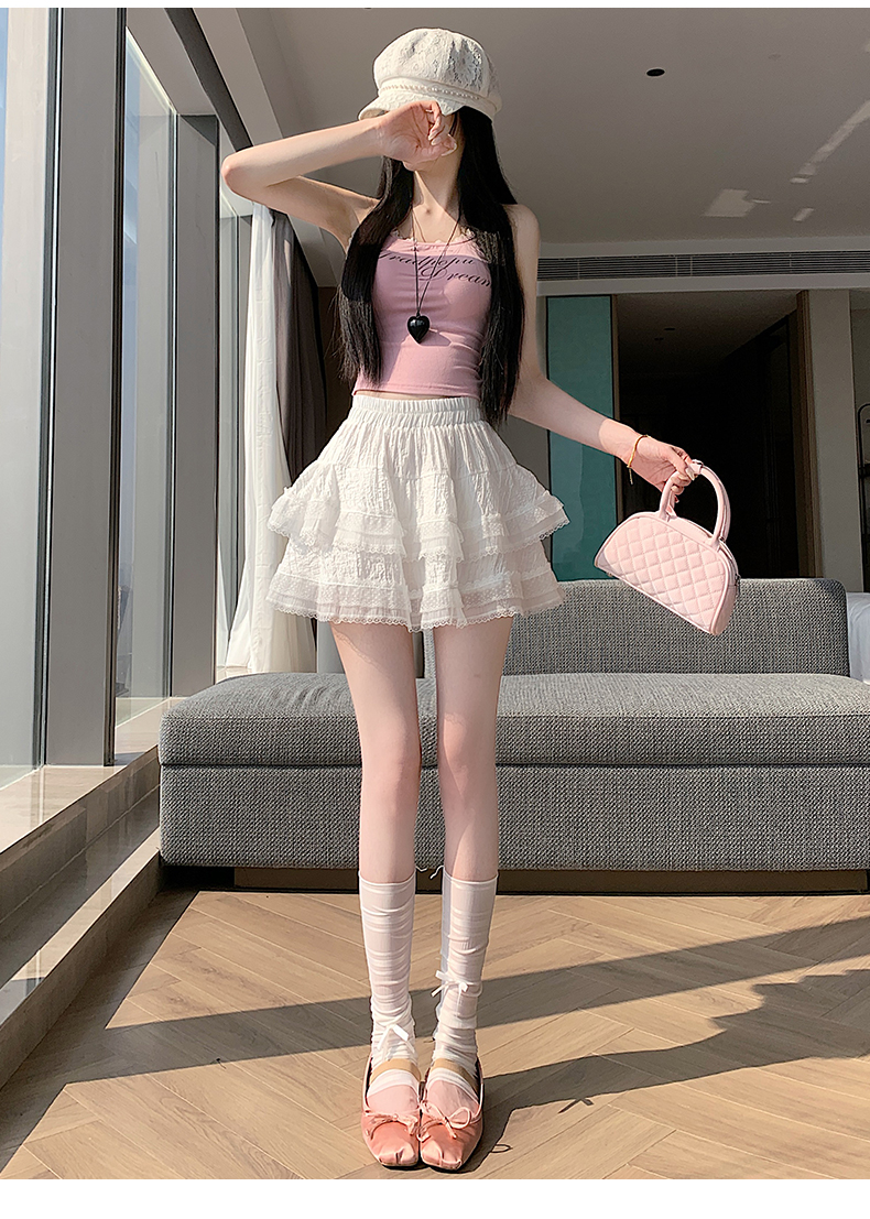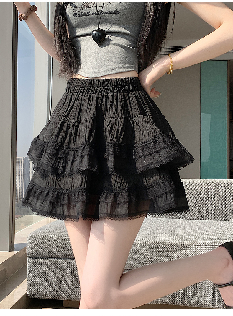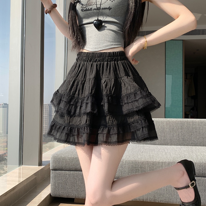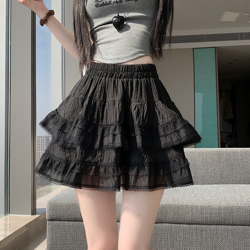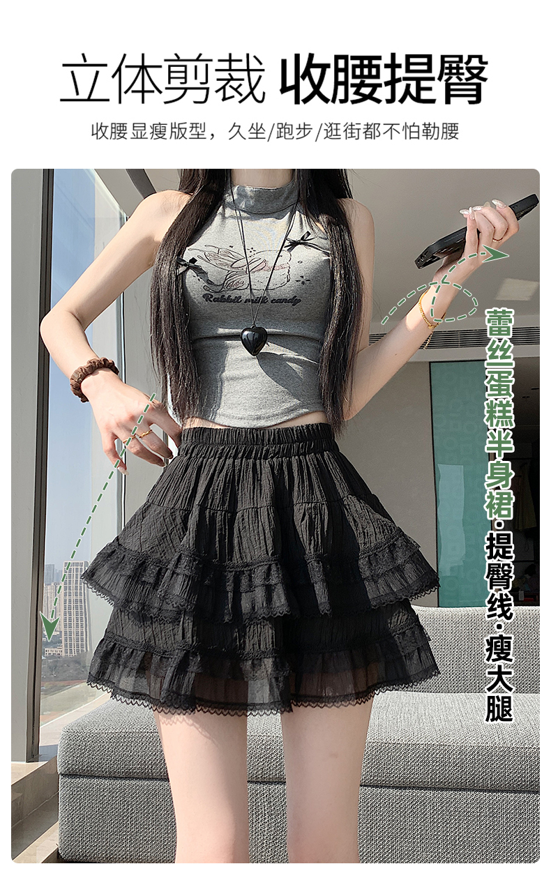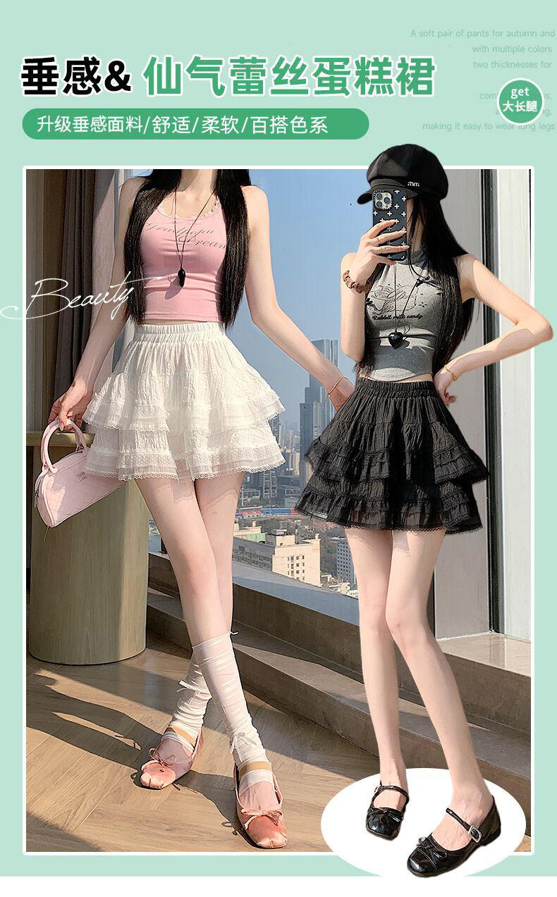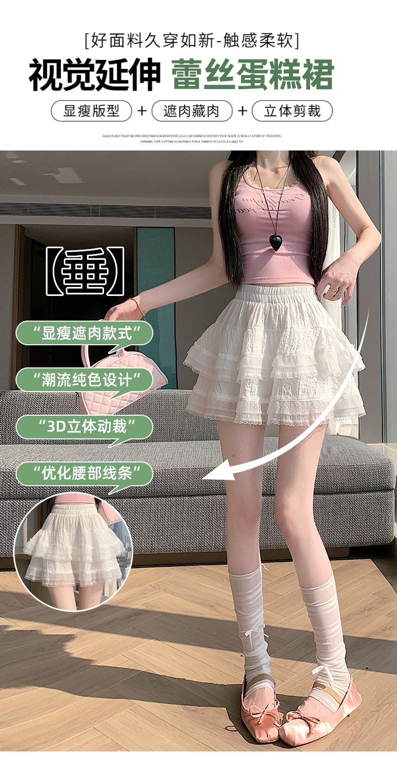 실사 봄 여름 화이트 프랑스식 발레 바람 레이스 레이스 퍼프 케이크 반신 스커트 하이웨이스트 슬림해 보이는 한 마디 미니 스커트