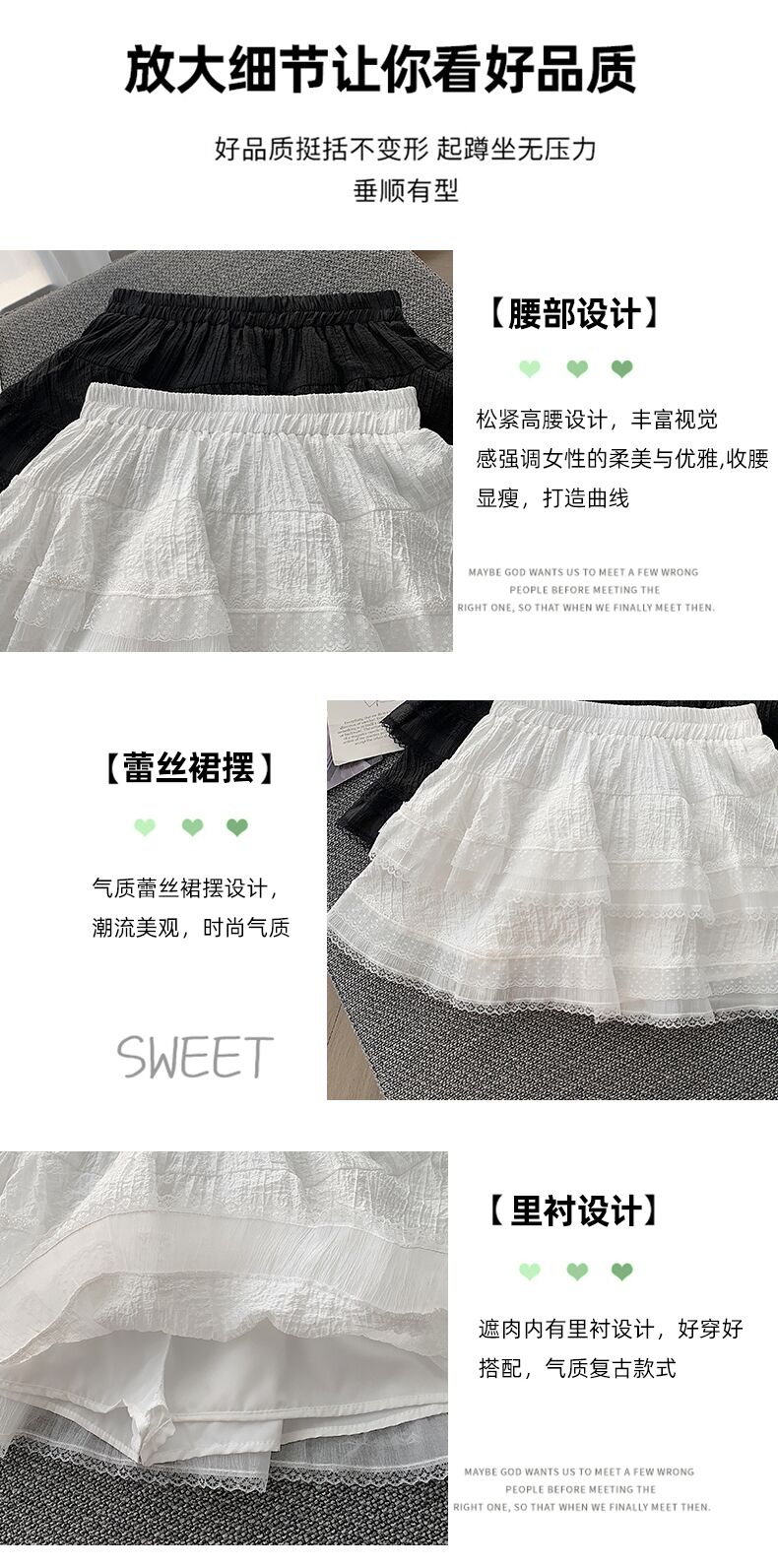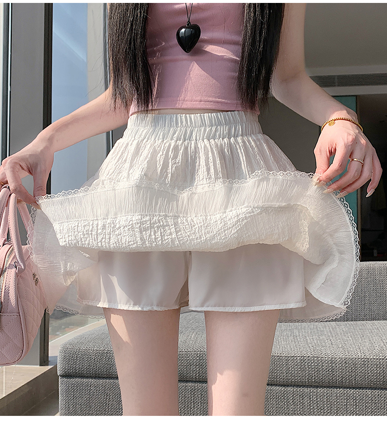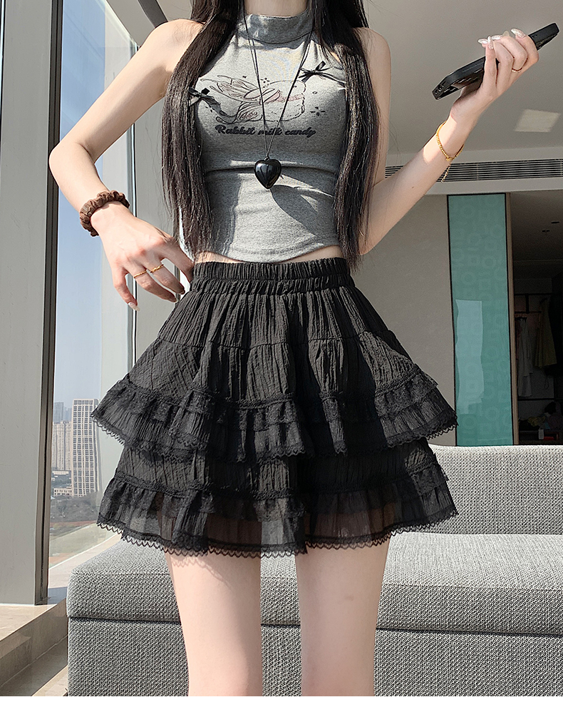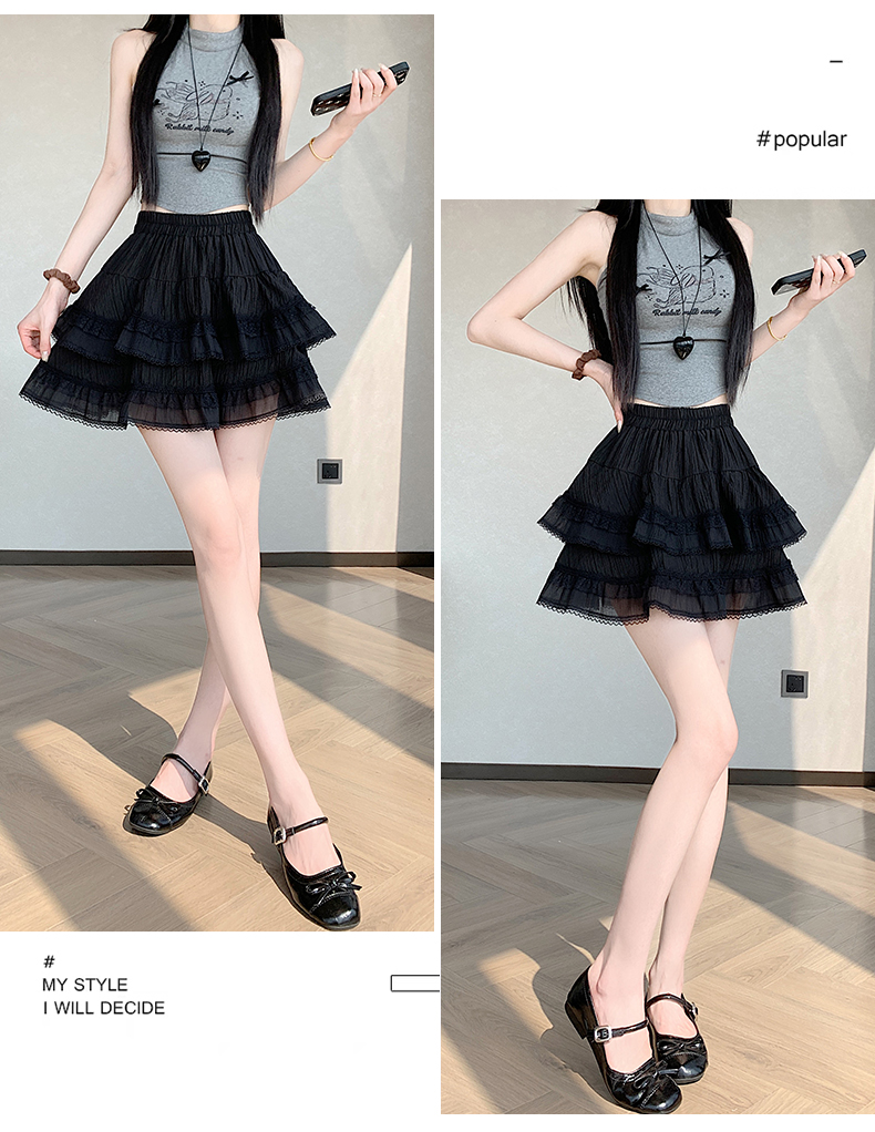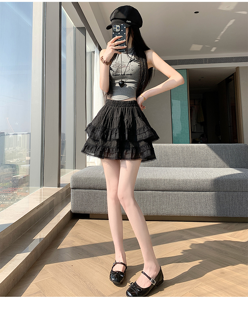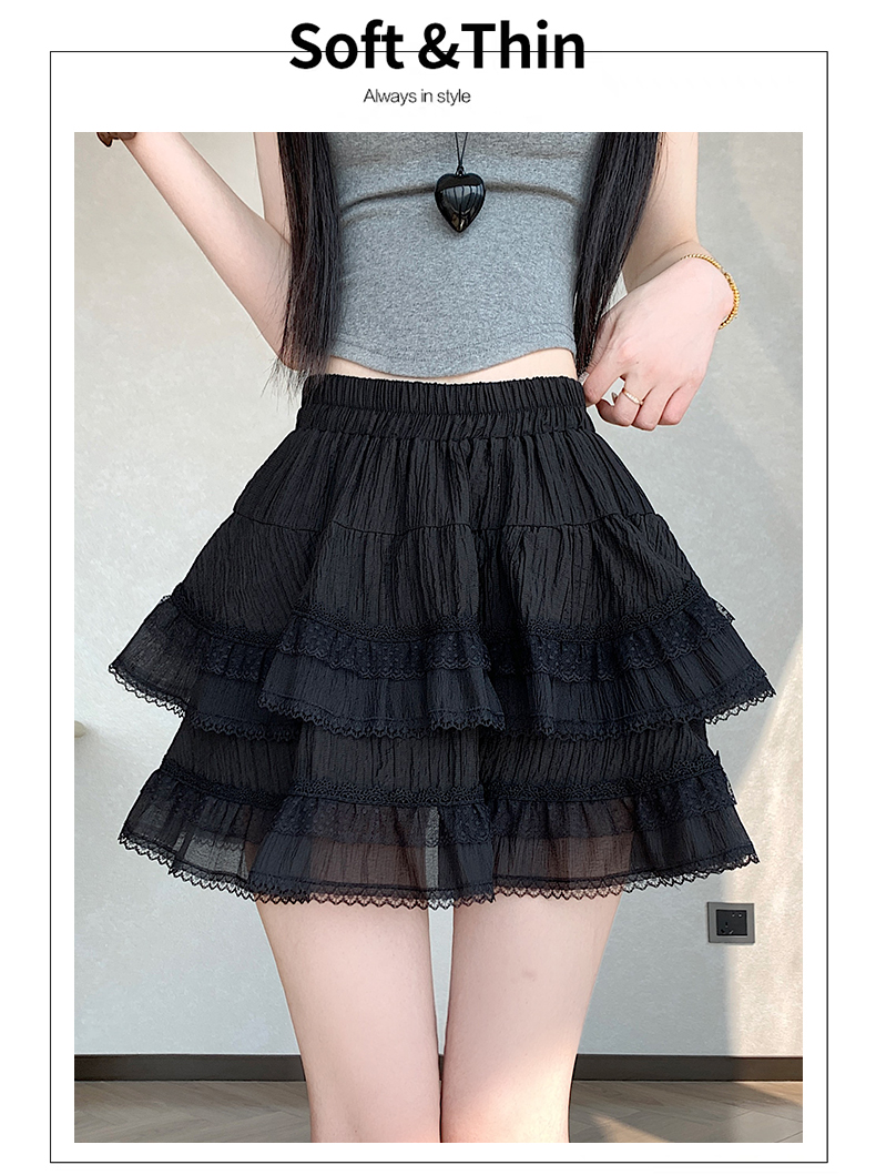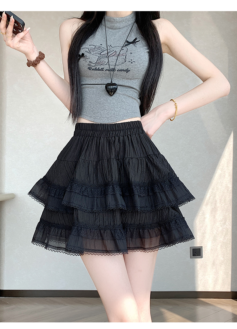 실사 봄 여름 화이트 프랑스식 발레 바람 레이스 레이스 퍼프 케이크 반신 스커트 하이웨이스트 슬림해 보이는 한 마디 미니 스커트