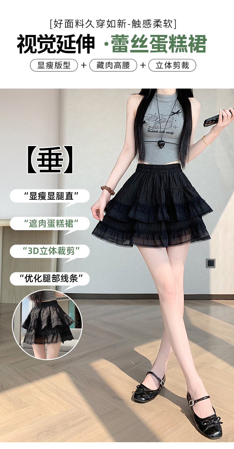 실사 프랑스식 달콤한 스타일 도트 무늬 레이스 레이스 반신 스커트 여성 하이웨이스트 슬림해 보이는 케이크 드레스 한 마디 퍼프 중간 스커트