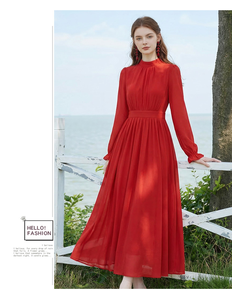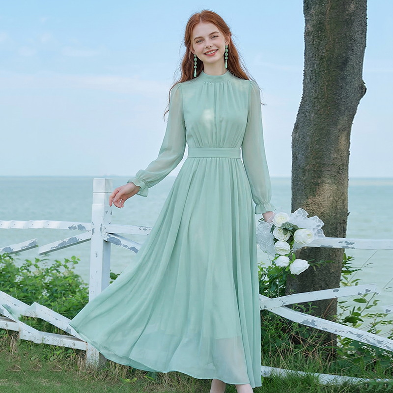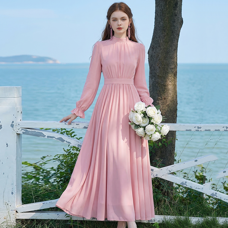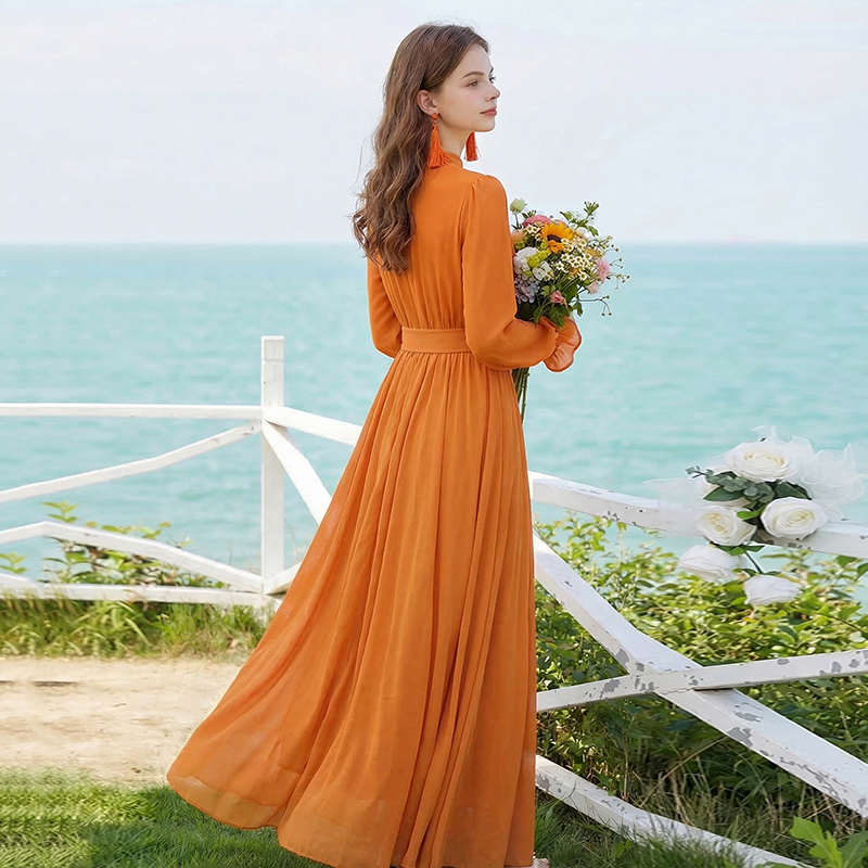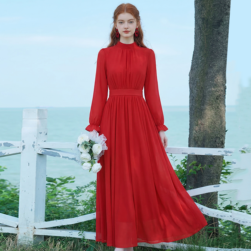 롱 코트 쉬폰 여성 드레스 2026 가을 새로운 프랑스식 여행 휴가 사진 찍기 우아한 슈퍼 요정 롱 스커트