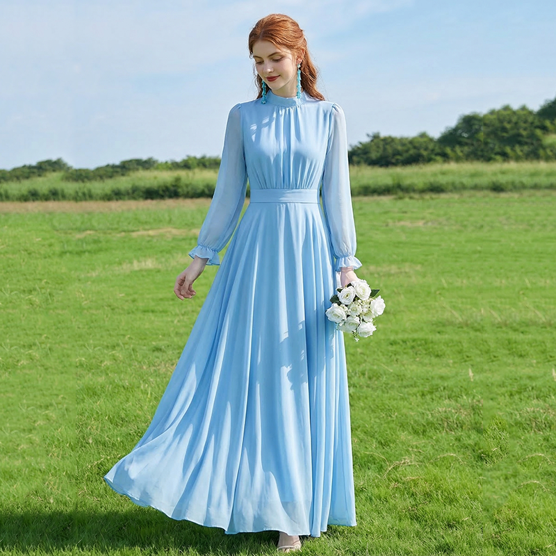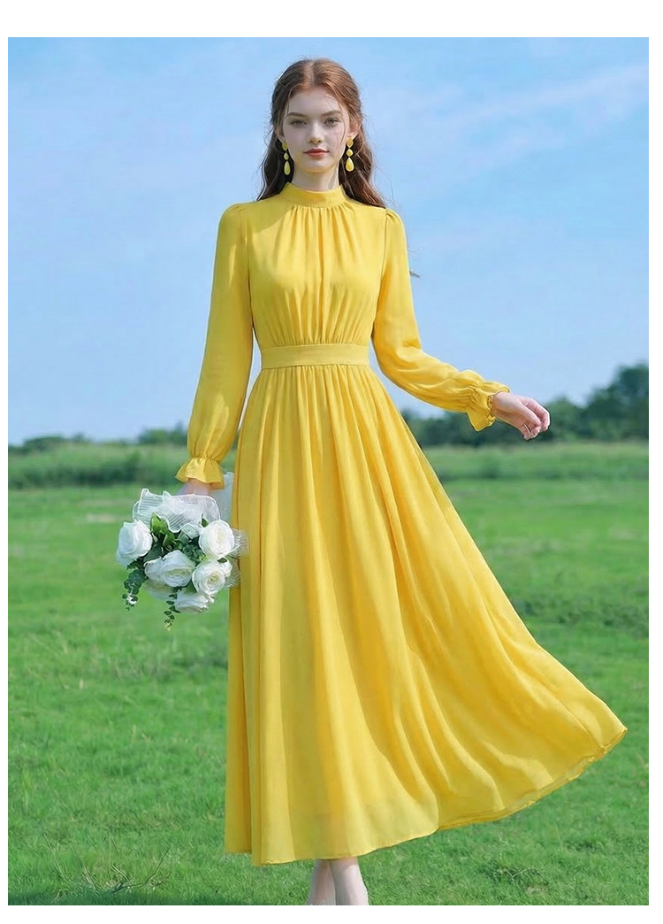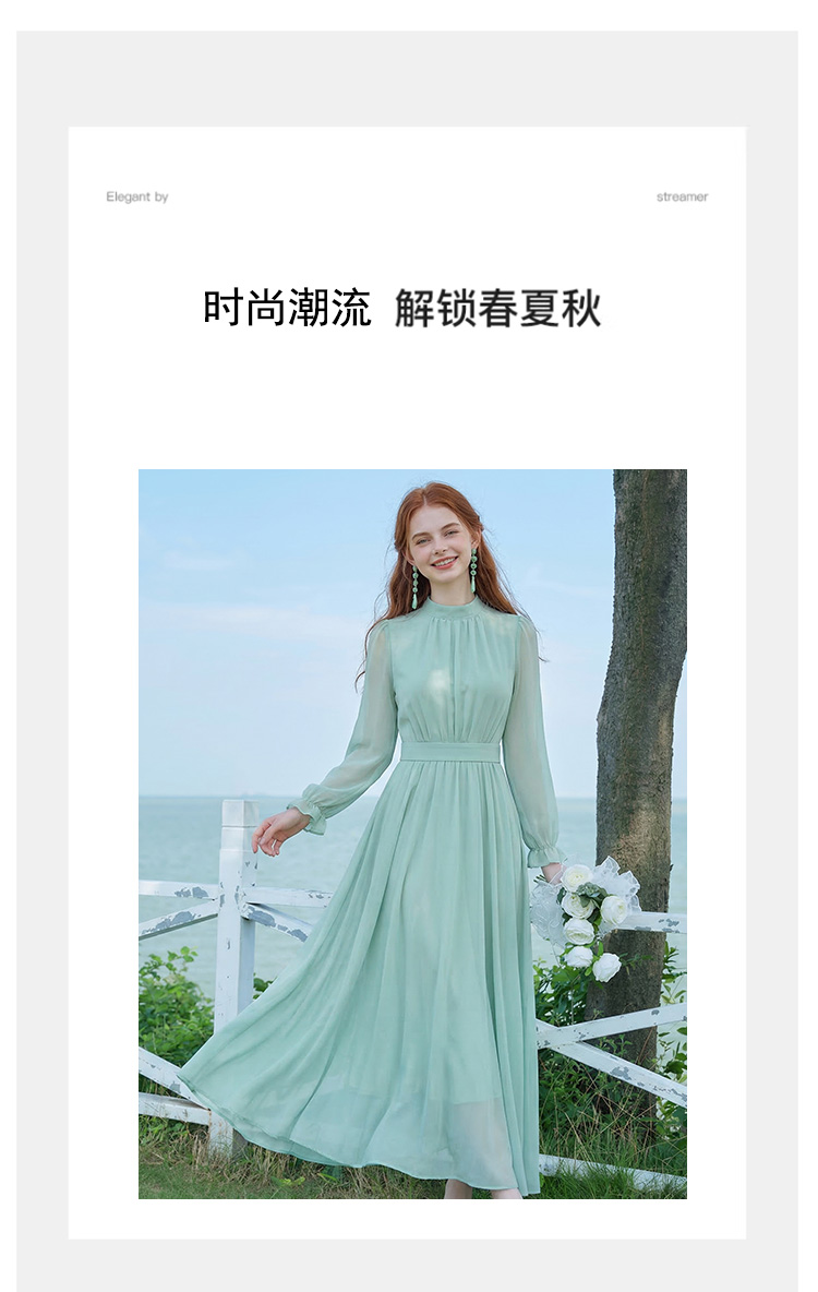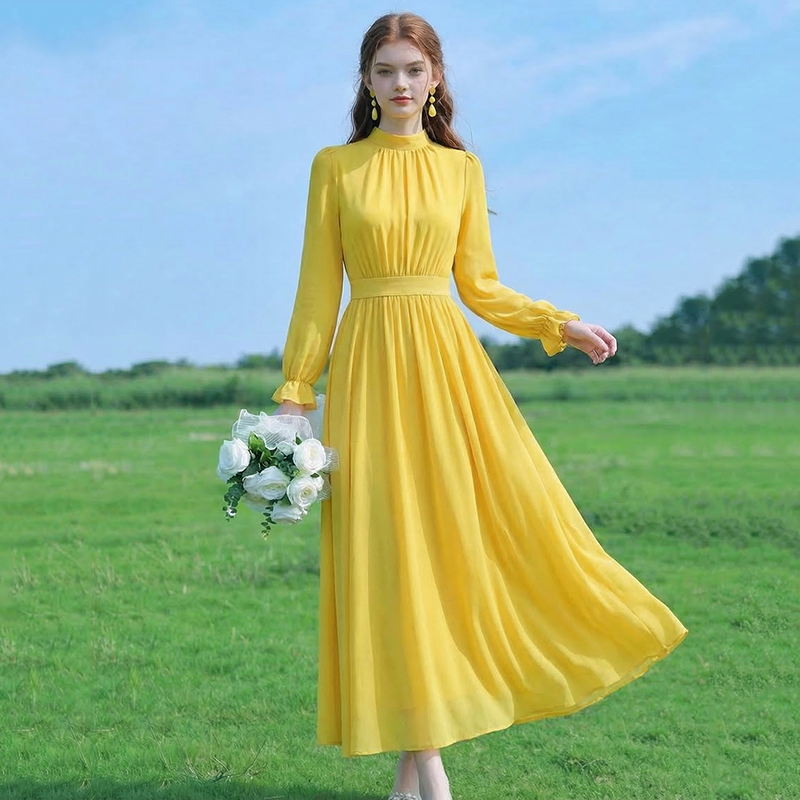 롱 코트 쉬폰 여성 드레스 2026 가을 새로운 프랑스식 여행 휴가 사진 찍기 우아한 슈퍼 요정 롱 스커트