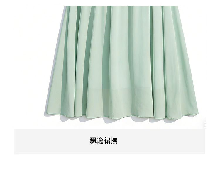 여름 새로운 품격 쉬폰 여성 드레스 표지 고기 슬림해 보이는 하이웨이스트 휴가 바람 해변 단색 V넥 길다 치마