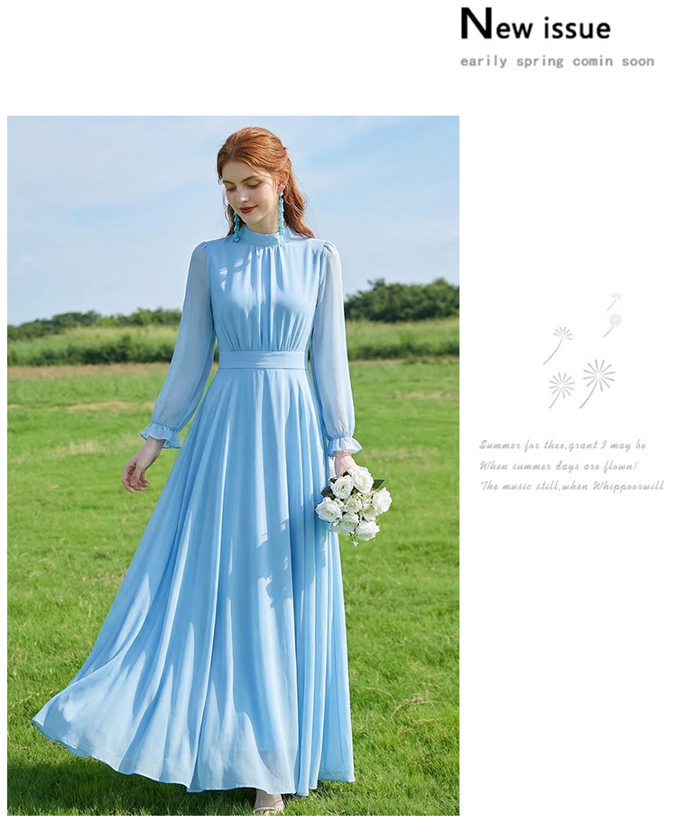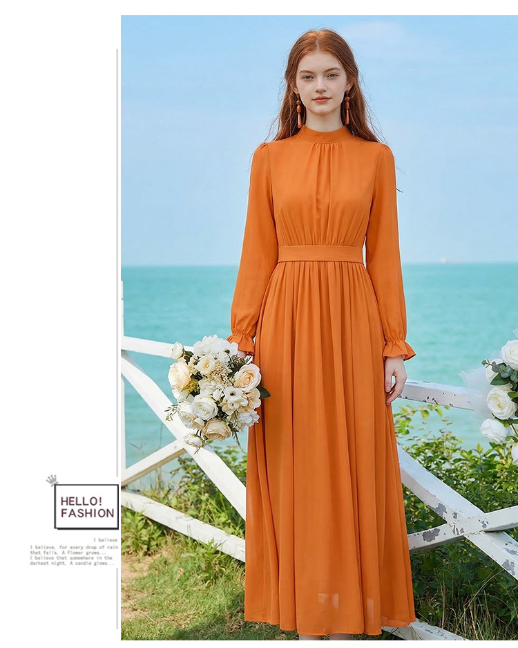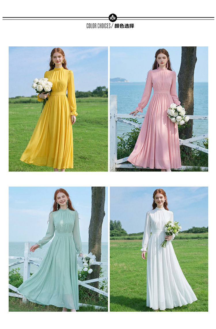기타 색상 긴팔 드레스 2026 봄 여름 새로운 해변가 휴가 해변 드레스 허리 수축 슬림해 보이는 그리고 발 알몸의 길다 치마