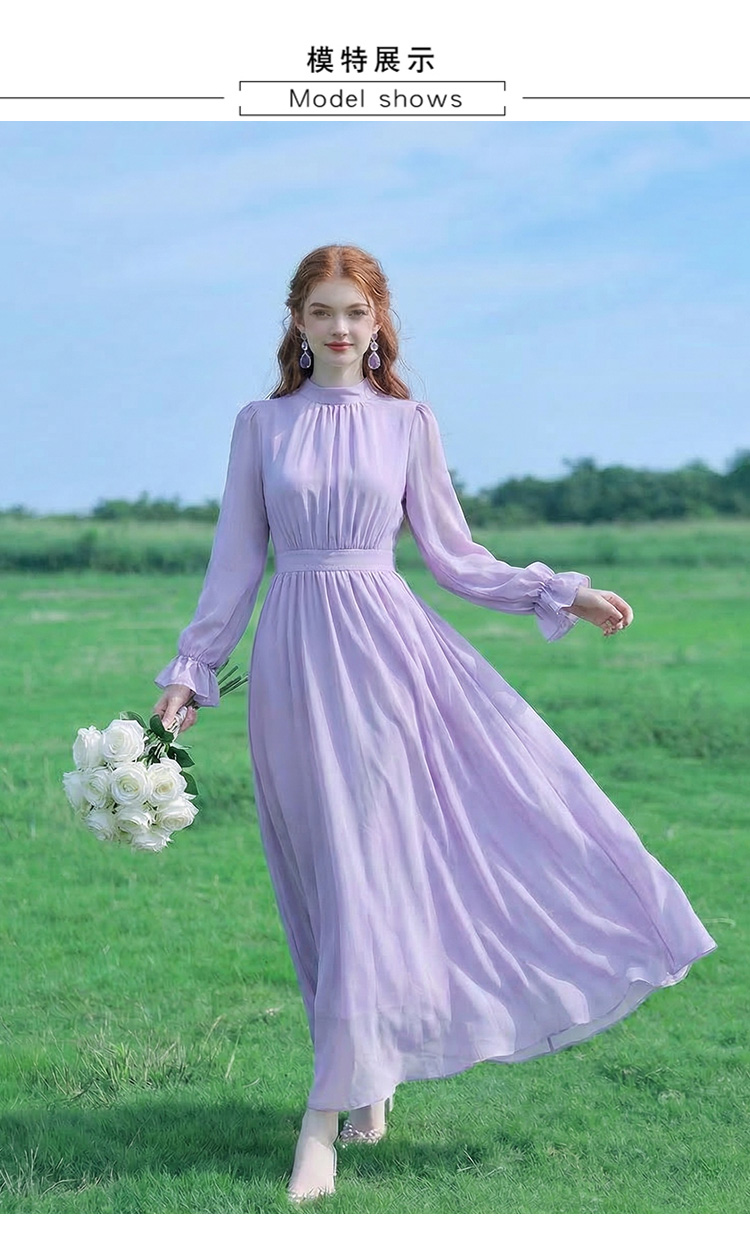 2026 새로운 프랑스식 우아함 보라색 여성 드레스 허리 수축 슬림해 보이는 품격 몸매 가꾸기 고급 센스 롱 스커트