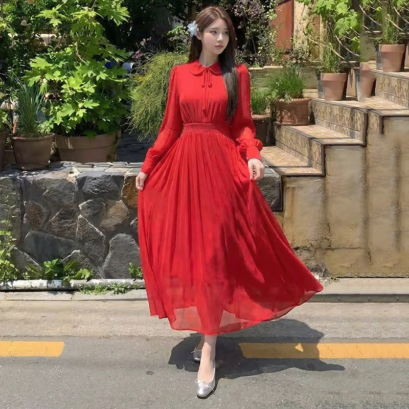 롱 코트 쉬폰 여성 드레스 2026 가을 새로운 프랑스식 여행 휴가 사진 찍기 우아한 슈퍼 요정 롱 스커트