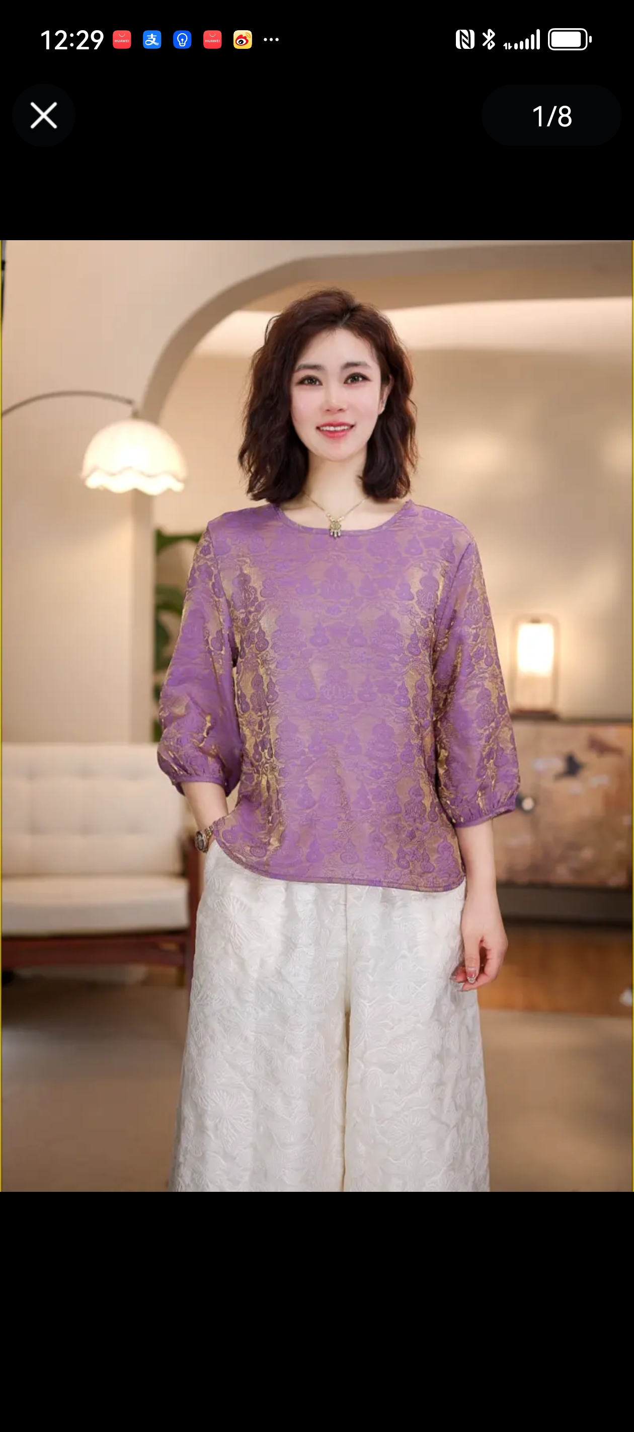 새로운 중식 바람 스탠드 칼라 7부 소매 파란색 구름 곡물 맨위 여성 고급 센스 작은 대중 Chic 루즈핏 품격 셔츠