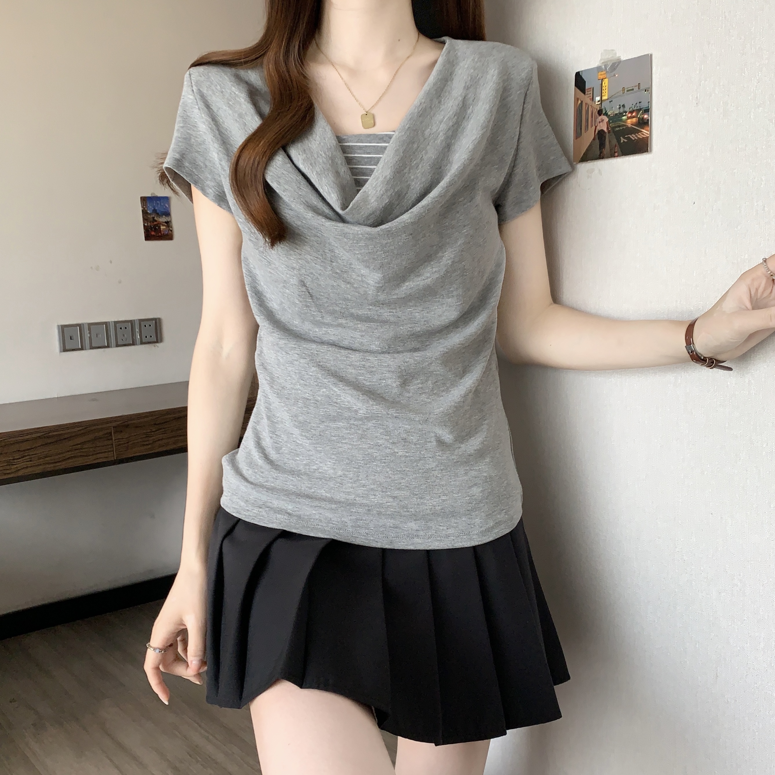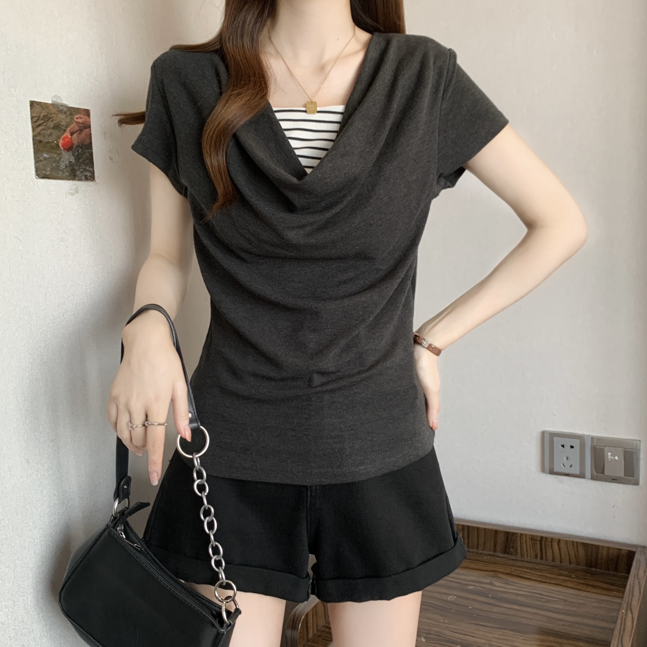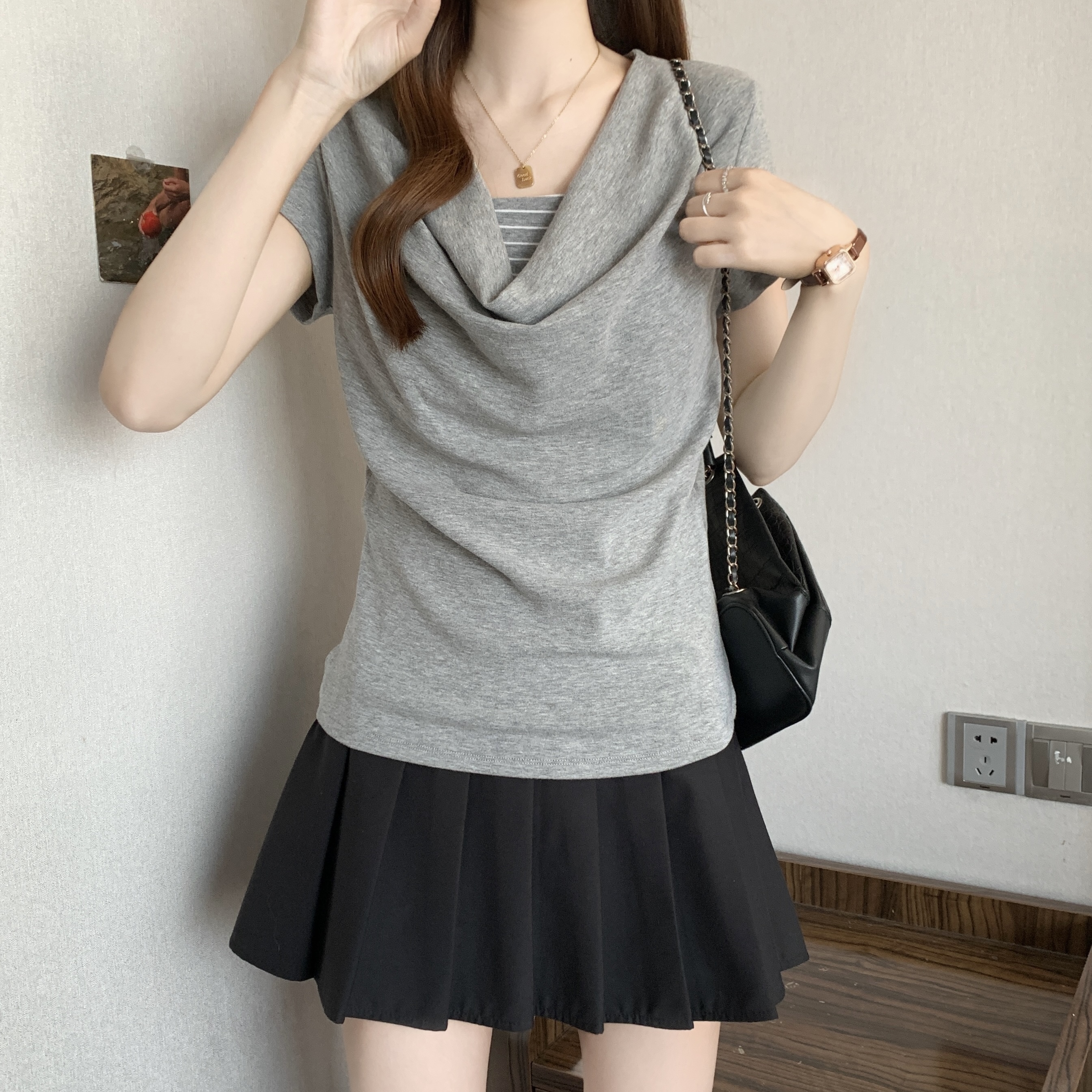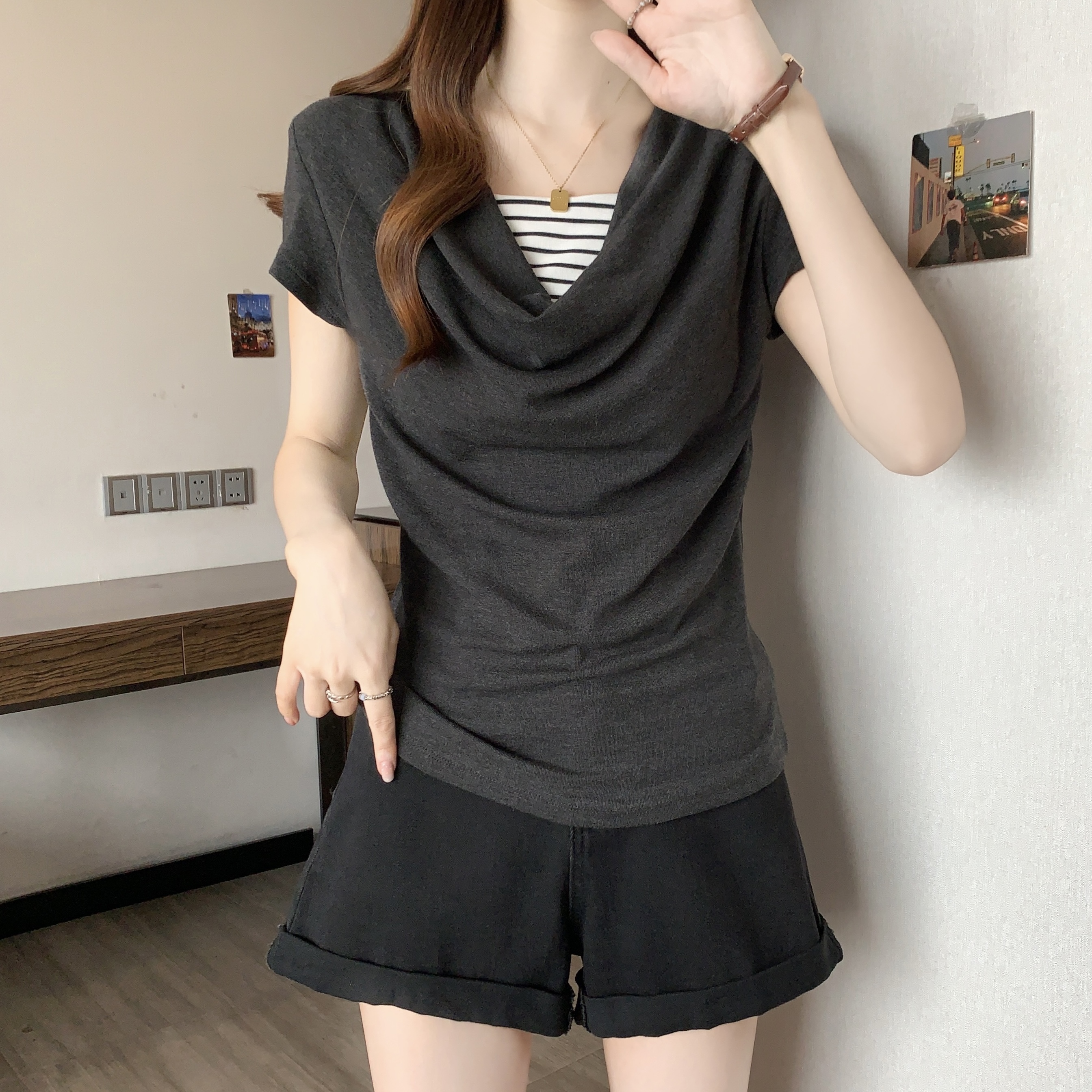 실사 2026 새로운 지방 mm 여름 섹션 패션 디자인 센스 작은 대중 페이크 레이어드 슬림해 보이는 반팔 맨위