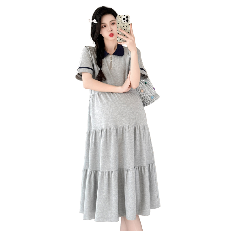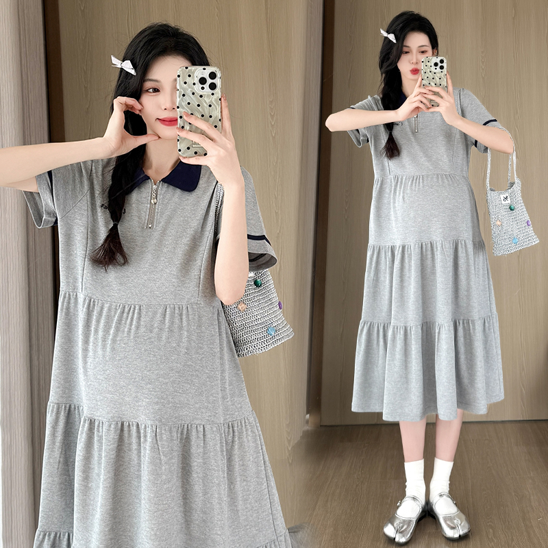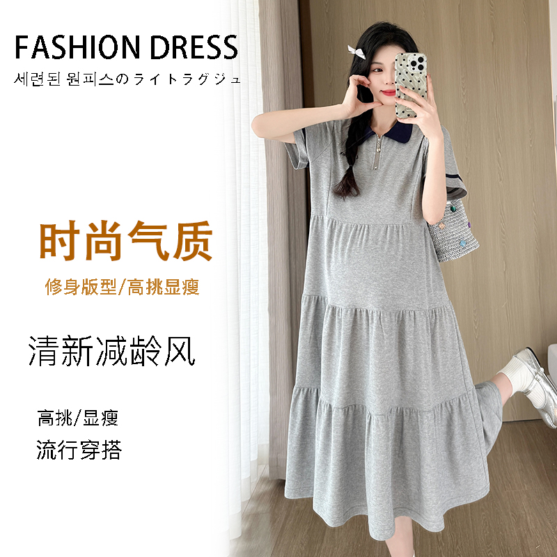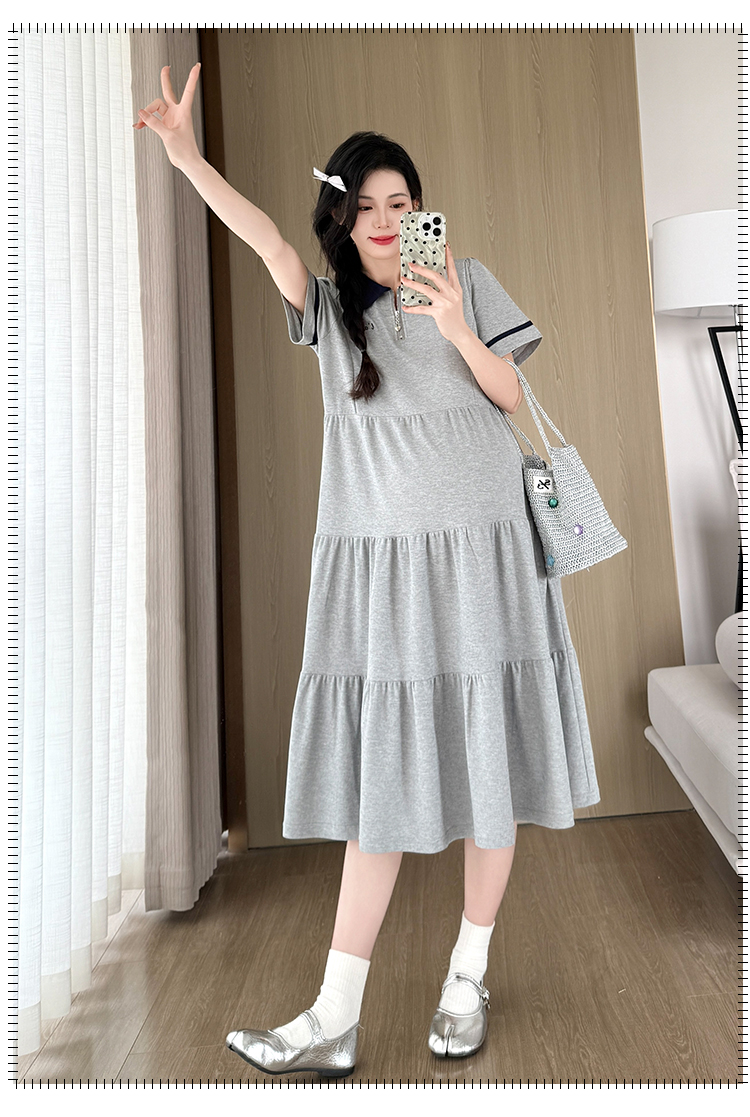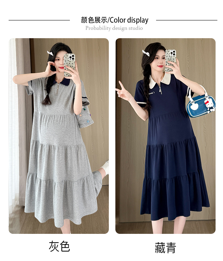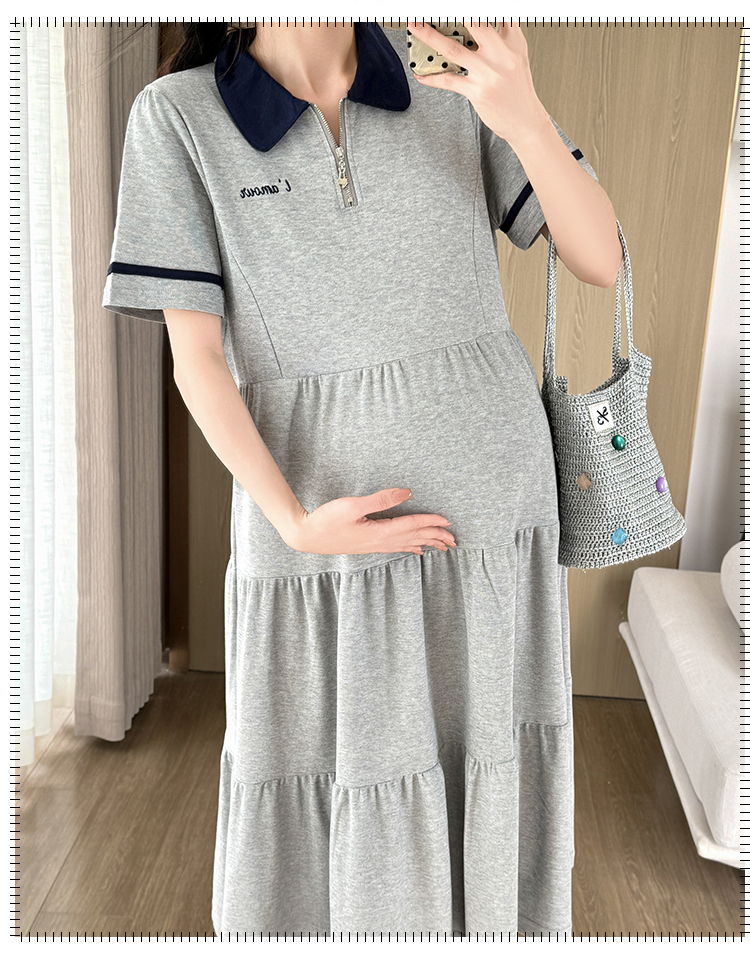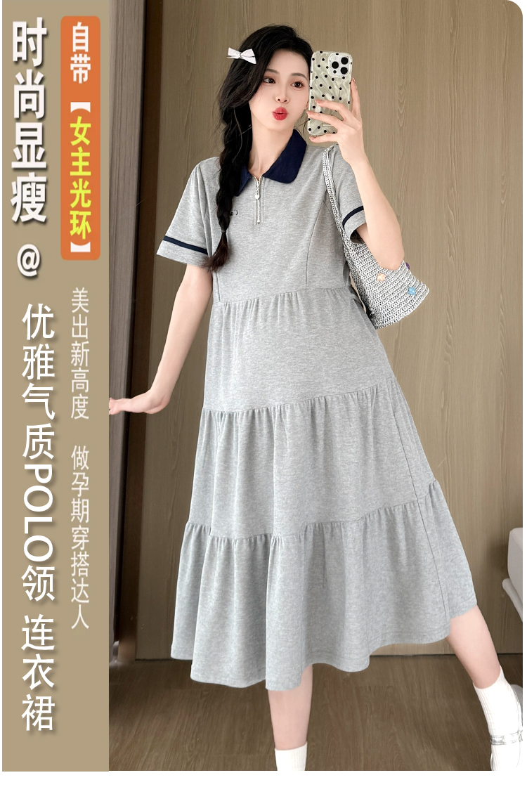 실사 지금 지금 임산부 여름 2026 트렌드 POLO 칼라 여성 드레스 새로운 캐주얼 폴로 칼라 임산부 드레스