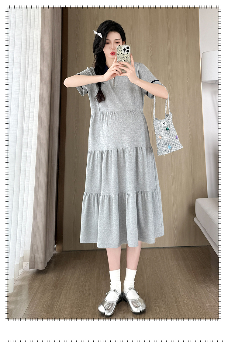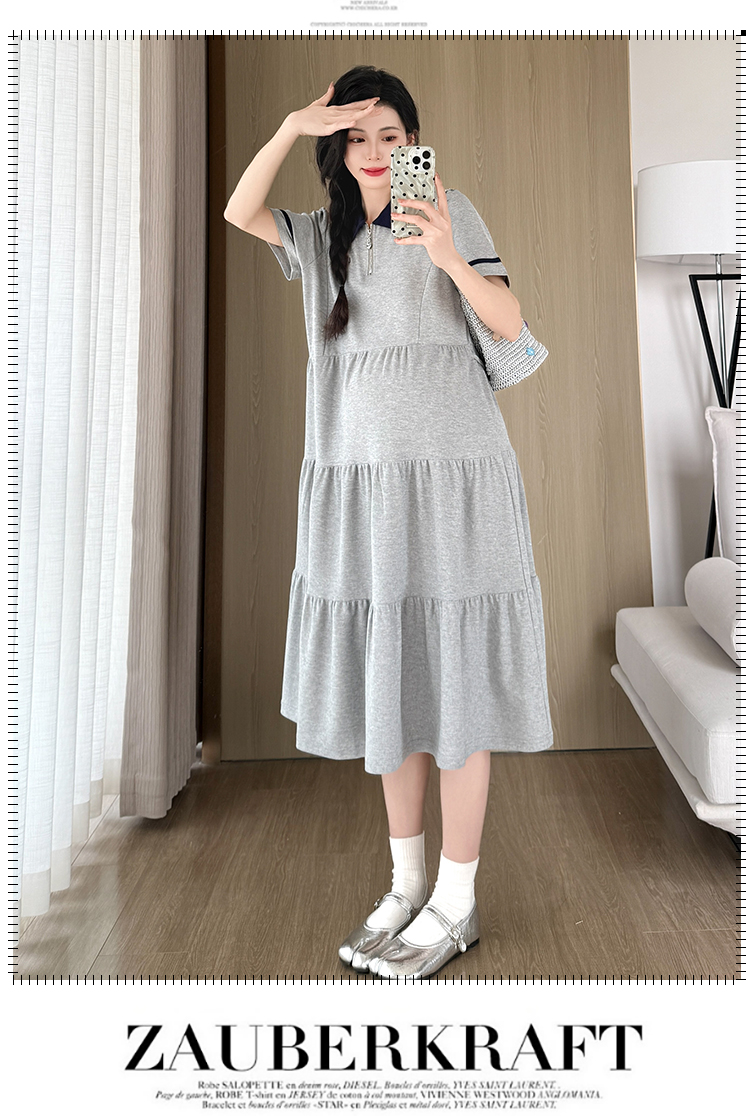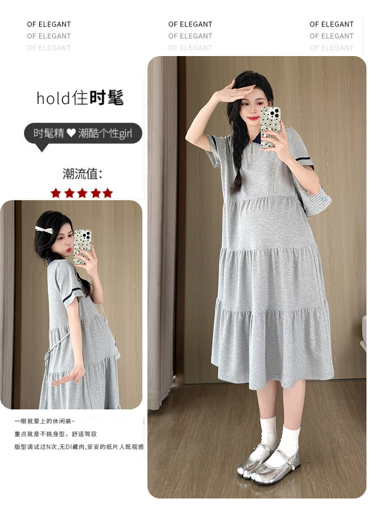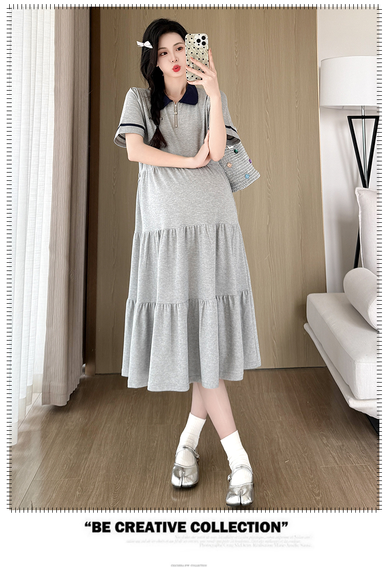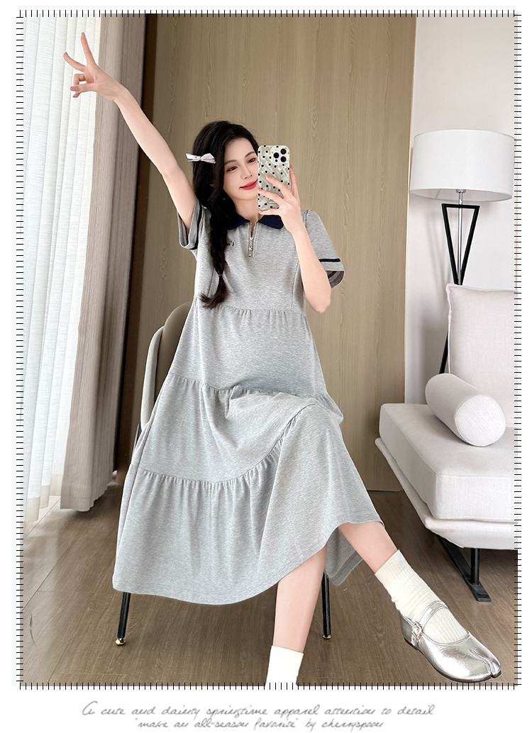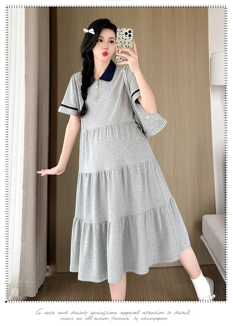 실사 지금 지금 임산부 여름 2026 트렌드 POLO 칼라 여성 드레스 새로운 캐주얼 폴로 칼라 임산부 드레스
