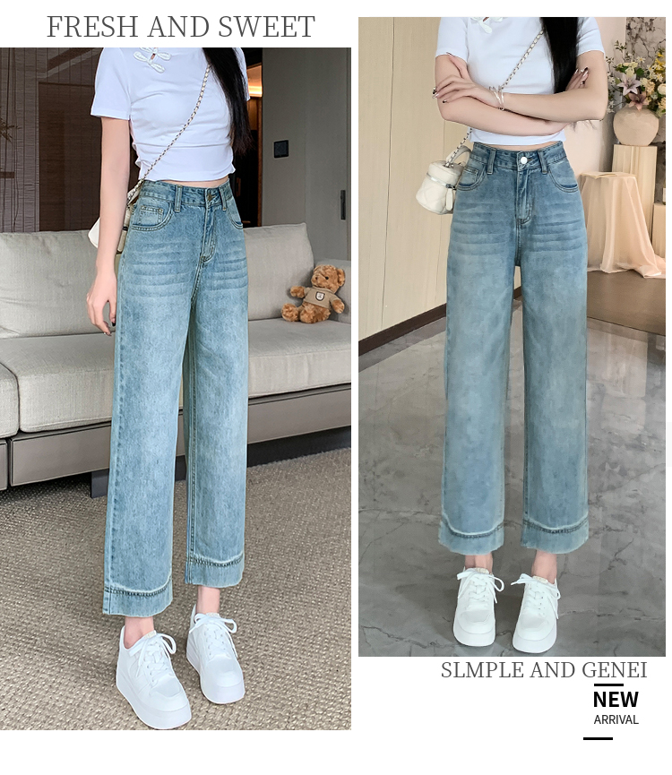 실사 여름 새로운 청바지 여성 2026 년 작은 키 8 점 하이웨이스트 슬림해 보이는 스트레이트 와이드 레그 팬츠