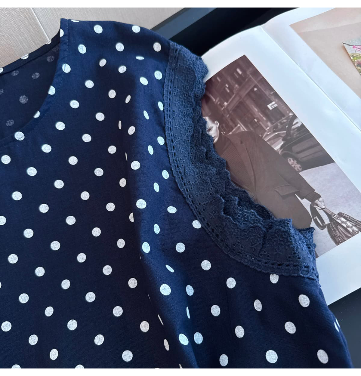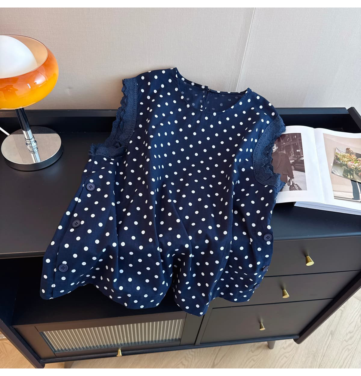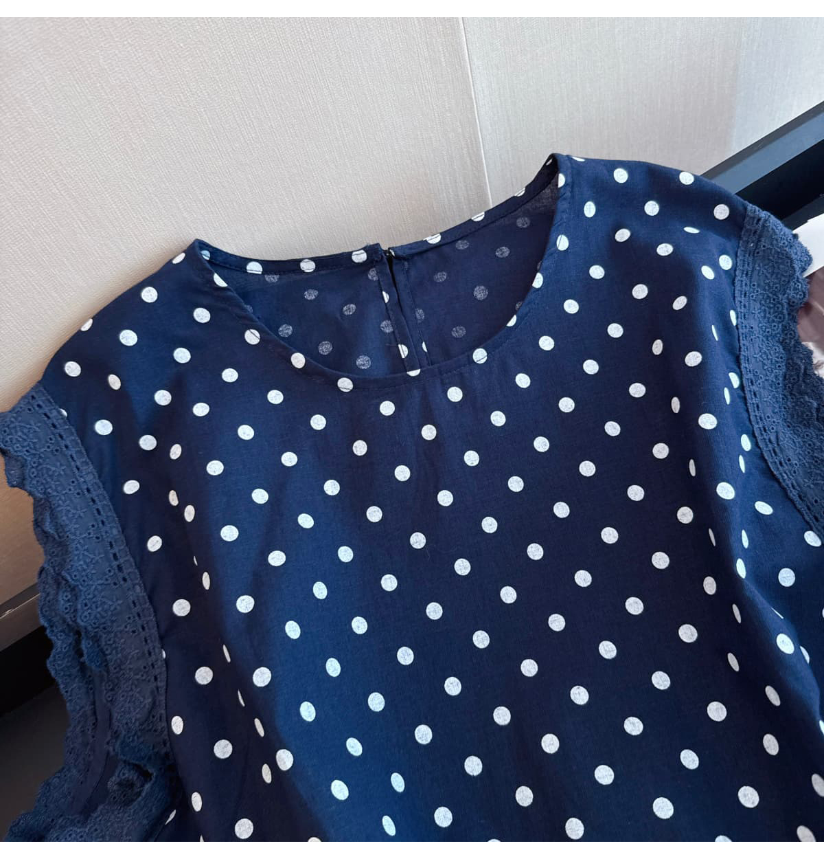 실사 지방 mm 빅 사이즈 순면 도트 무늬 목이버섯 레이스 측면 작은 날다 소매 여성 셔츠 여름 연령 감소 민소매 맨위