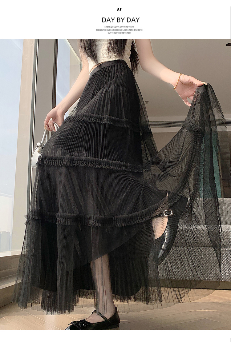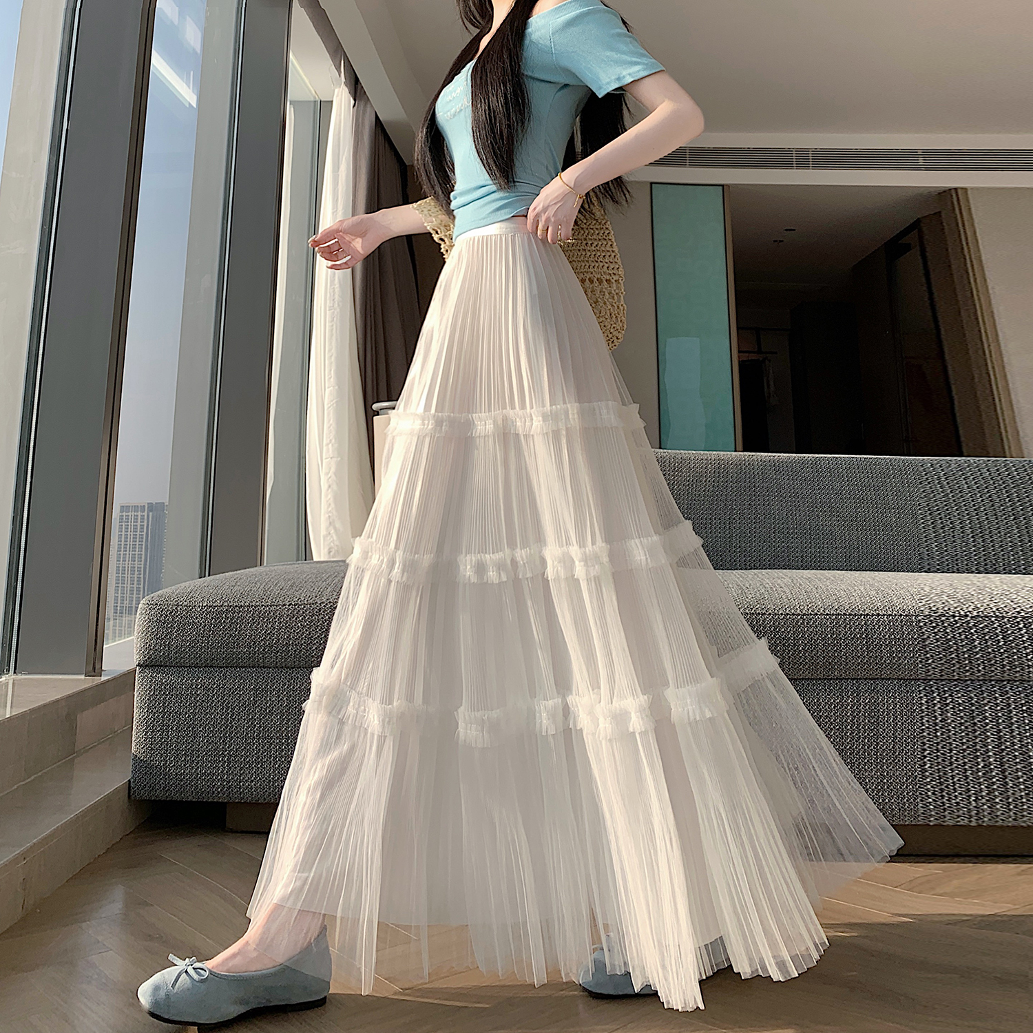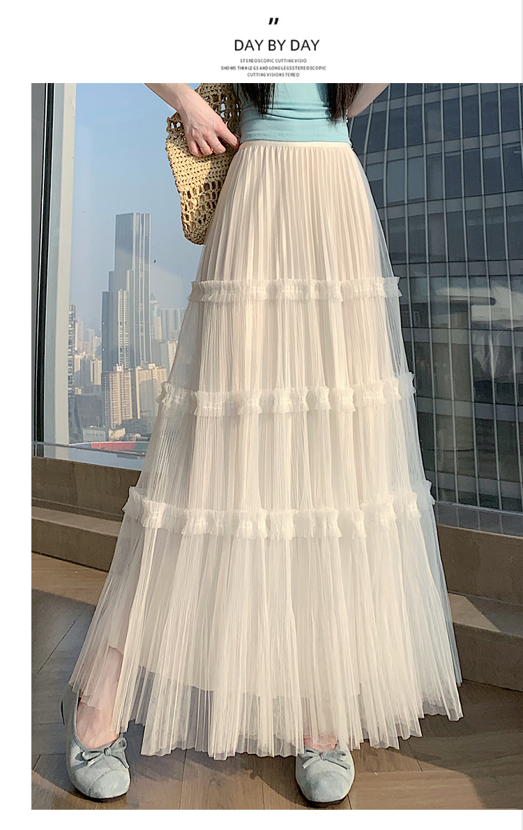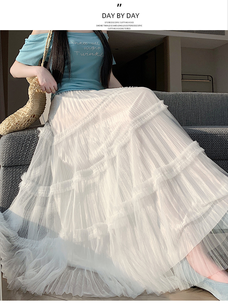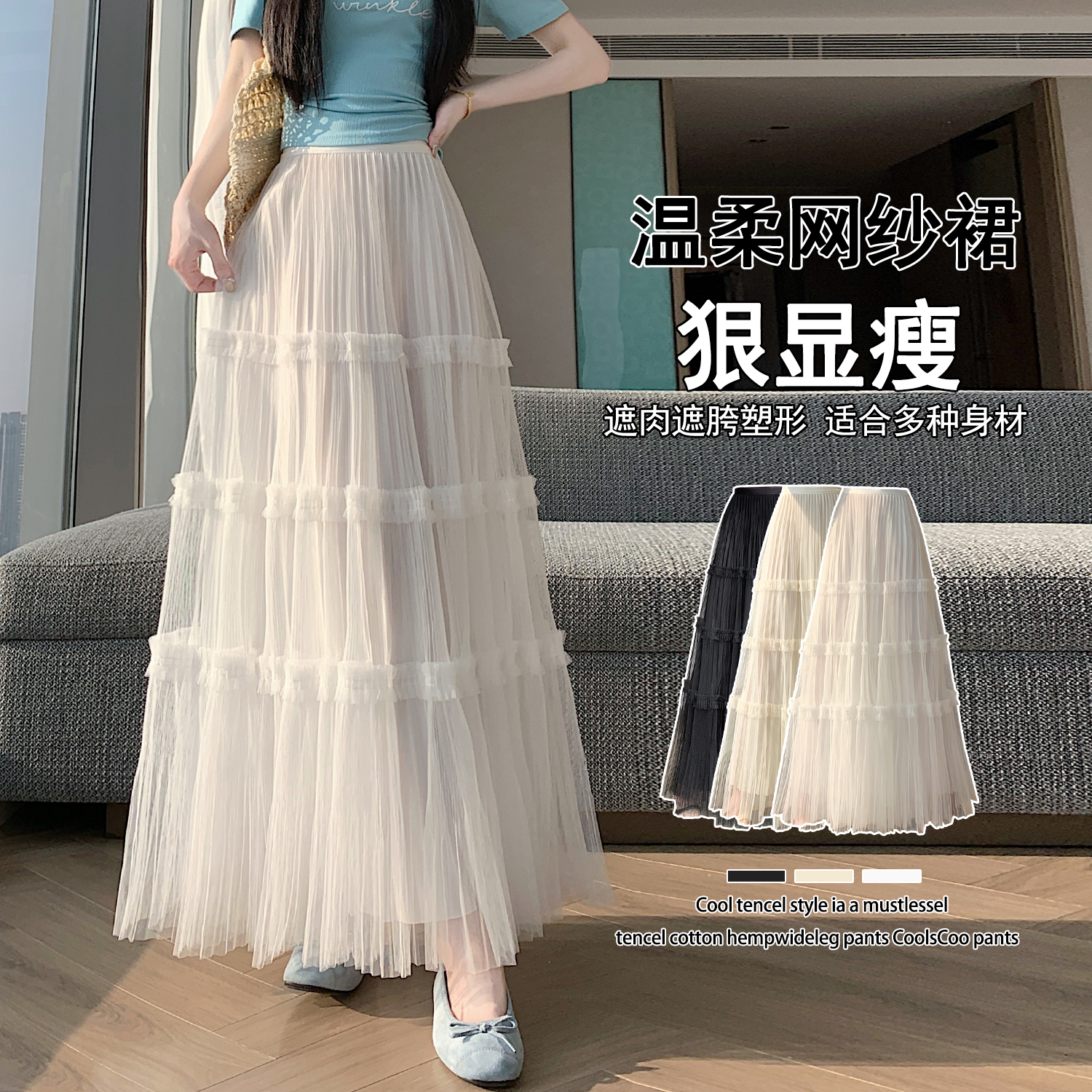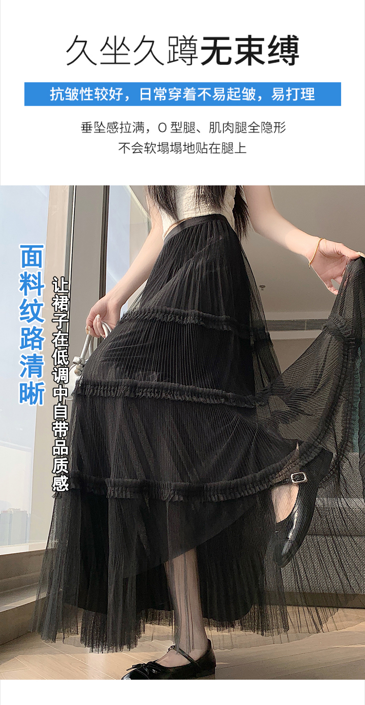 실사 망사 케이크 반신 스커트 여성 2026 봄 여름 새로운 슬림해 보이는 다용도 한 마디 플리츠 큰 진자 우산 치마 롱 스커트