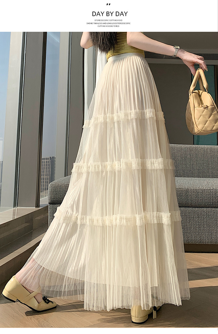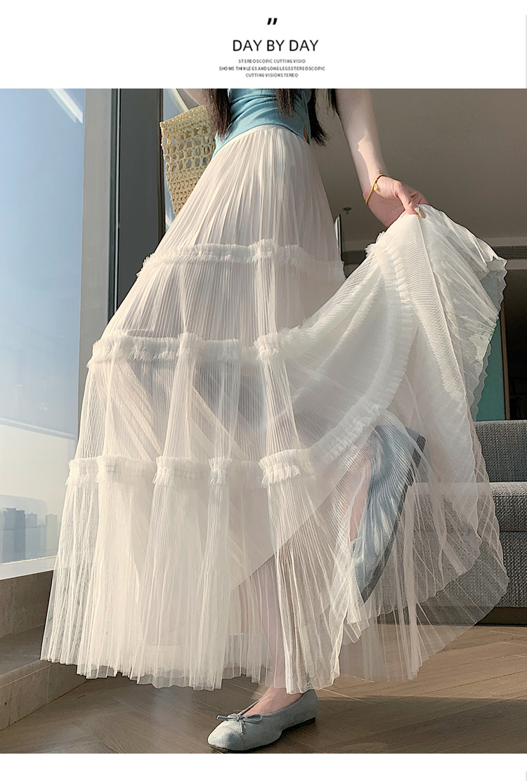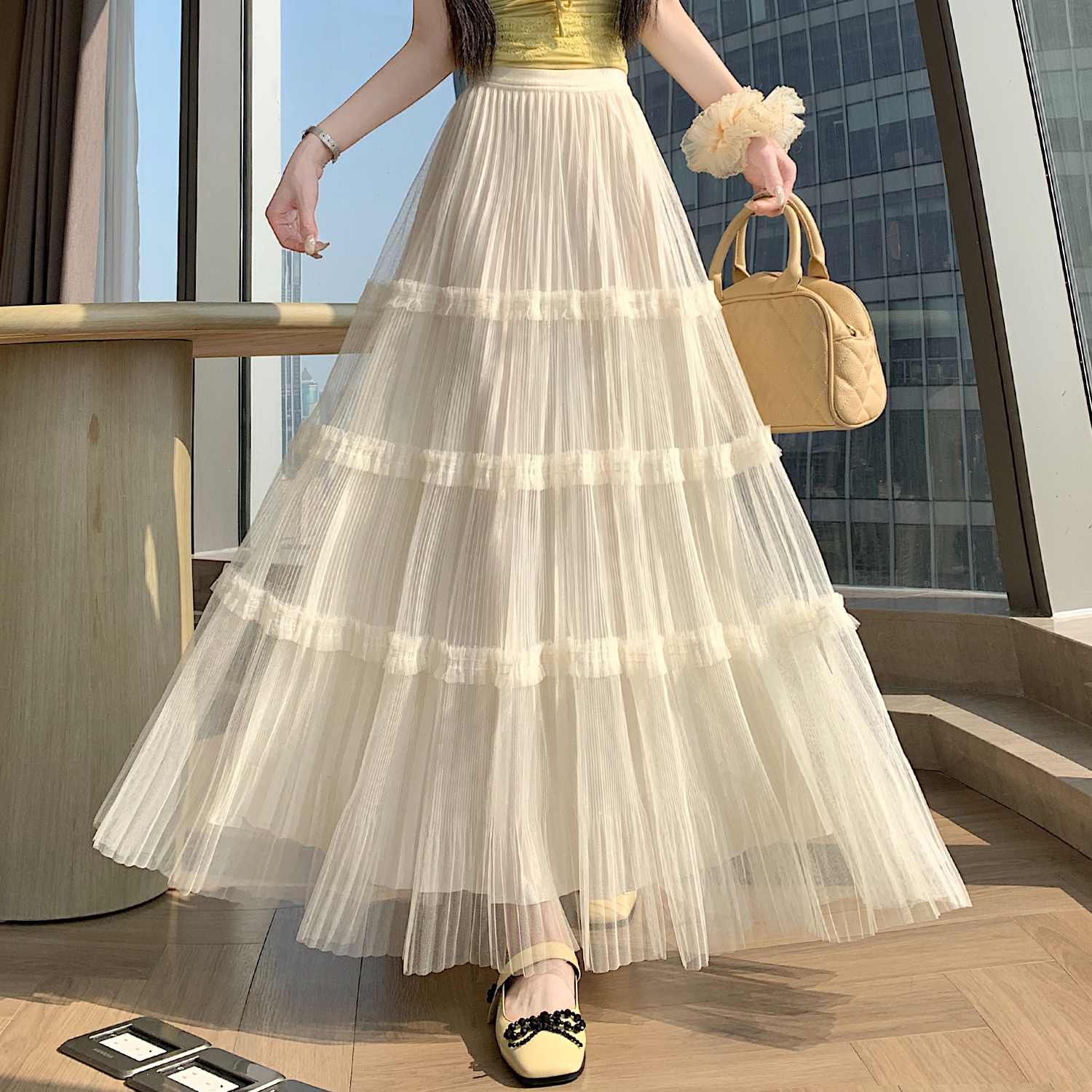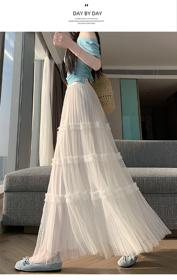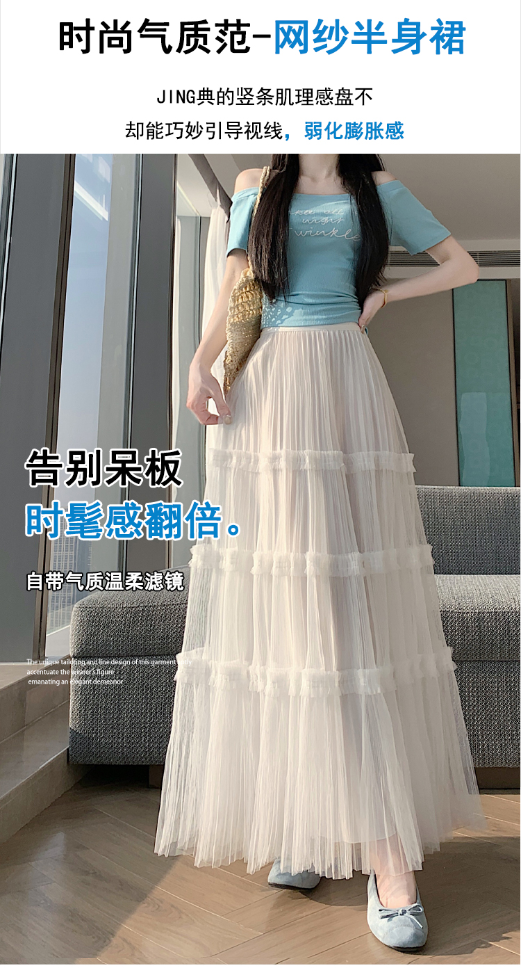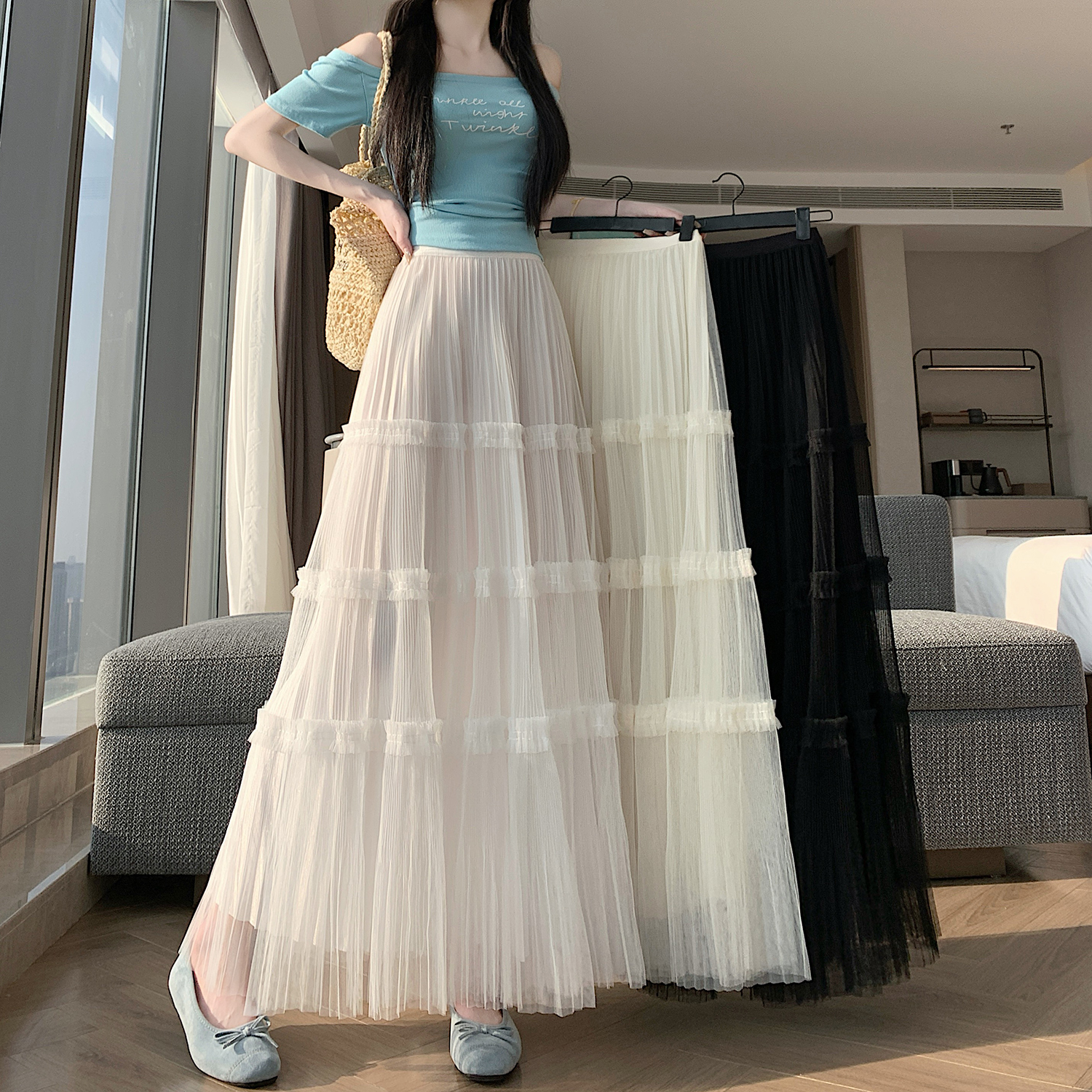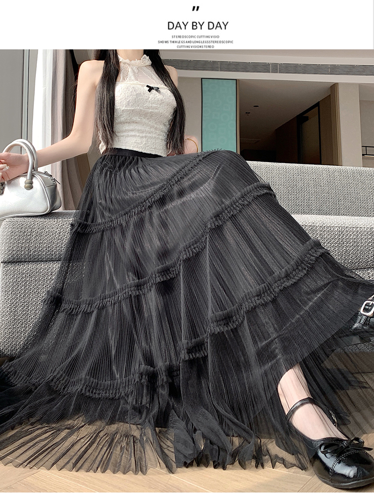 실사 망사 케이크 반신 스커트 여성 2026 봄 여름 새로운 슬림해 보이는 다용도 한 마디 플리츠 큰 진자 우산 치마 롱 스커트