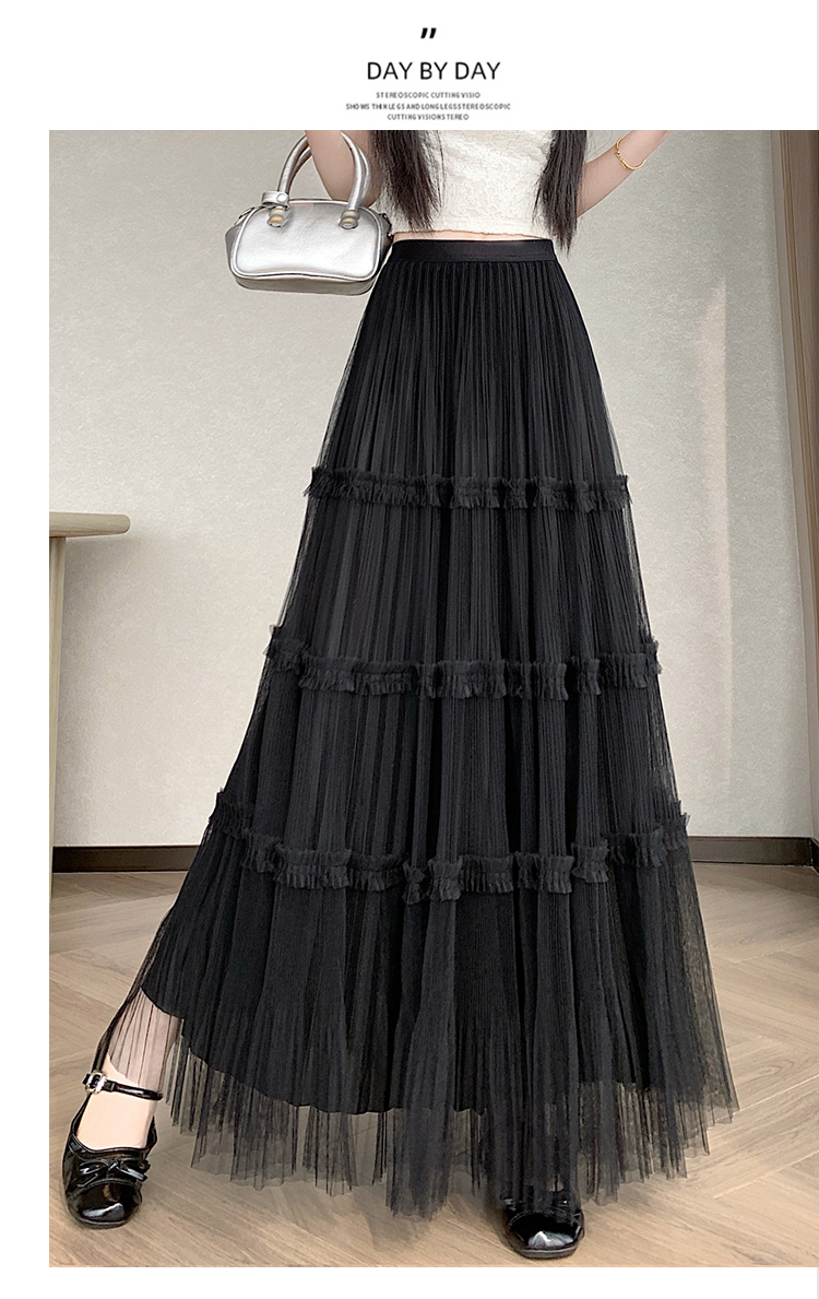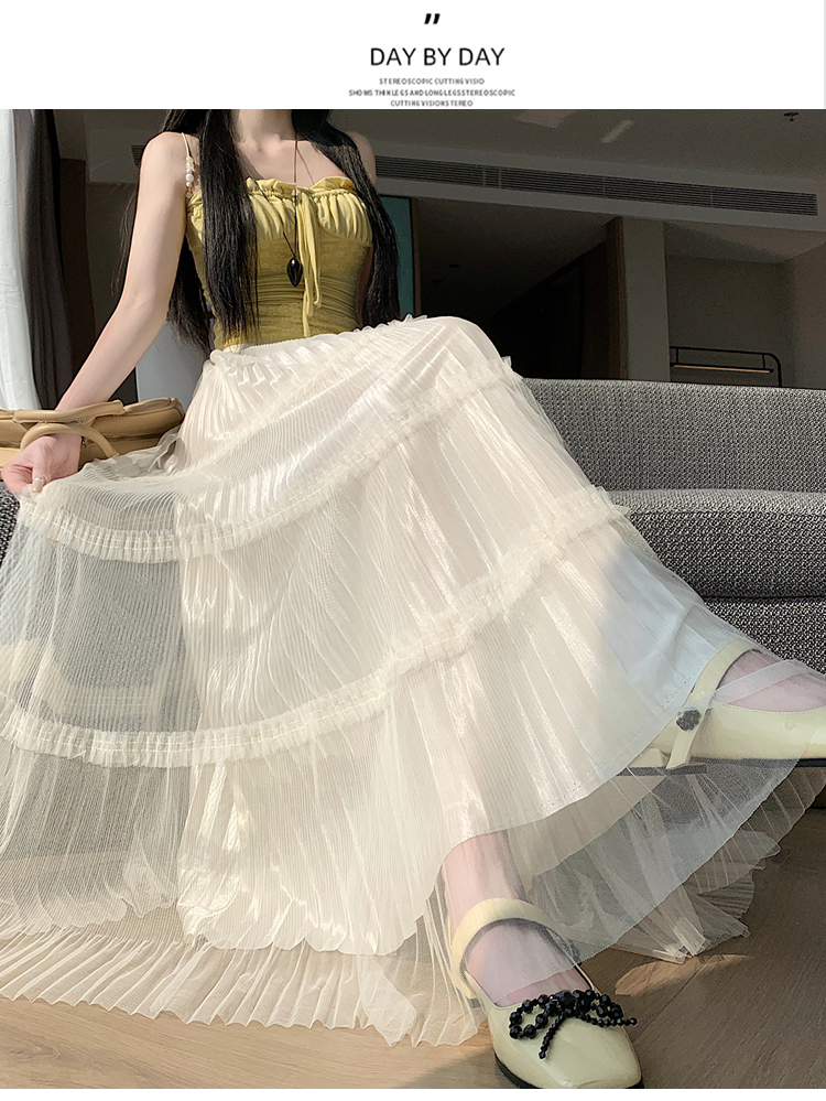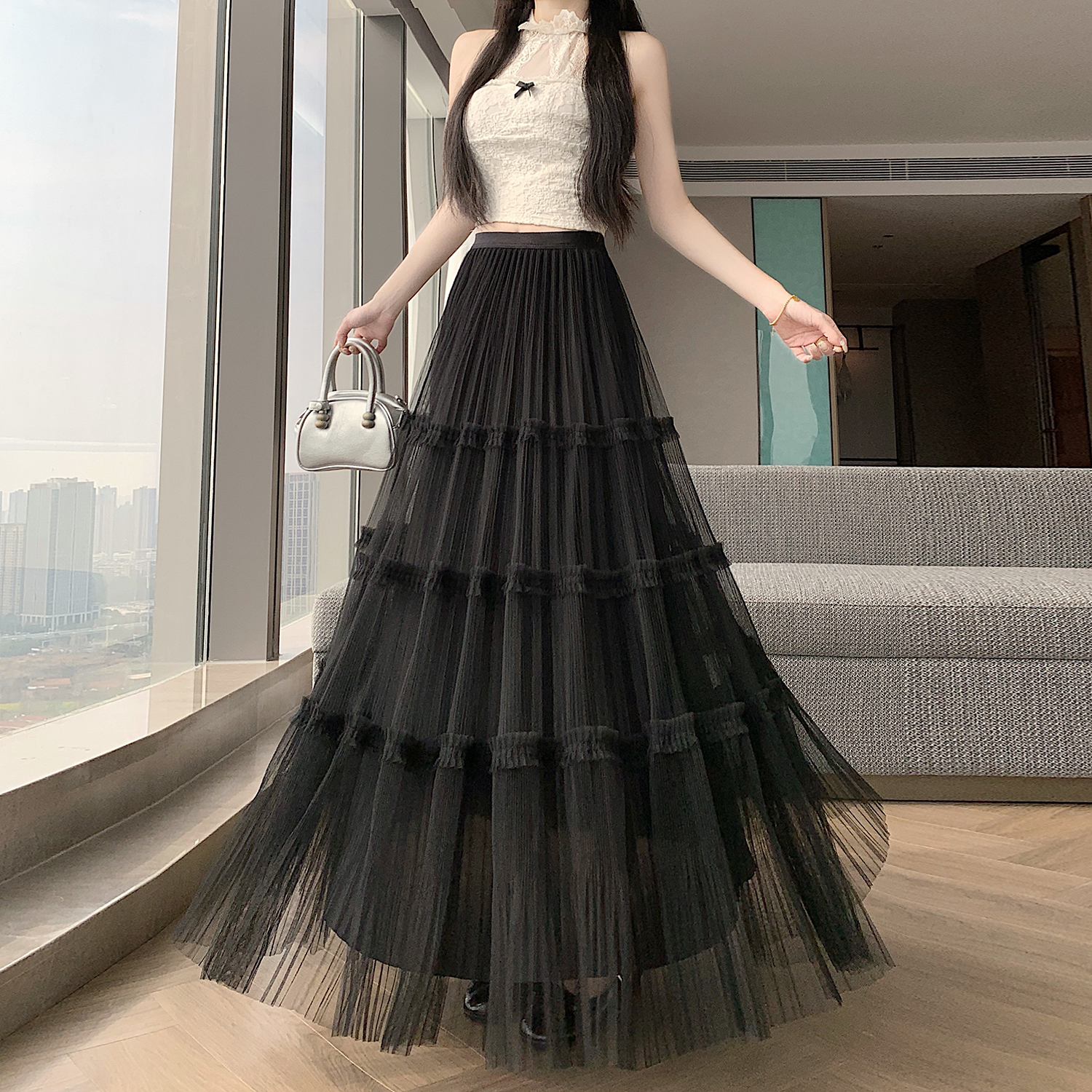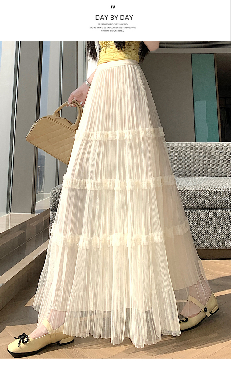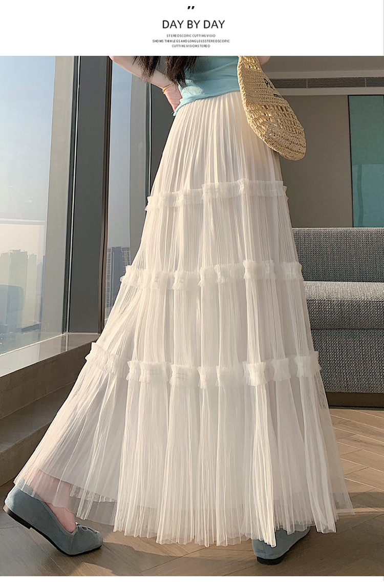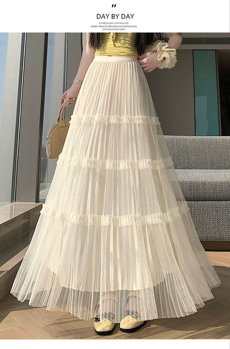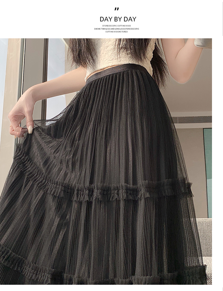 실사 망사 케이크 반신 스커트 여성 2026 봄 여름 새로운 슬림해 보이는 다용도 한 마디 플리츠 큰 진자 우산 치마 롱 스커트